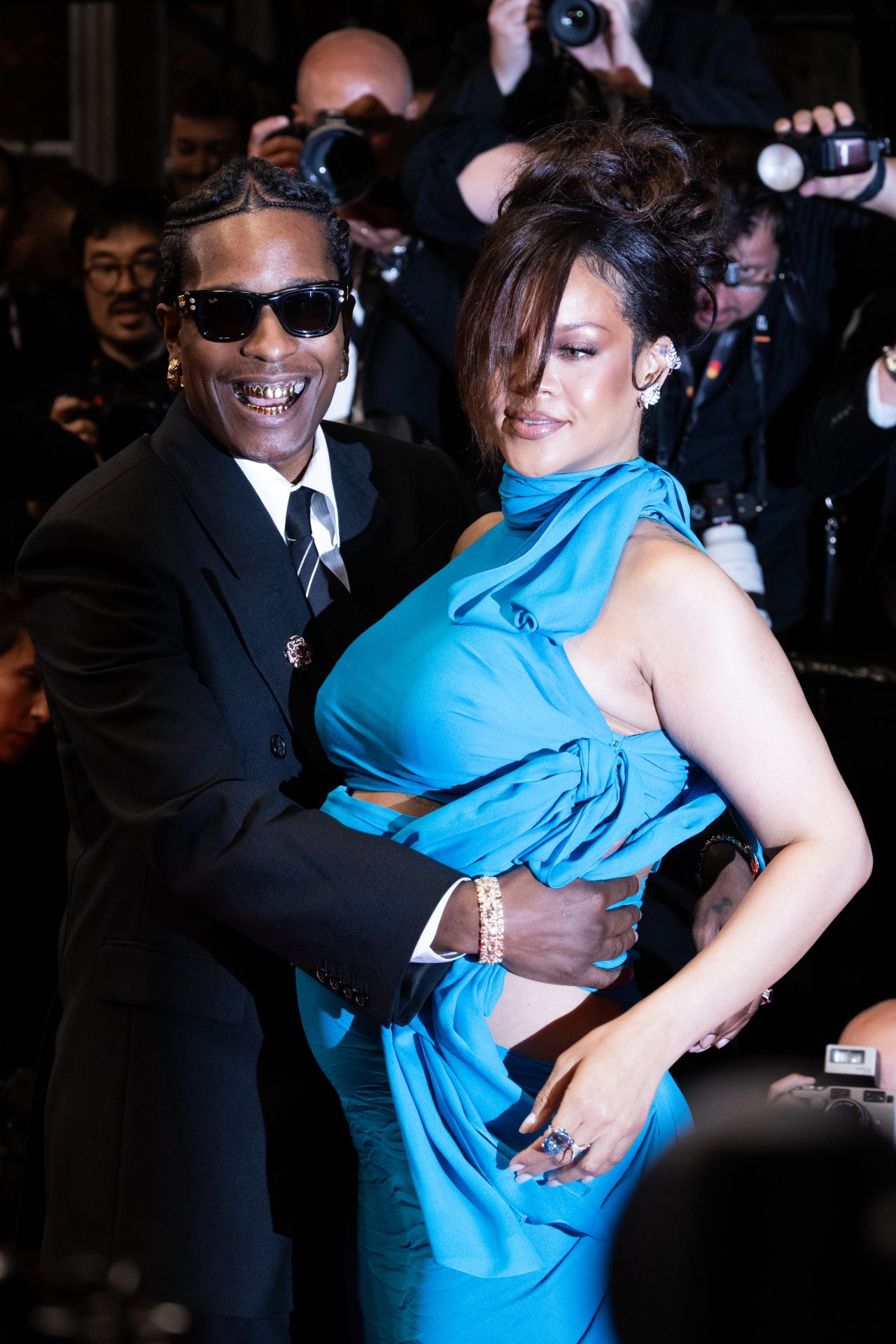 Rihanna și-a făcut cunoscută sarcina în luna mai, la gala Met, eveniment la care Rocky a fost co-președinte. Artista a purtat un top alb fără mâneci care îi punea în evidență burtica, completat de o centură de susținere ce ajută la menținerea unei posturi corecte și reduce disconfortul specific sarcinii. Ținuta a fost completată de pantaloni sport gri și ochelari de soare negri.
