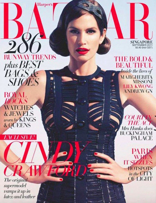 Imbracata intr-o rochie din piele, Cindy arata pe coperta publicatiei la fel ca acum 15 ani. Top modelul nu a imbatranit absolut deloc, in ciuda varstei de 45 de ani.