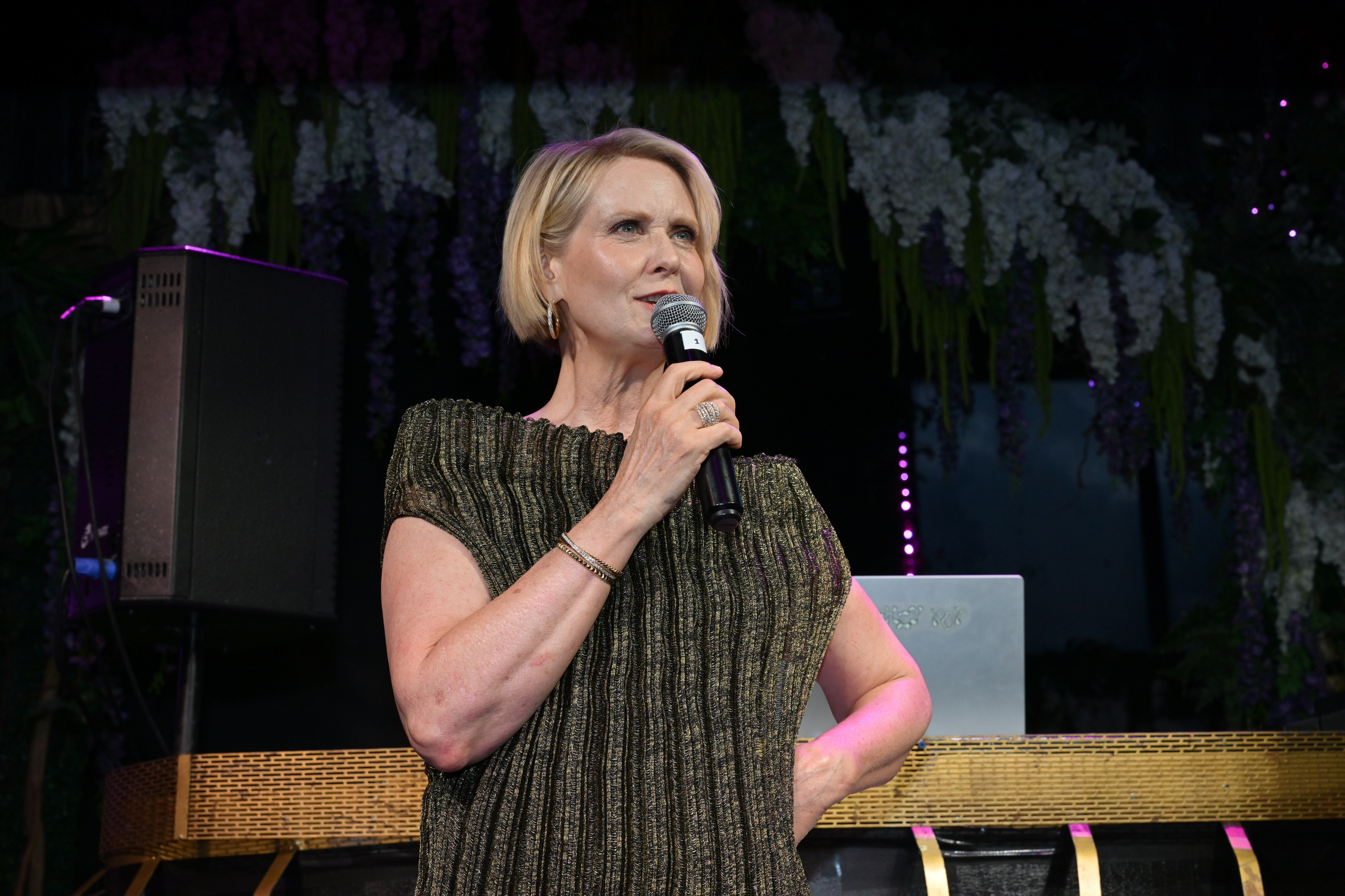 Actrița din Sex and the City, în vârstă de 59 de ani, a atras toate privirile cu ținuta aleasă: un sacou negru purtat deschis, care lăsa la vedere un sutien asortat. Cynthia a purtat și o fustă plisată, în aceeași nuanță, iar ținuta i-a fost completată de o pereche de pantofi stiletto negri, potrivit Daily Mail.