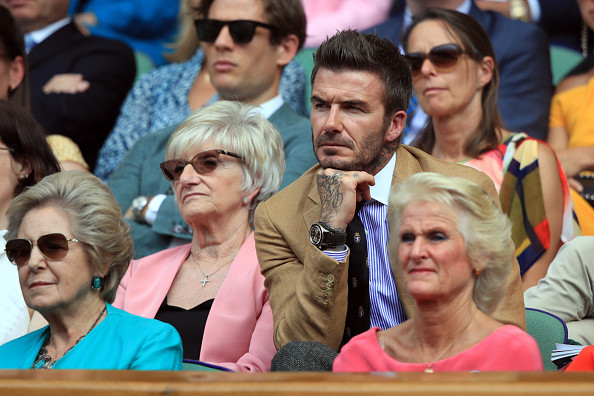 David Beckham urmăreşte din tribune meciul de fotbal feminin dintre naţionalele Angliei şi Norvegiei din sferturile de finală ale Campionatului Mondial de Fotbal feminin 2019, desfăşurat la Le Havre, Franţa, 27 iunie 2019.