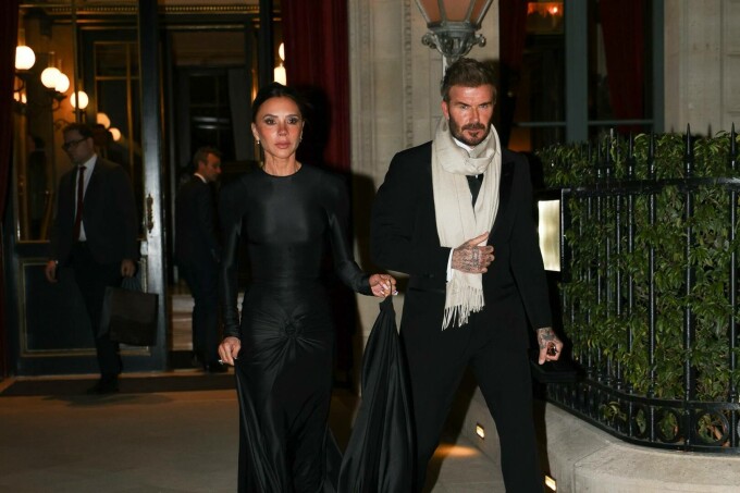 Cei doi au fost extrem de eleganți pentru evenimentul din Paris, Victoria, în vârstă de 50 de ani, purtând o rochie neagră, mulată pe corp, cu o trenă lungă, care a atras toate privirile. A asortat ținuta cu părul prins într-un coc și cercei mici și eleganți.