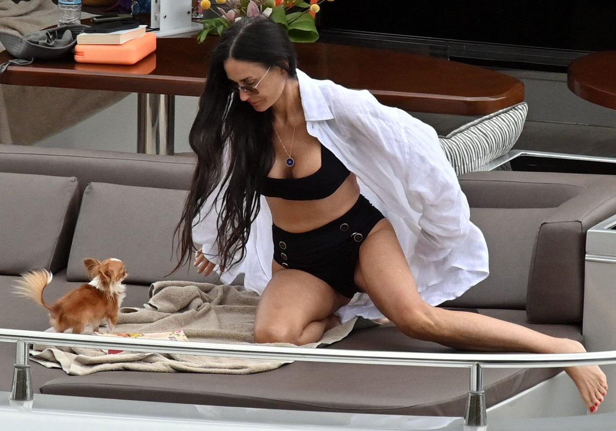 Imaginile o surprind pe Demi în ținute care îi pun în valoare decolteul și silueta impecabilă.