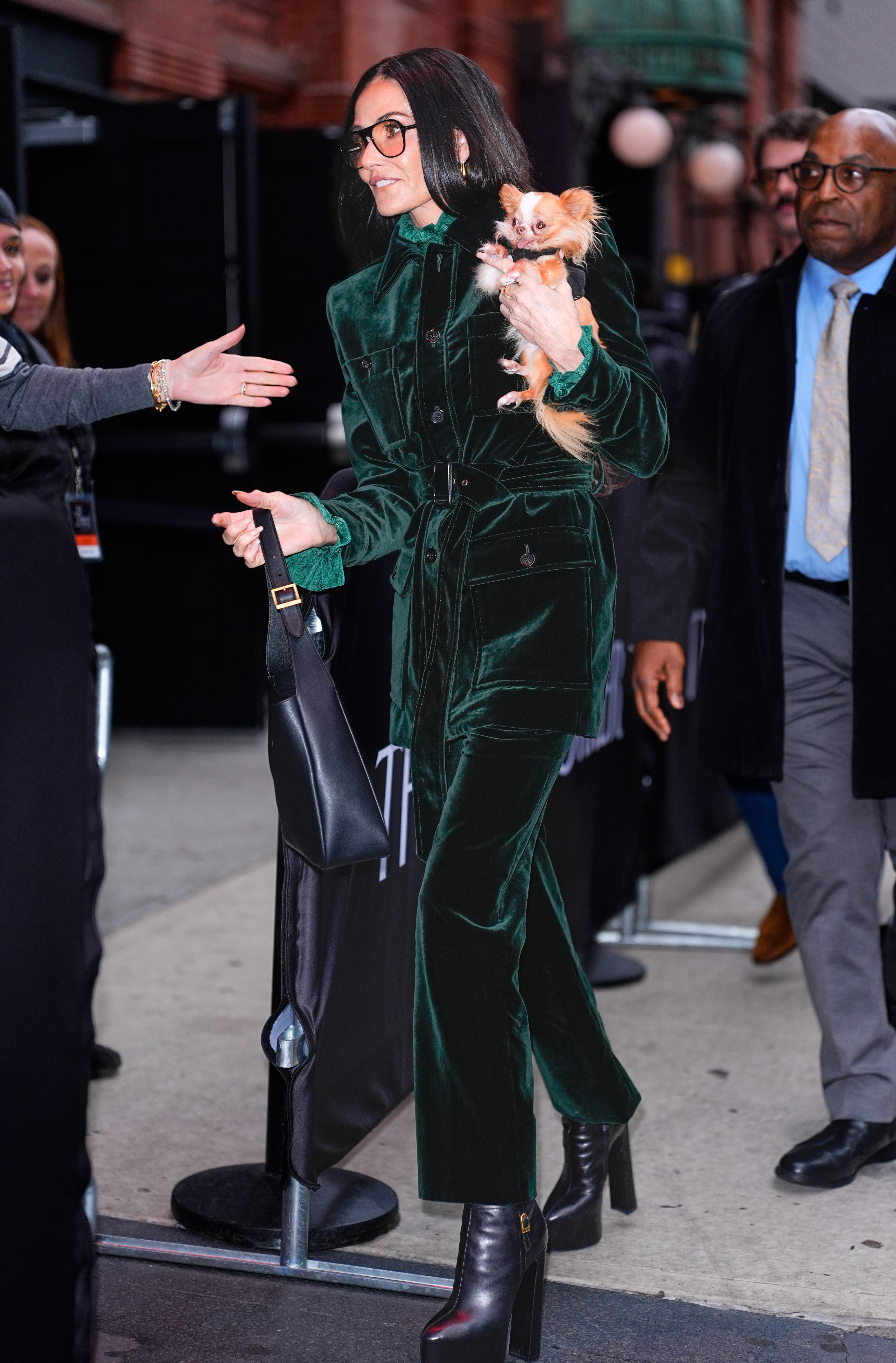 Demi Moore a participat la New Yorker Festival, desfășurat la Webster Hall din New York, unde a atras toate privirile prin eleganța sa. Actrița a sosit ținând în brațe cățelușul său, Pilaf.