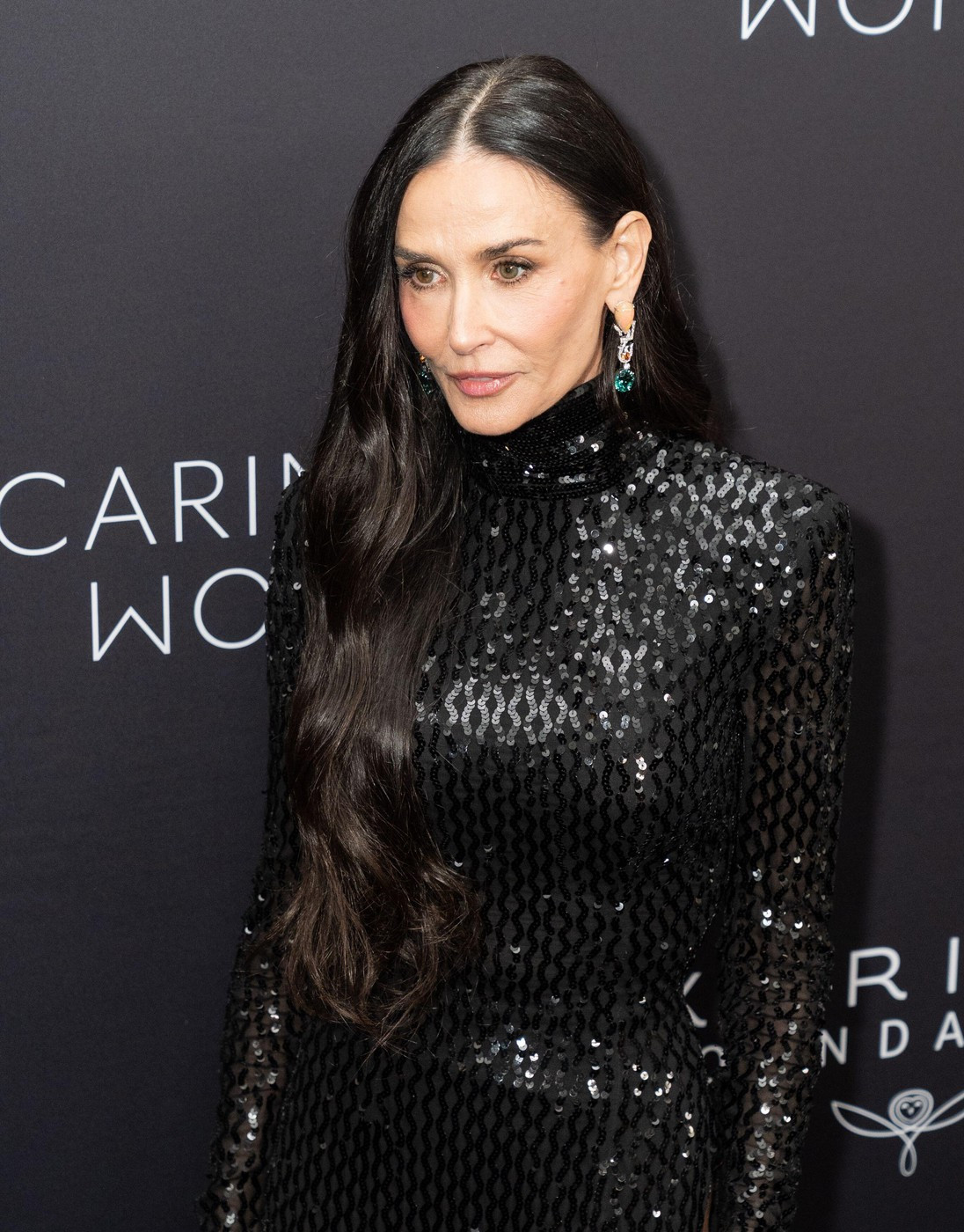 Însă una dintre vedete, a cărei alegere vestimentară a vorbit despre pasiunea ei pentru paiete, a fost Demi Moore. Îmbrăcată într-o rochie Gucci complet neagră, actrița a furat privirile cu ținuta sa îndrăzneață, dar în același timp extrem de elegantă.