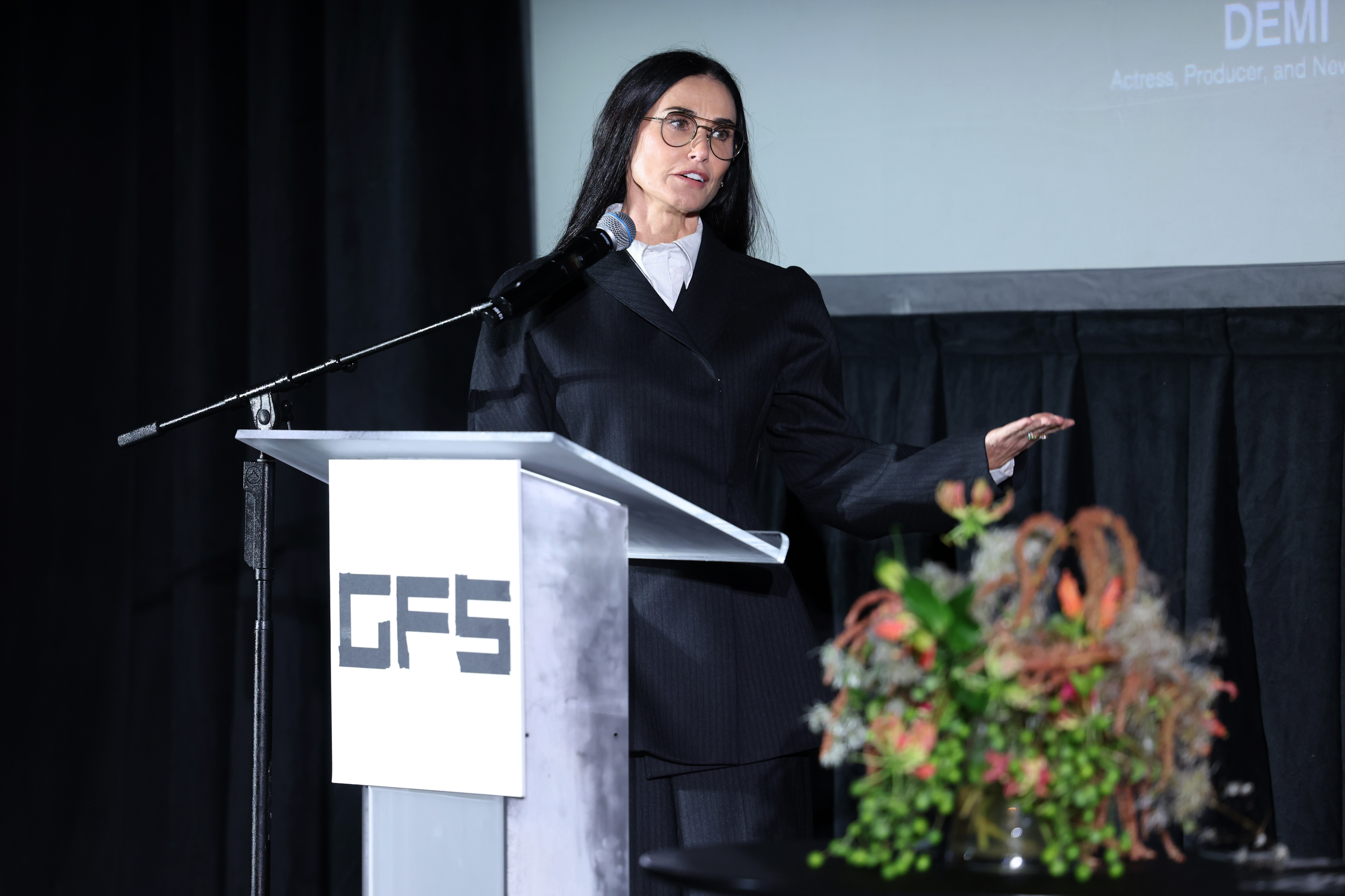 După câteva săptămâni pline de promovare a noului ei film, The Substance, Demi Moore, în vârstă de 61 de ani, a participat la Ghetto Film School Fall Benefit pe 10 octombrie într-un alt look șic creat de colaboratorul ei de lungă durată Brad Goreski.