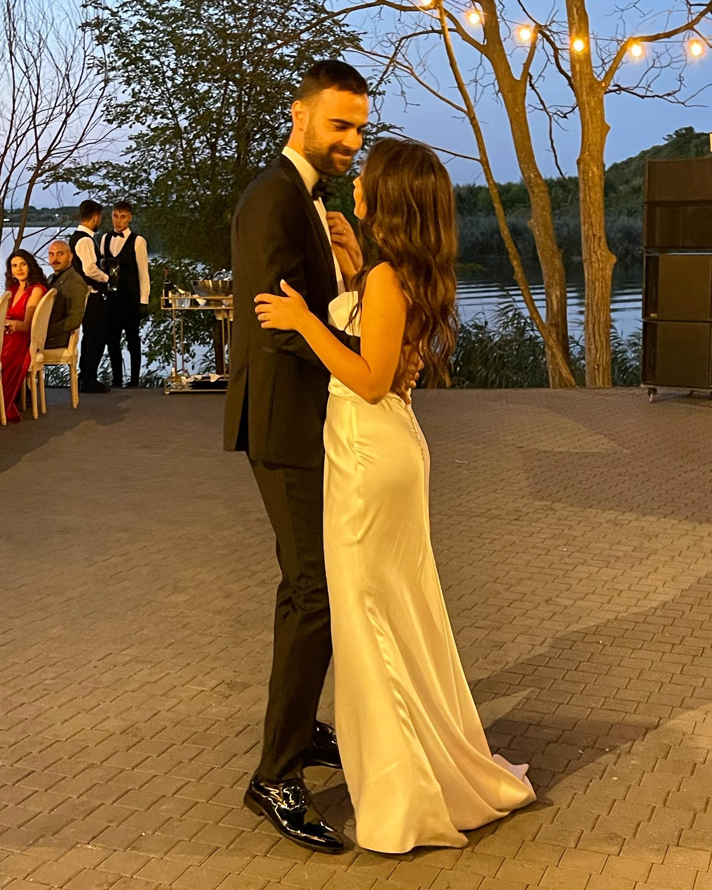 Ceremonia a avut loc într-un peisaj boem, în apropierea unui lac, iar atmosfera magică a fost creată de luminile delicate ale beculețelor. Decorurile florale au fost alese cu mare atenție și rafinament, iar mireasa a strălucit într-o rochie ce i-a pus în valoare silueta perfectă.