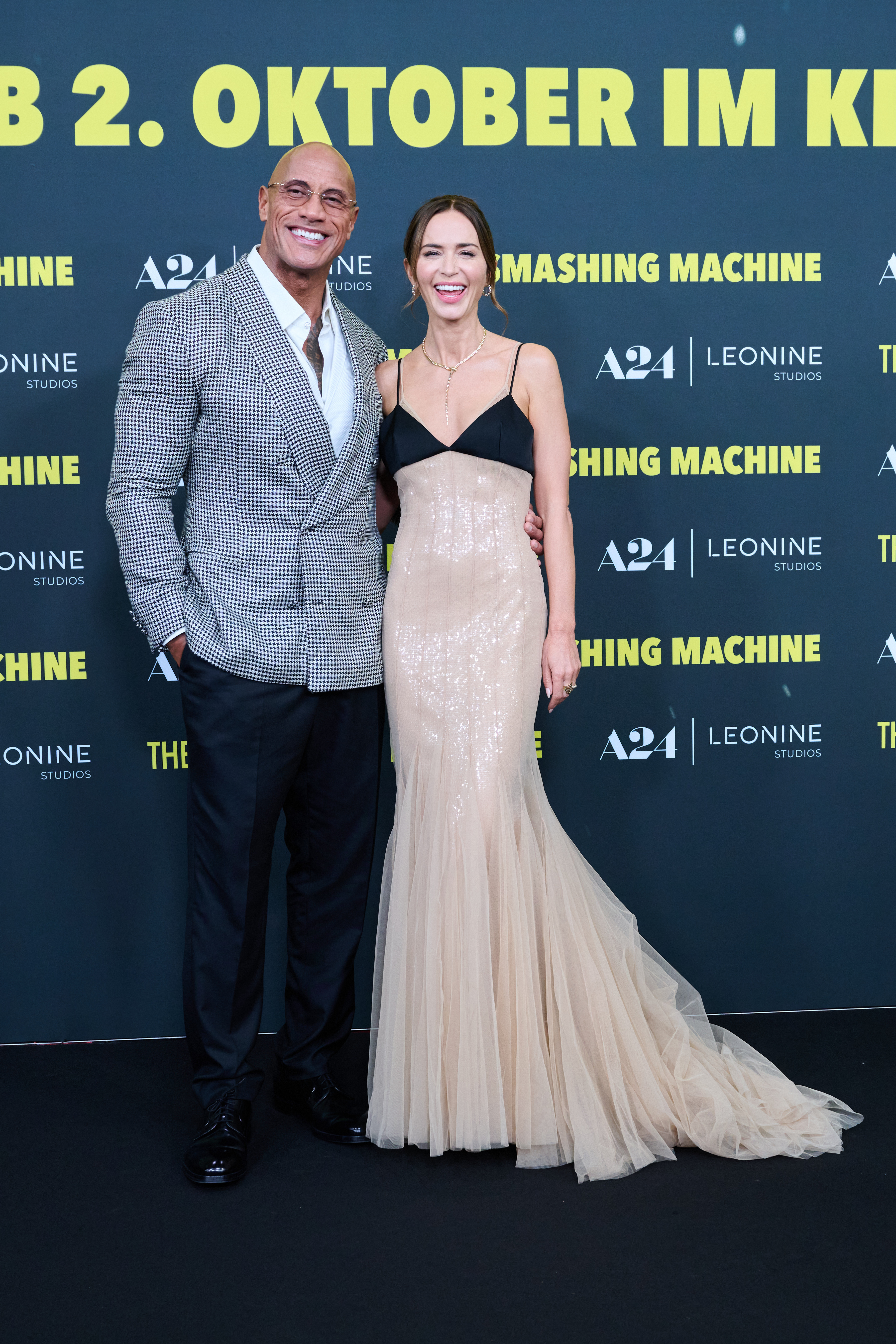 Luni seară, actrița a pășit pe covorul roșu la premiera noului ei film „The Smashing Machine”, alegând pentru această ocazie o rochie nude extrem de rafinată. Ținuta, lungă până în pământ, într-o nuanță bej-roz pal ce se armoniza perfect cu tonul pielii sale, era acoperită integral cu paiete.