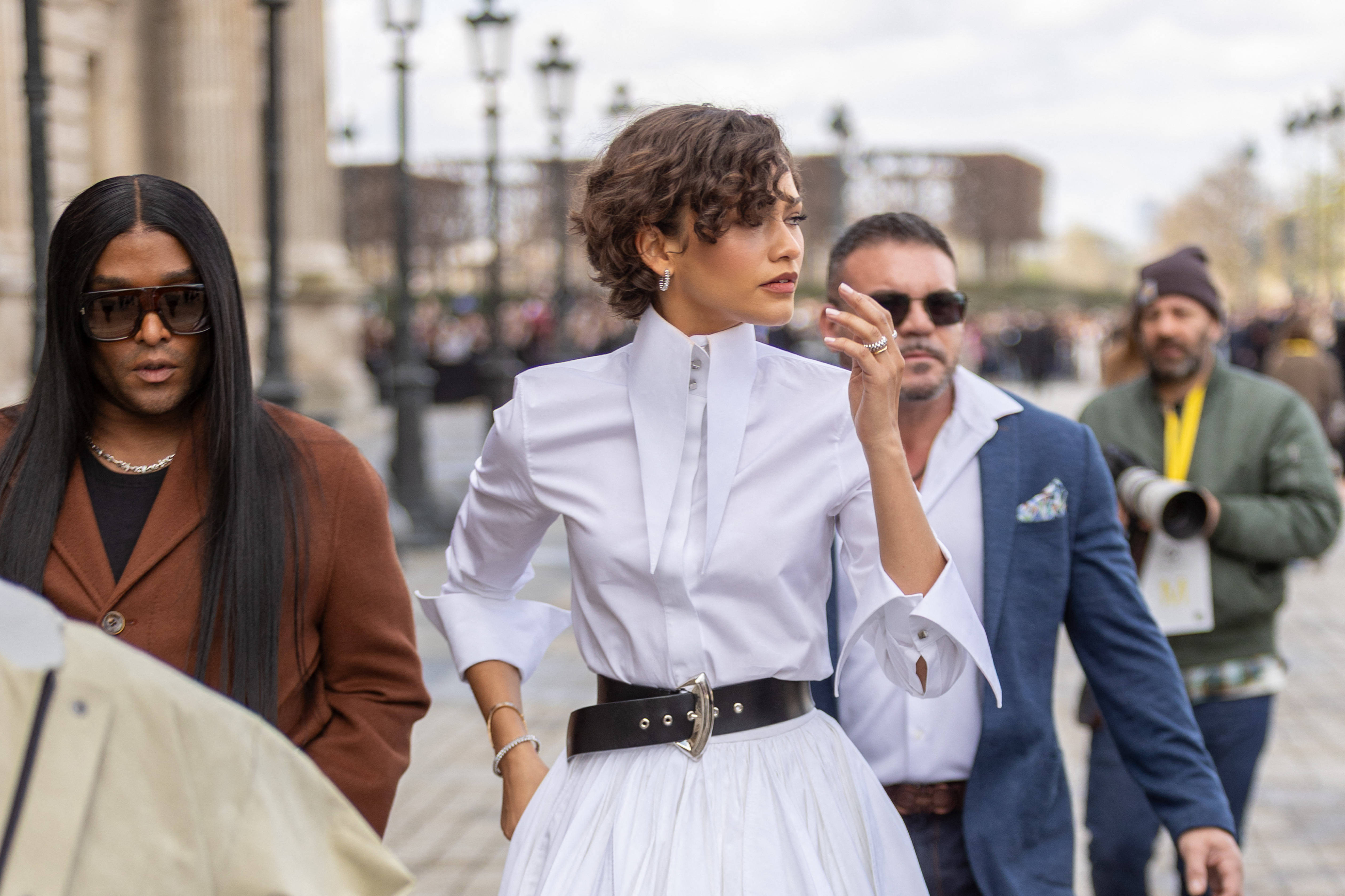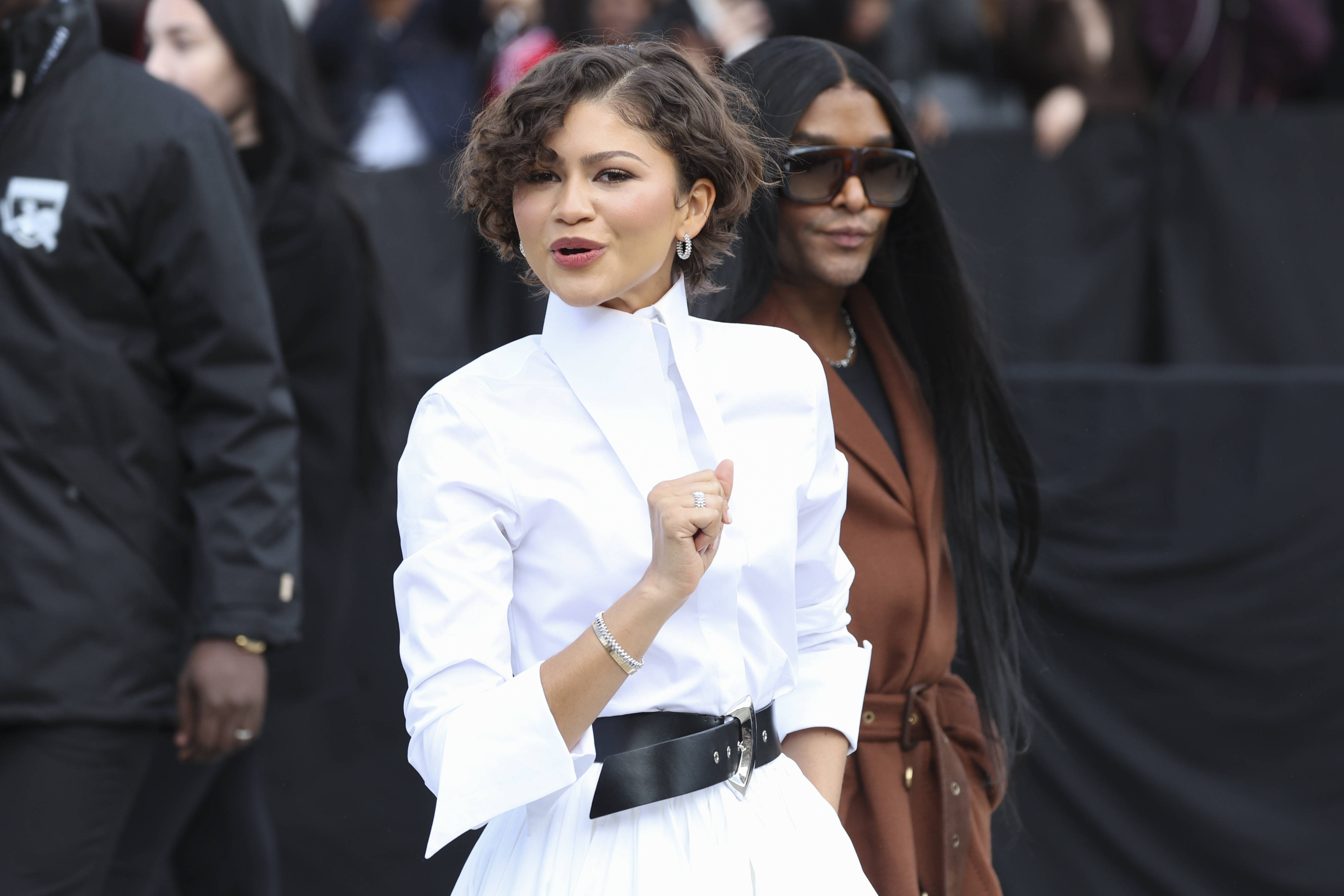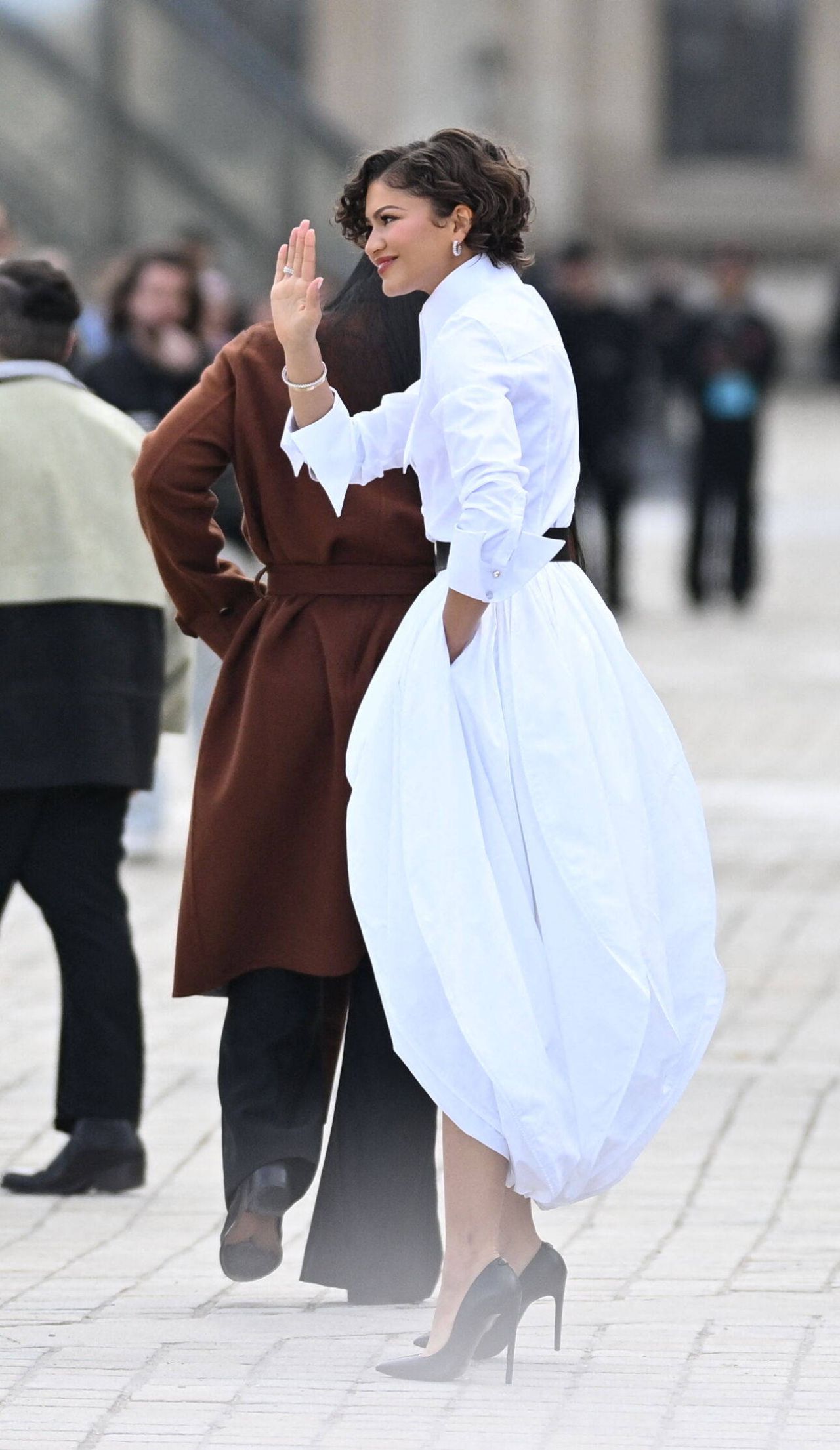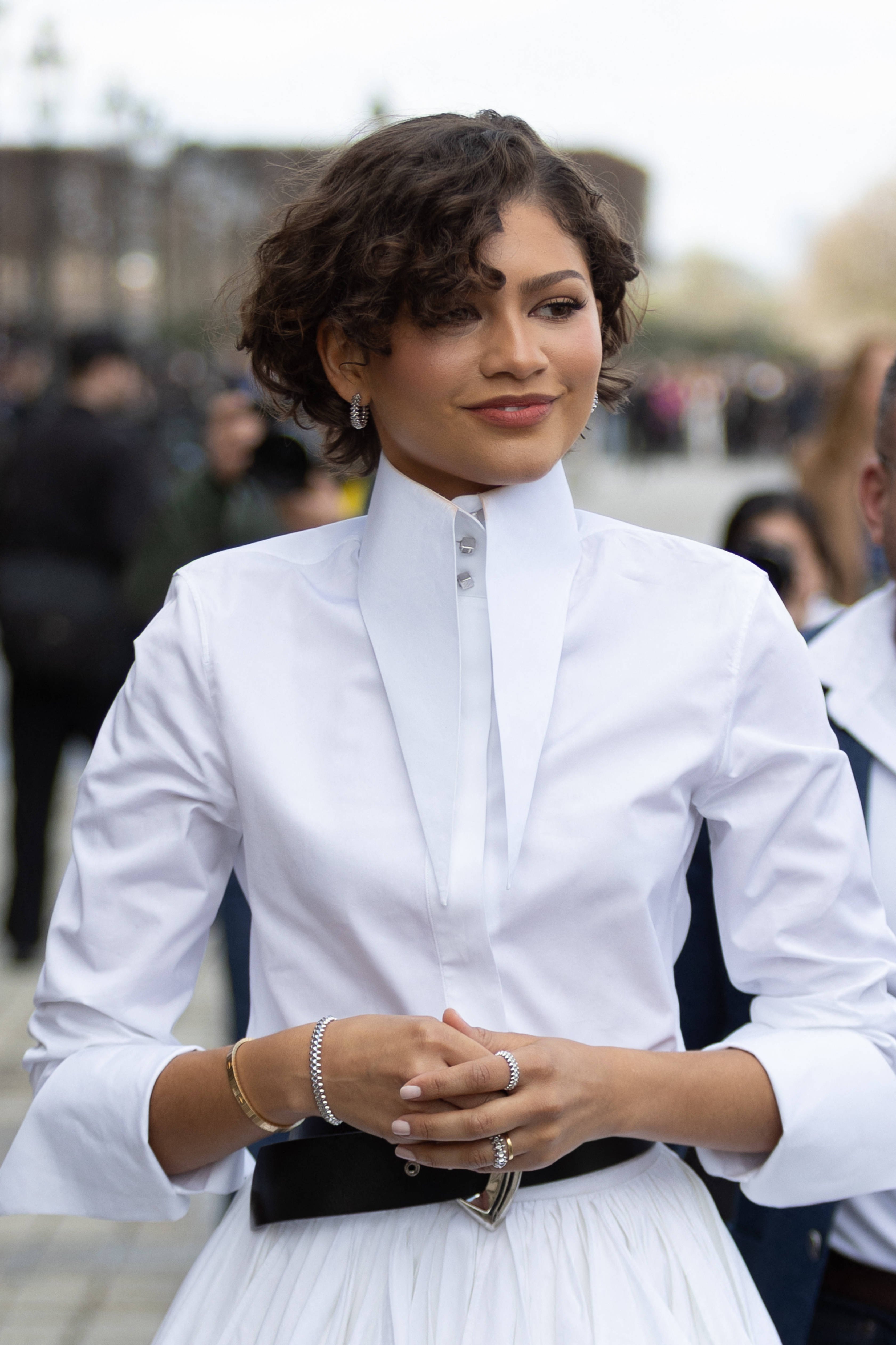 Ea a asortat fusta cu o cămașă albă cu guler prelungit și și-a evidențiat talia cu o curea neagră masivă. Zendaya părea să poarte o verighetă aurie și în fotografiile promoționale recente pentru viitorul său film The Drama, în contextul zvonurilor despre căsătoria cu Tom Holland, relatează Daily Mail.