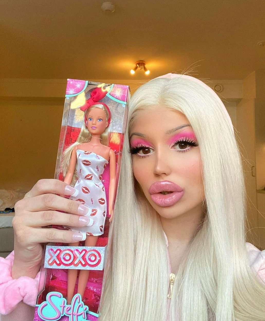 „Vreau să arăt exact ca o păpușă. Mă fascinează. M-am jucat cu ele de când eram mică și mereu mi s-a părut că sunt la modă. Nu voi lăsa nimic să-mi stea în cale, nici măcat această pandemie. Îmi fac buzele acasă. Nasul meu este atât de mic, încât pot respira doar pe gură. În timp ce dormeam, buzele mele erau atât de mari, încât nu am mai putut respira deloc. A trebuit să-mi pun capul în frigider ca să nu mor. Am fost în pericol, dar a meritat”, a povestit ea.