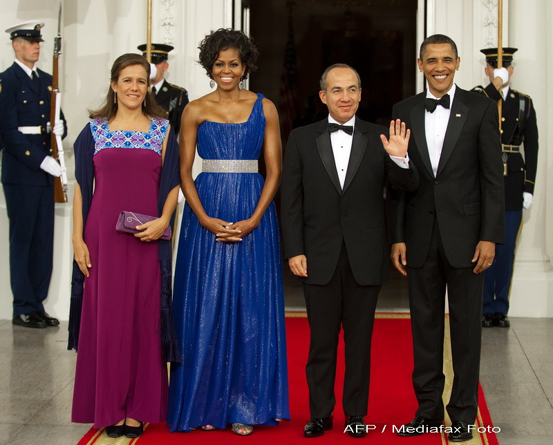 Presedintele Barack Obama si Prima Doamna au fost gazdele perfecte la ultimul dineu oficial tinut la Casa Alba cu ocazia vizitei presedintelui Mexicului, Felipe Calderon si sotia sa, Margarita Zavala.