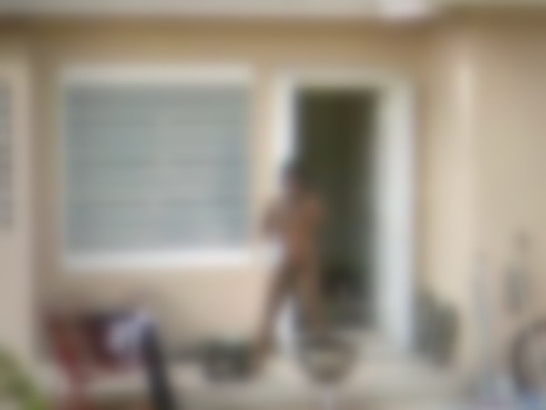 Ea nu poarta nici macar lenjerie intima, insa acest aspect nu pare sa o deranjeze prea tare. E pe proprietatea ei, asa ca poate sa stea asa cum vrea.
