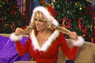 Nu putea sa lipseasca din escorta Mosului Pamela Anderson, un pic cam imbracata si ea, la o emisiune TV.