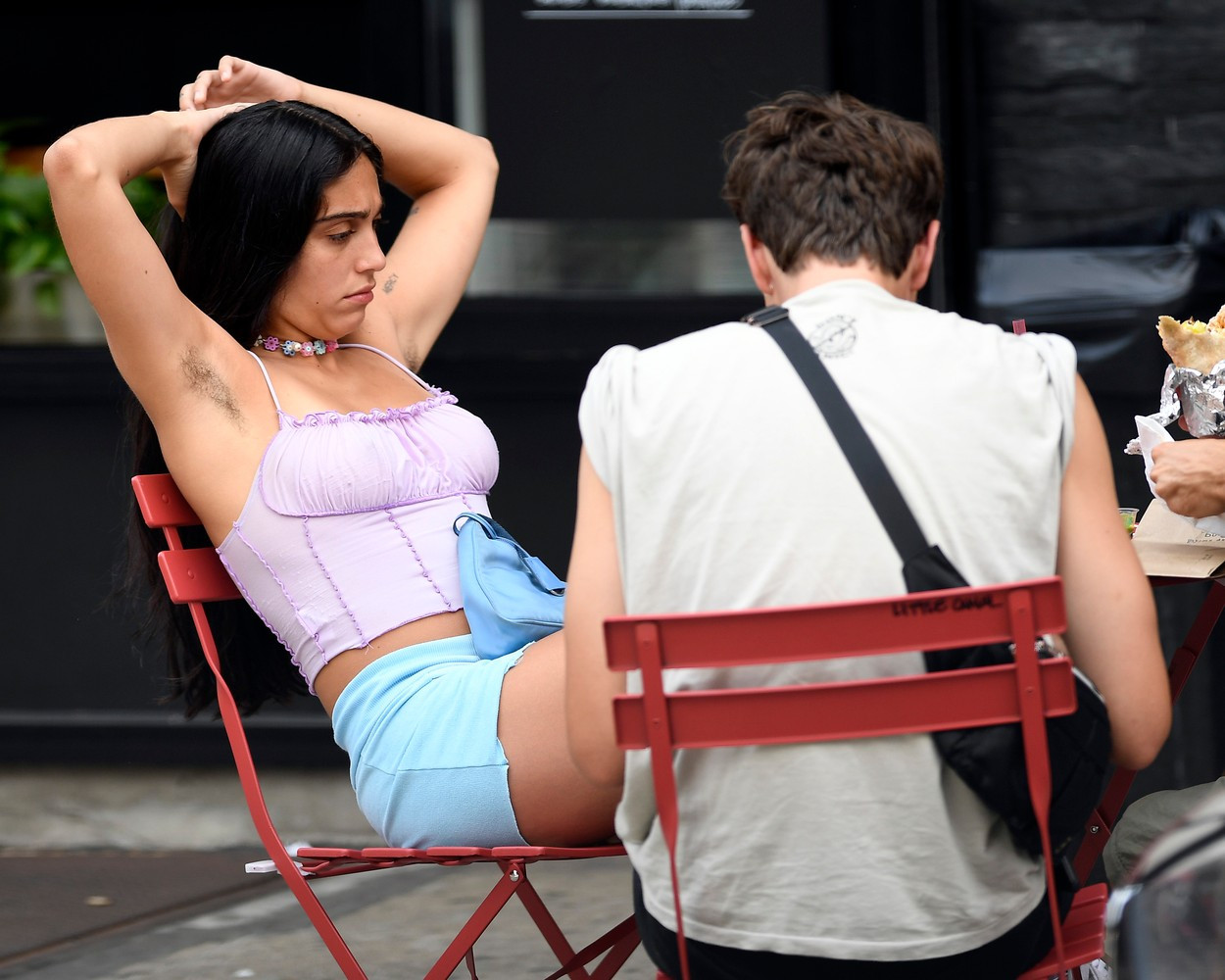 Dacă la început a atras atenția cu faptul că nu purta sutien, atunci când s-a relaxat la terasă papparazzi au surprins faptul că aceasta nu era epilată la subraț.
