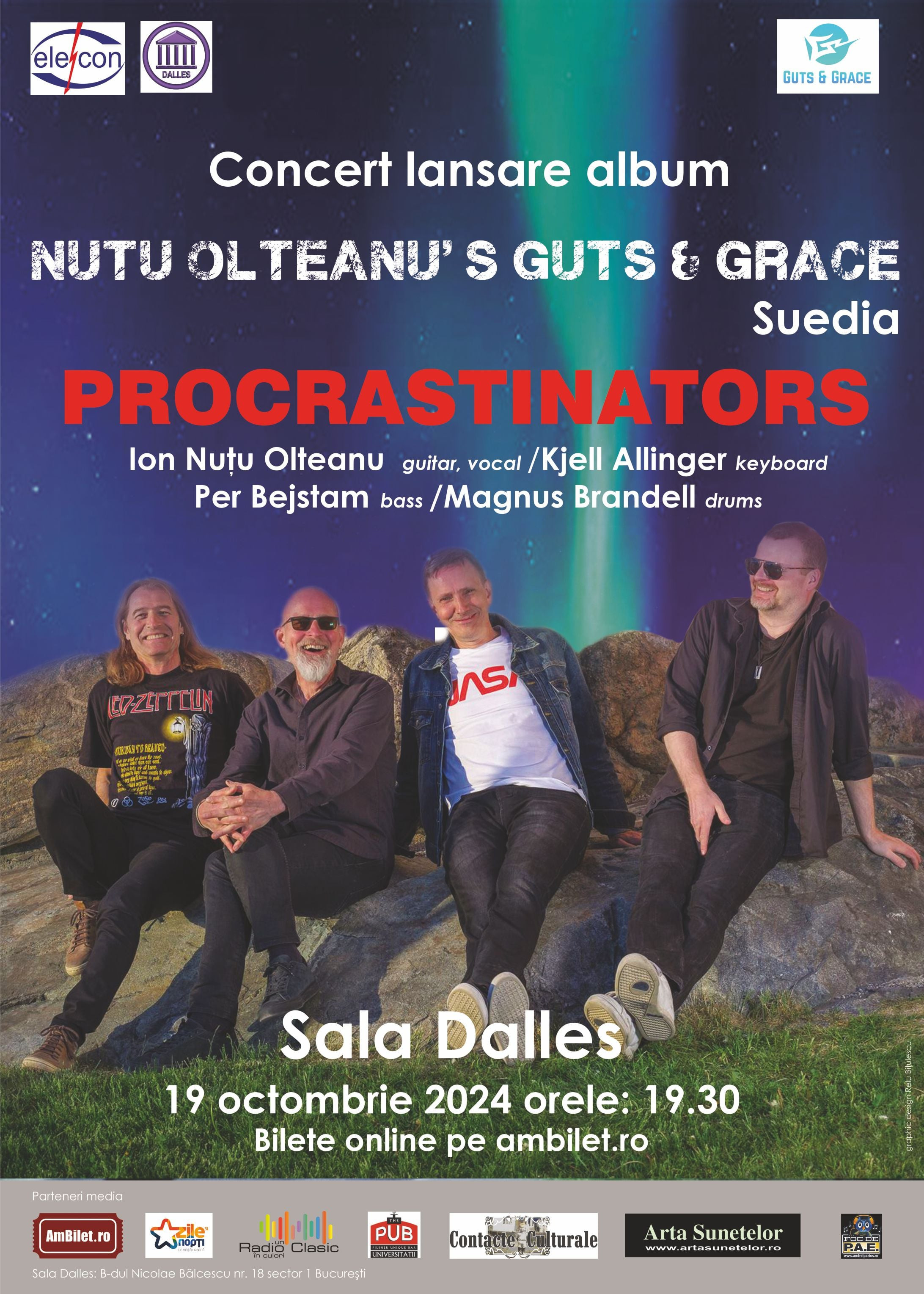 Formația Guts & Grace, în care cântă și cunoscutul chitarist Nuțu Olteanu, își lansează primul său album, ”Procrastinators”, printr-un concert care va avea loc în București, în 19 octombrie, la Sala Dalles.