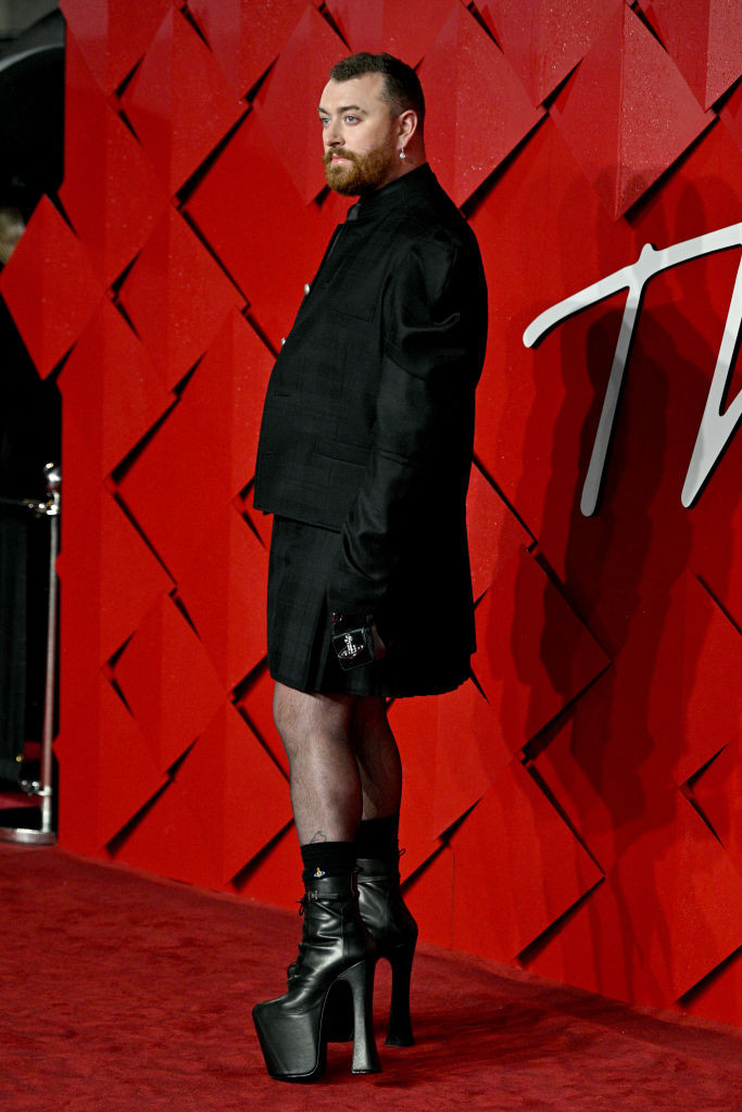 GALERIE FOTO. Celebrul cântăreț non-binar Sam Smith a purtat o fustă mini și tocuri înalte la London Fashion Awards