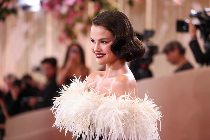Gomez și-a aranjat părul negru în bucle lucioase, inspirate din stilul vintage. Ea a venit cu soțul ei, Benny Blanco.