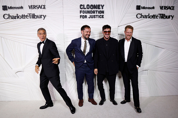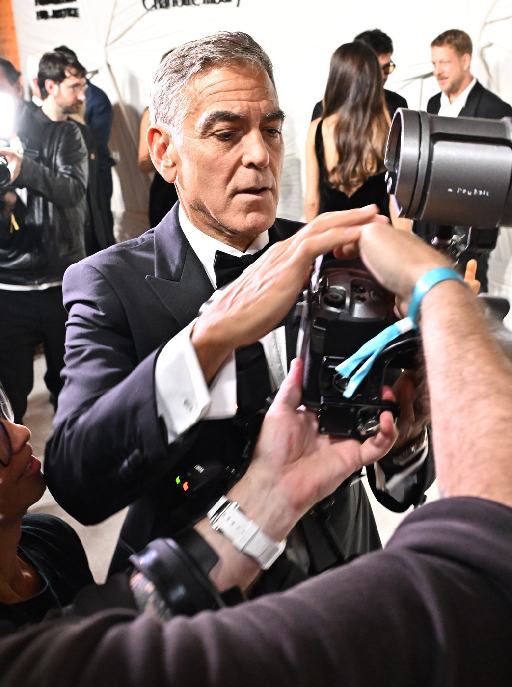 George Clooney a arătat impecabil într-un costum negru clasic, cămașă albă și papion negru. Ca detalii finale, actorul a purtat o pereche de pantofi negri eleganți, cu șireturi, și un ceas argintiu, strălucitor, la mâna stângă.
