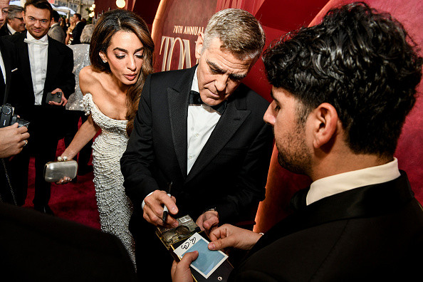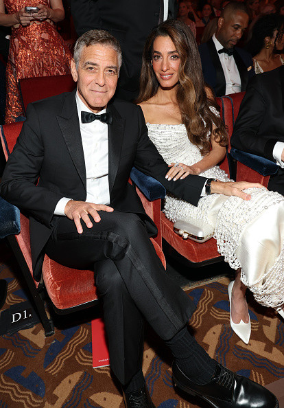 Clooney a fost prezent la evenimentul de gală într-un smoking negru impecabil, alături de soția sa, Amal, în vârstă de 47 de ani, care a atras toate privirile. Ea a purtat o rochie albă, decorată cu mărgele, iar look-ul a fost completat de un clutch și pantofi stiletto albi.