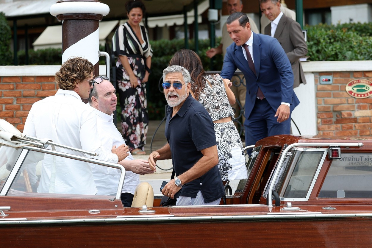 George Clooney a fost surprins de paparazzi, marți, alături de soția sa fermecătoare, Amal, la Veneția, în Italia, înaintea celei de-a 80-a ediții a Festivalului Internațional de Film.