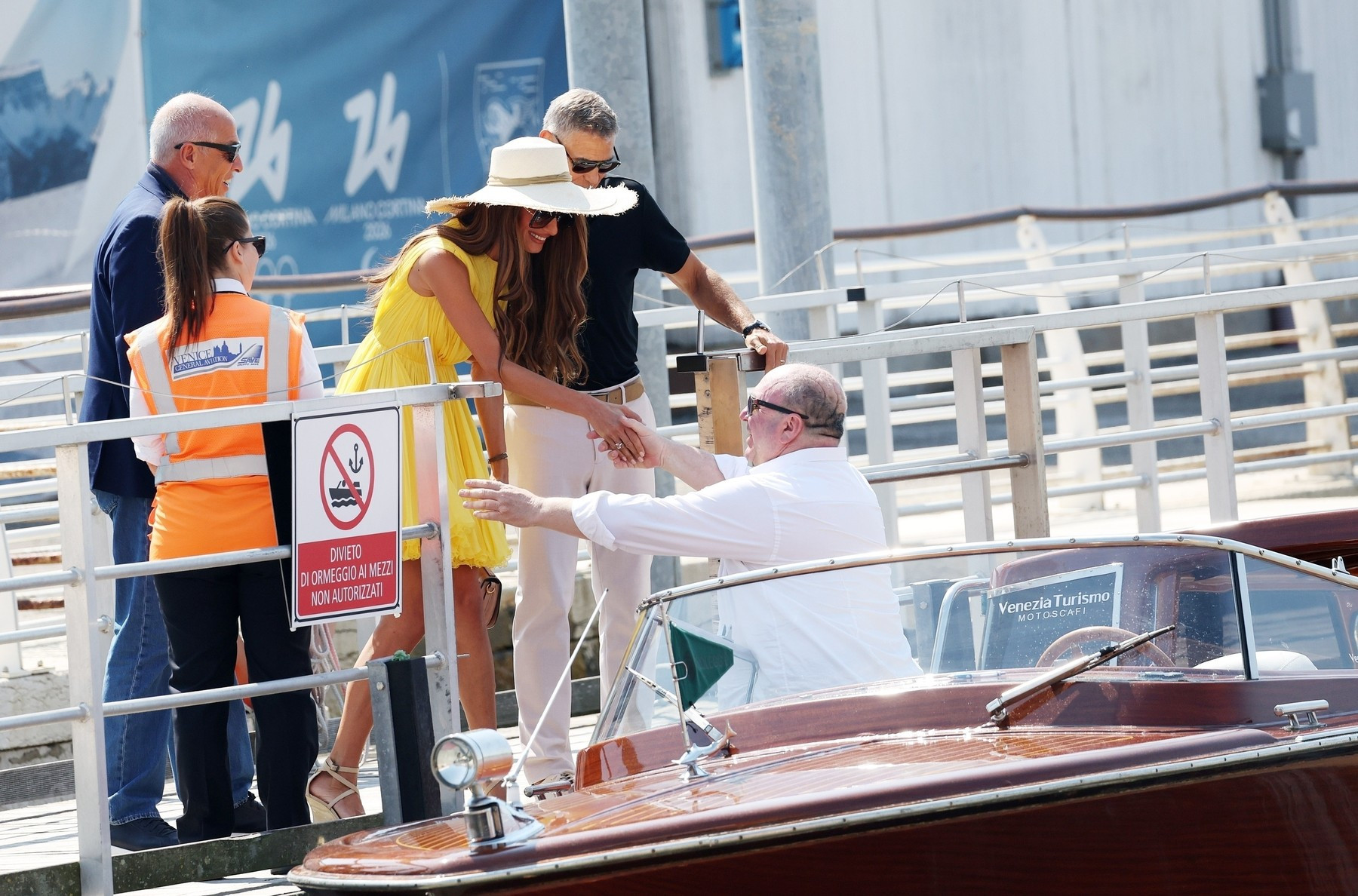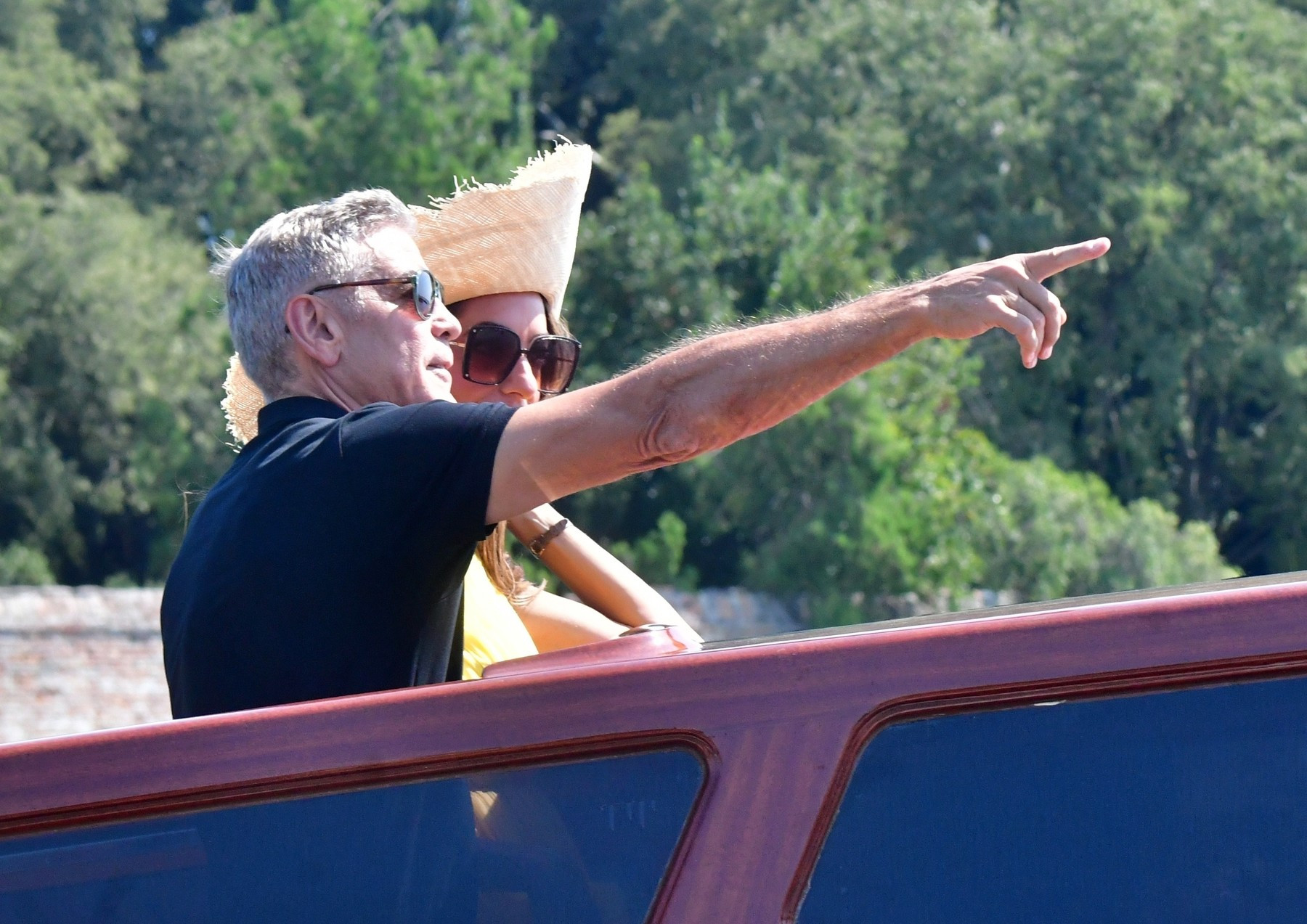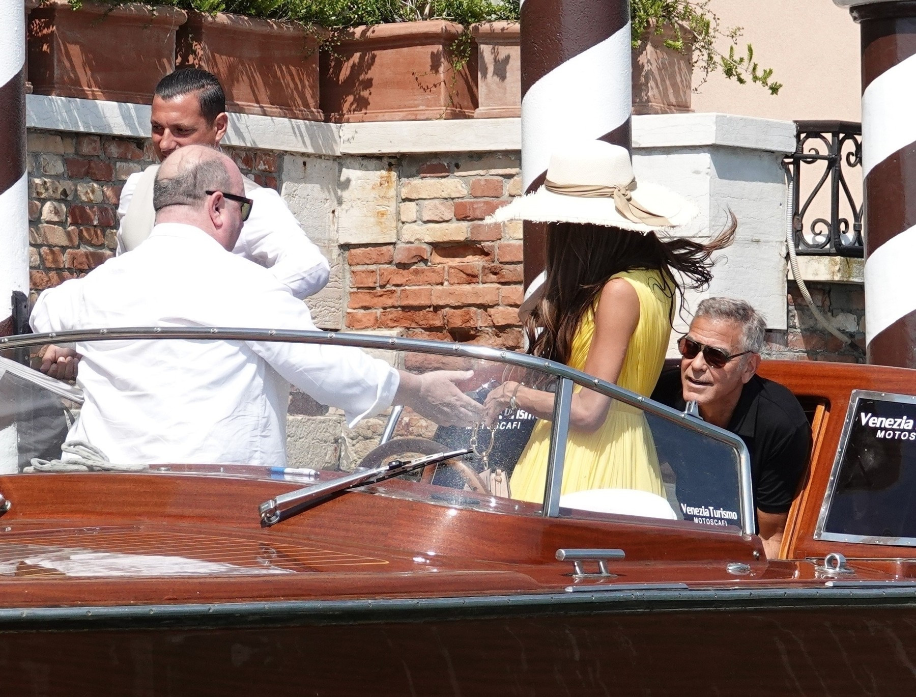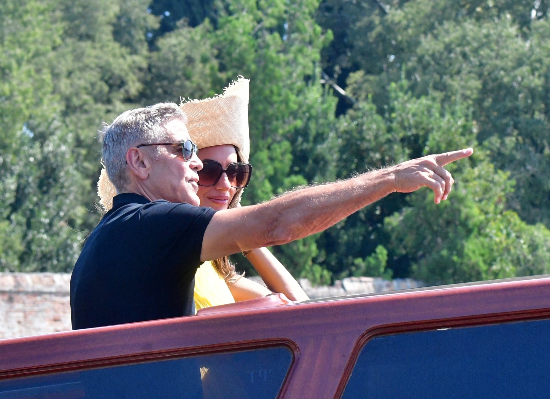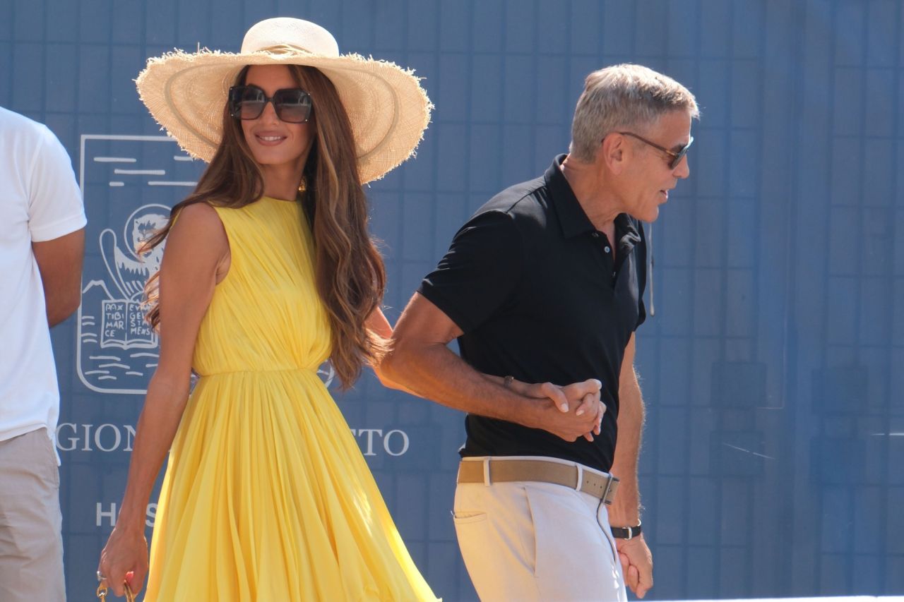 Actorul în vârstă de 63 de ani, a purtat o ținută casual, în timp ce Amal, în vârstă de 46 de ani, a uimit într-o rochie mini galbenă plină de farmec și o pălărie asortată, potrivit Daily Mail.