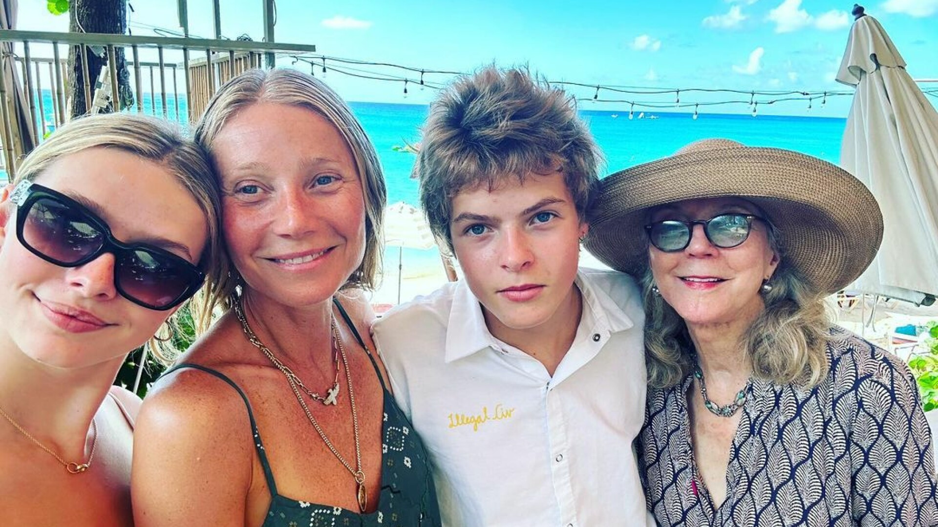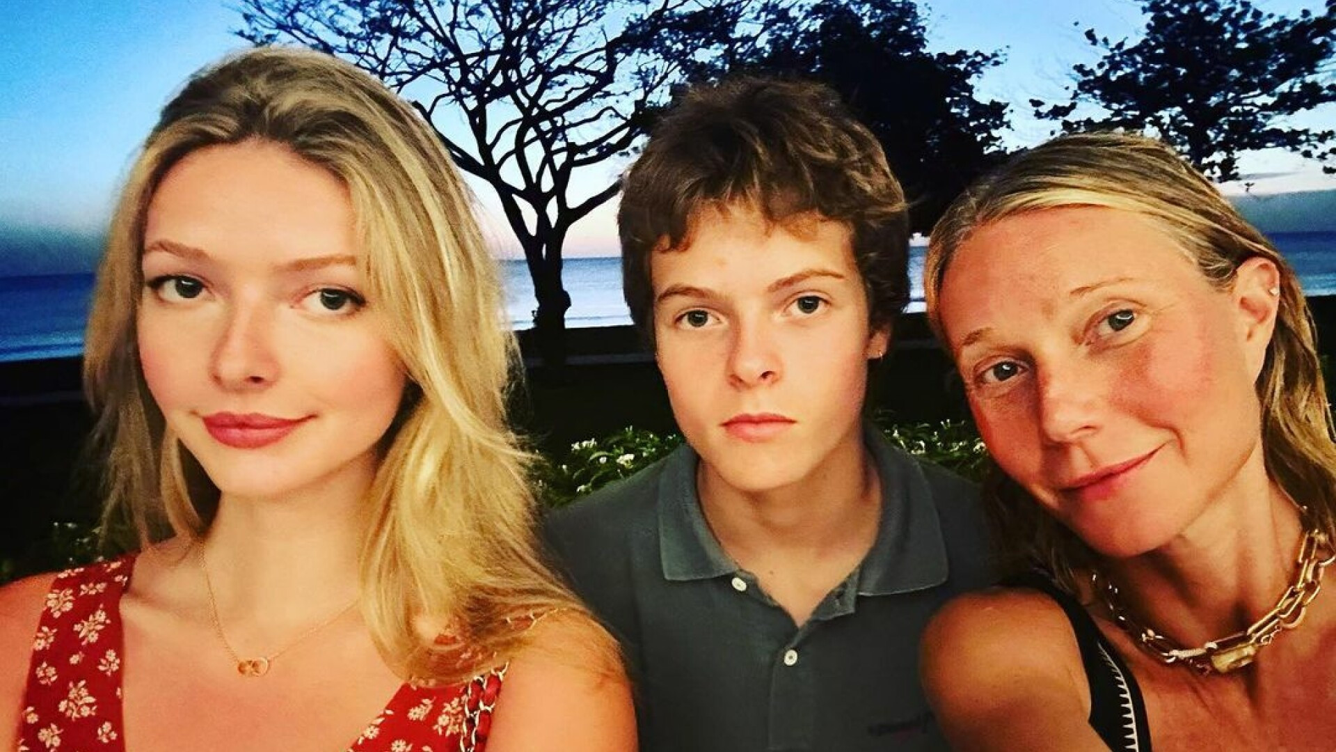 Într-o altă imagine apare alături de Apple, fiul ei Moses, în vârstă de 16 ani, și mama ei Blythe Danner, în vârstă de 79 de ani. Apple și Moses sunt copiii actriței cu fostul soț Chris Martin. În prezent, vedeta este căsătorită cu scriitorul Brad Falchuk, în vârstă de 51 de ani.