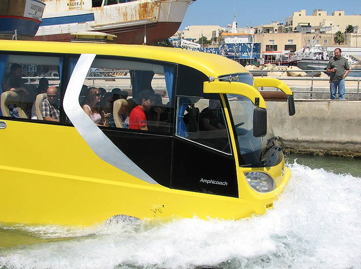 Autobuzul pe apa are la alegere doua sau patru roti si e prevazut cu sistem de propulsie. Inauntru, arata ca un autocar obisnuit insa are LCD-uri, DVD playere, plus toate instrumentele de siguranta. Speram sa-ti placa ideea!