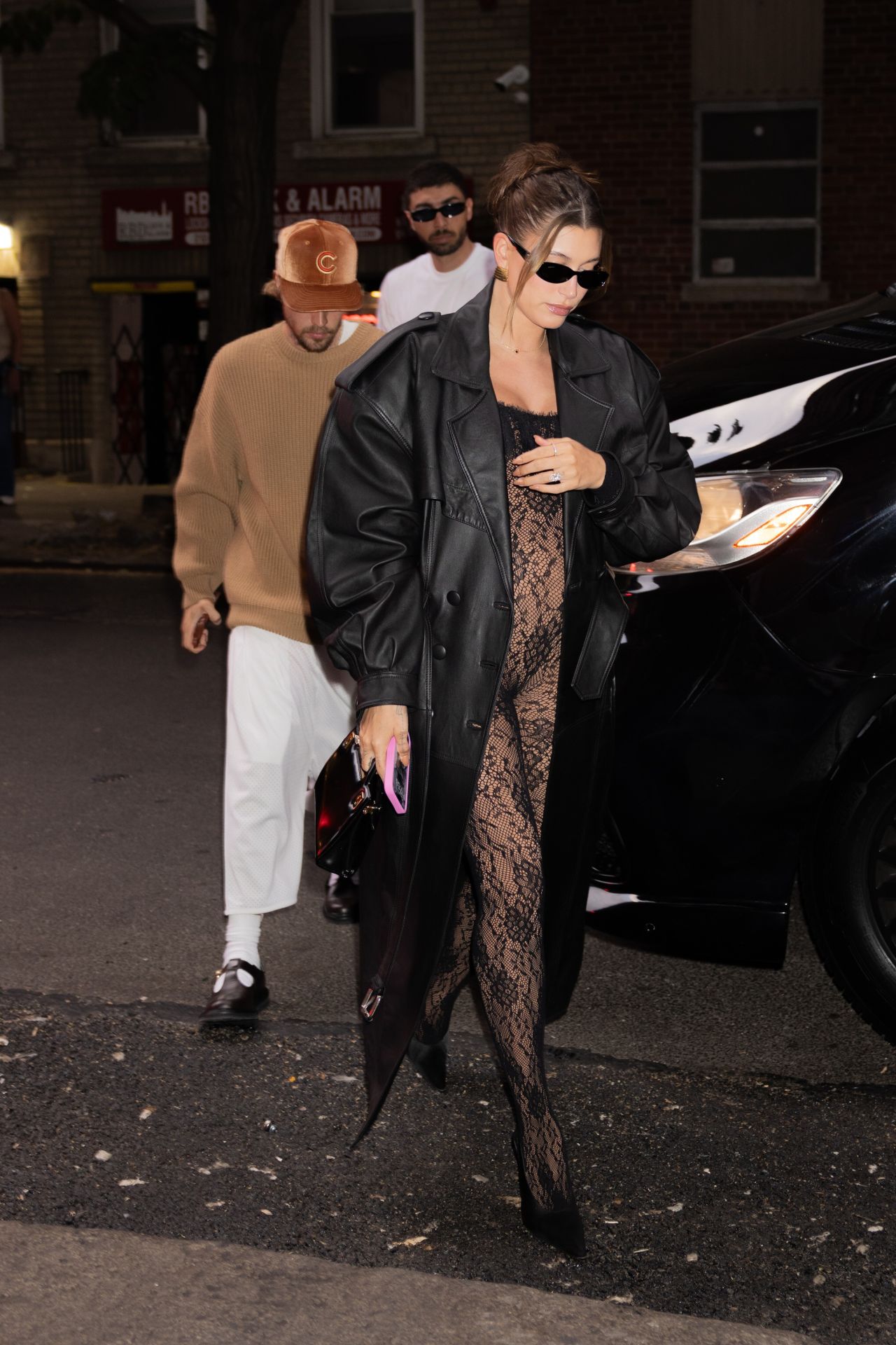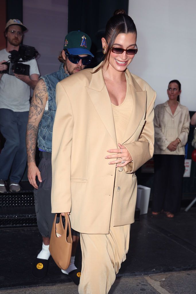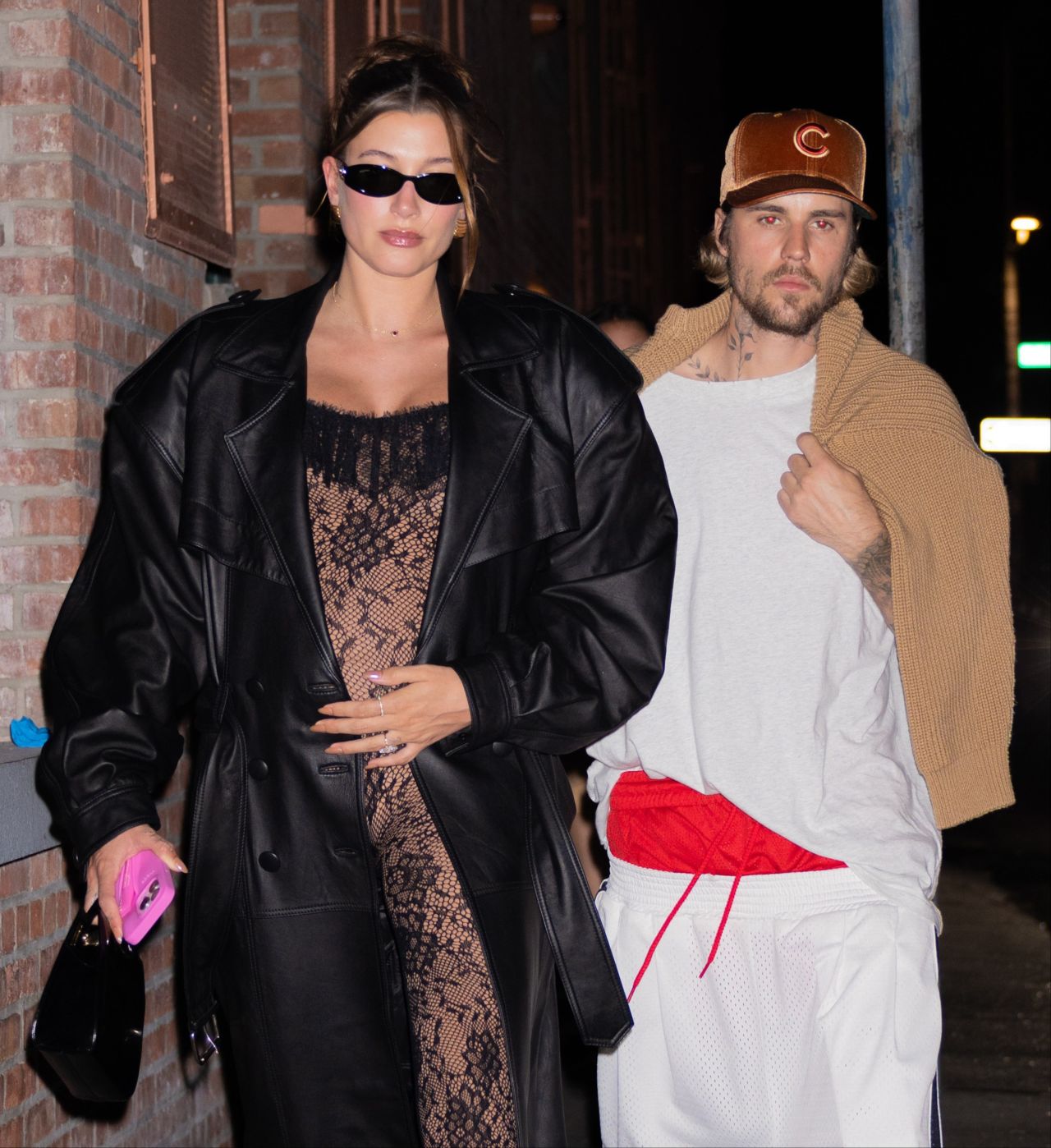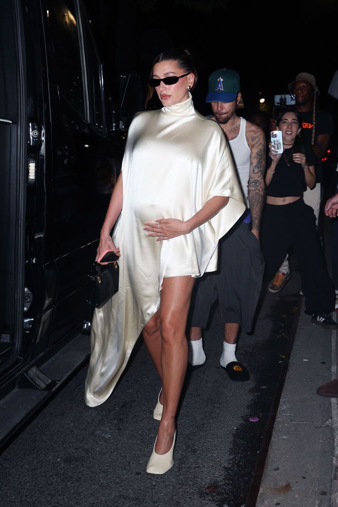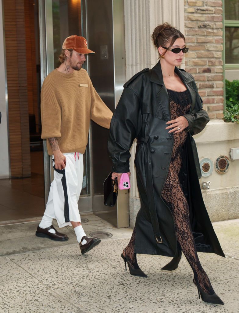 Cei doi au fost surprinși în ipostaze tandre. Hailey Bieber și-a făcut apariția într-o rochie de seară albă, elegantă și semitransparentă. Ea și-a completat ținuta cu o pereche de ochelari de soare albi și un lănțișor cu inițiala „B”. Justin Bieber a purtat un tricou alb, o pereche de blugi și o căciulă verde.