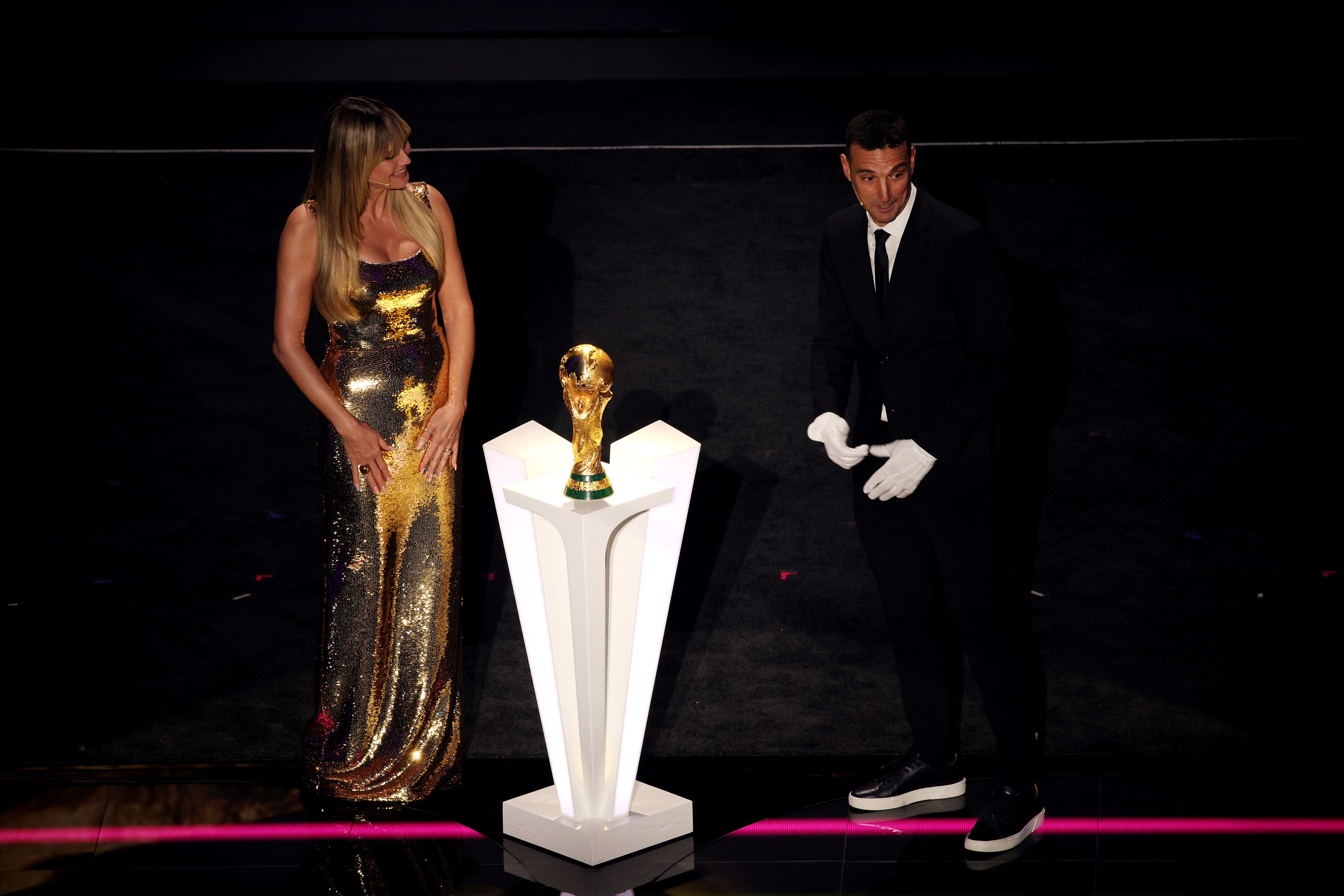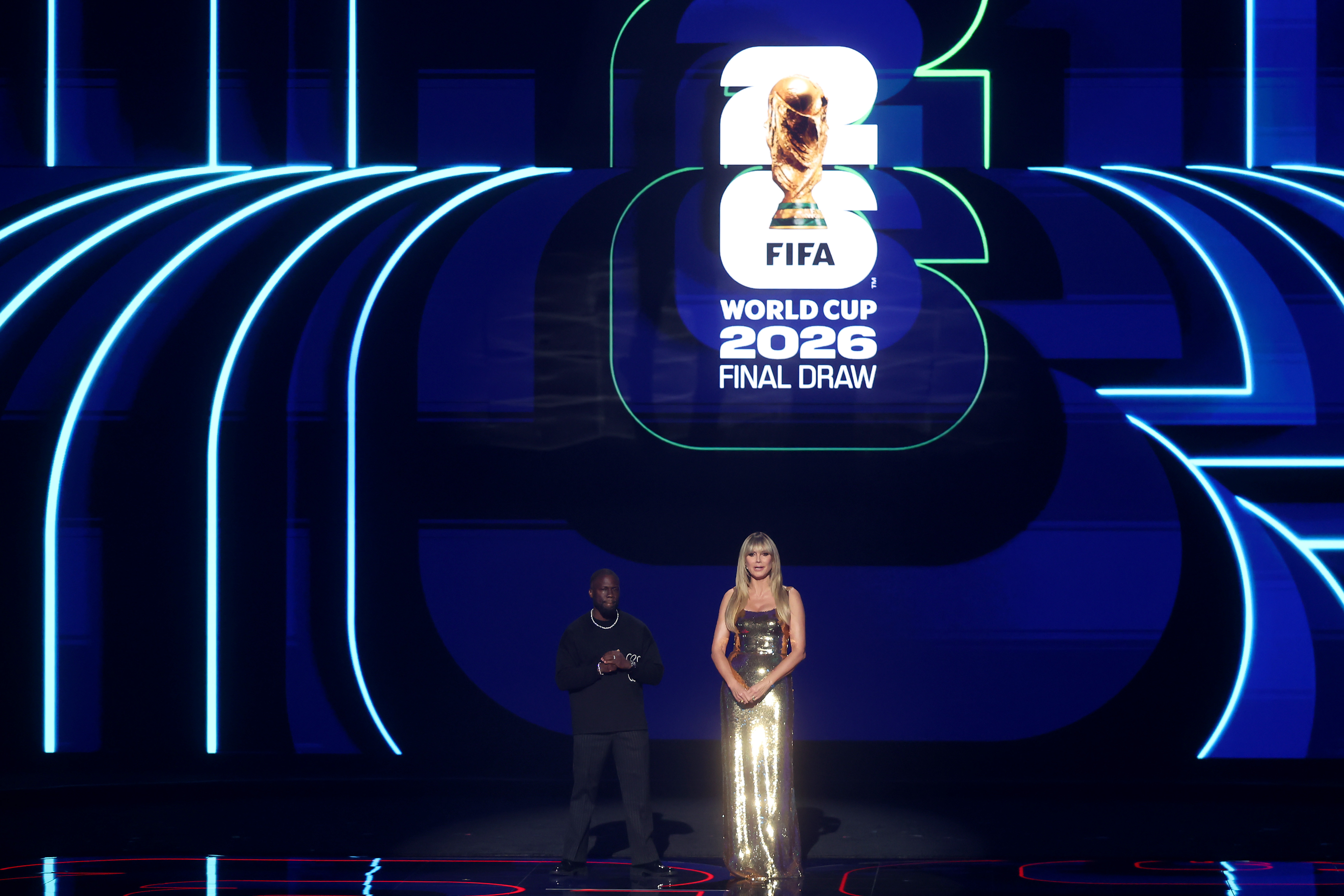 Heidi Klum i s-a alăturat lui Robbie Williams la tragerea la sorți a Cupei Mondiale de Fotbal FIFA 2026, desfășurată la Kennedy Centre din Washington D.C., vineri seară.