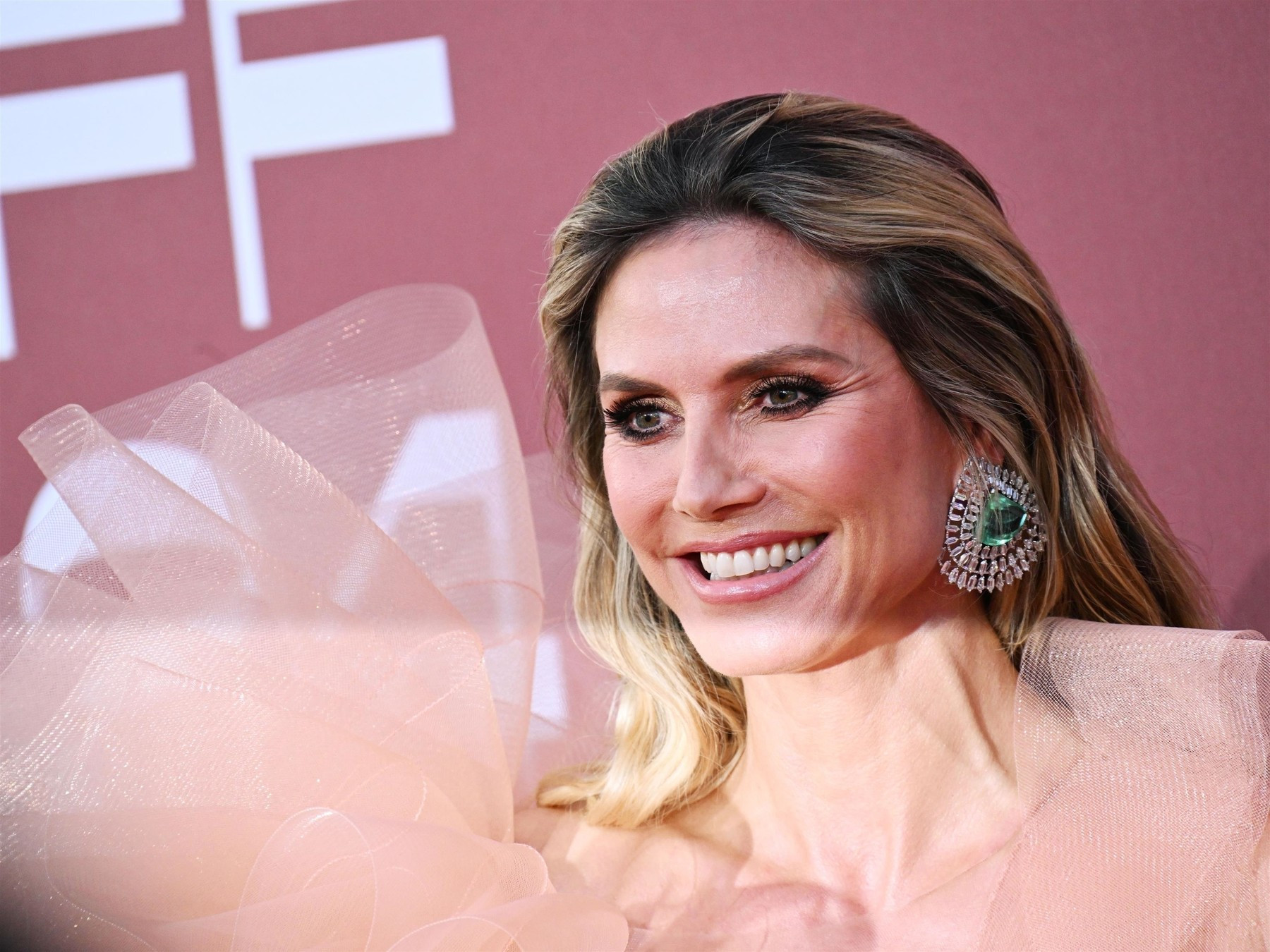 Heidi, a optat pentru o rochie midi albă șic, asortată cu un blazer alb. Ea și-a accesorizat superba rochie cu o pereche de tocuri înalte argintii.