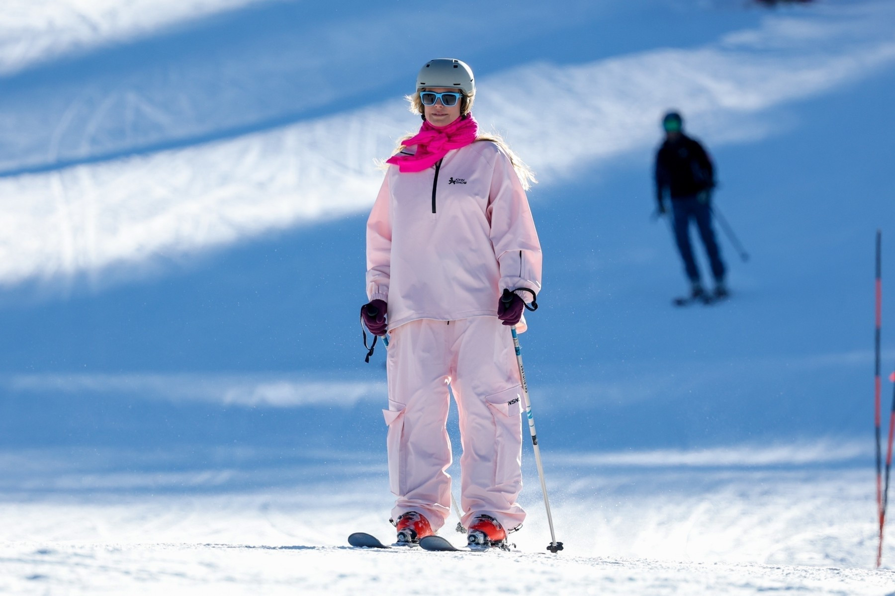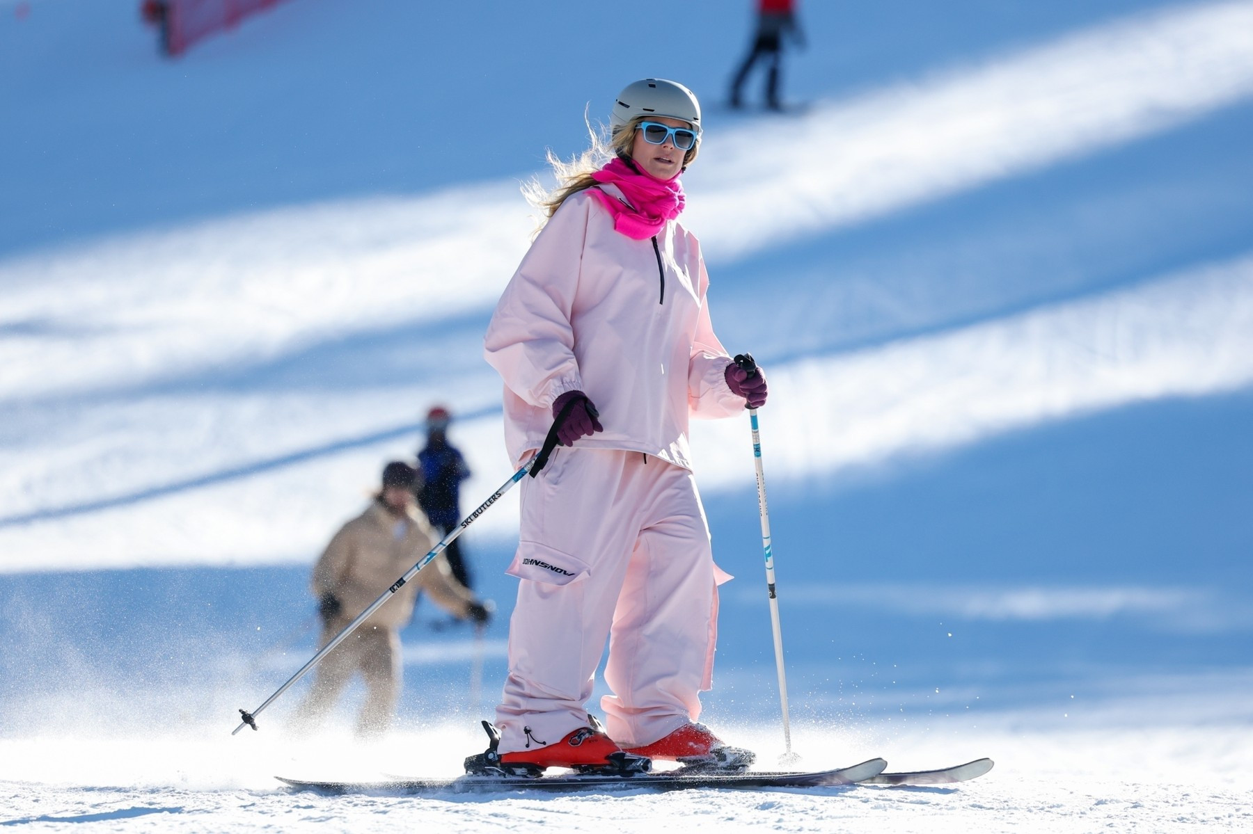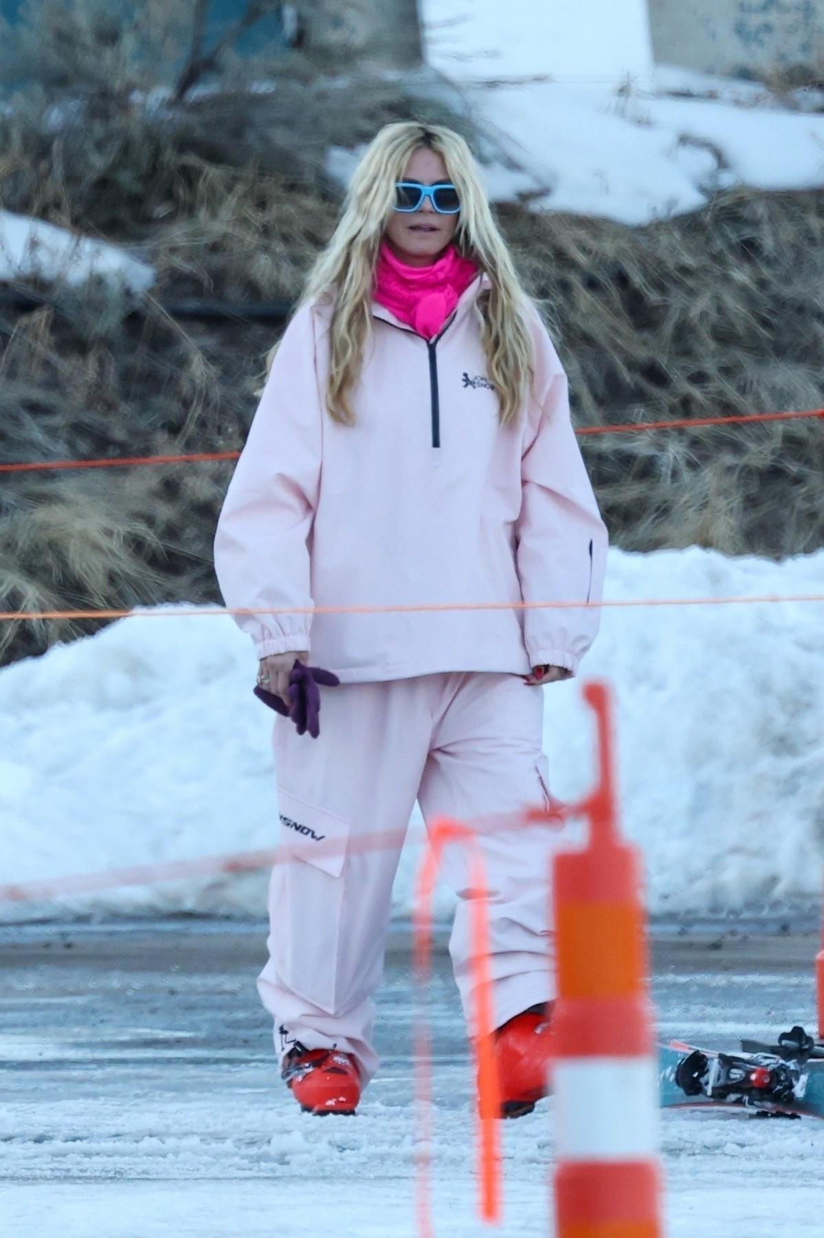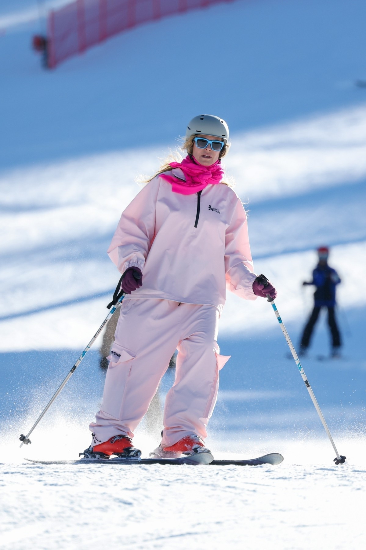 Supermodelul în vârstă de 51 de ani s-a îmbrăcat în mai multe straturi de haine și a coborât pe pârtie într-o ținută de schi din două piese, roz deschis, pe care a accesorizat-o cu ochelari de soare într-o nuanță de albastru deschis.