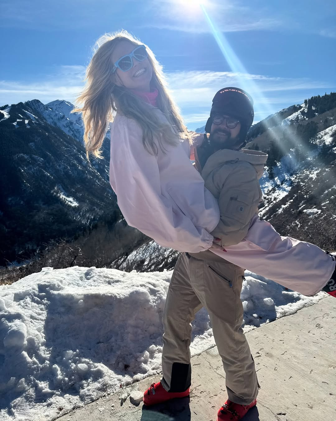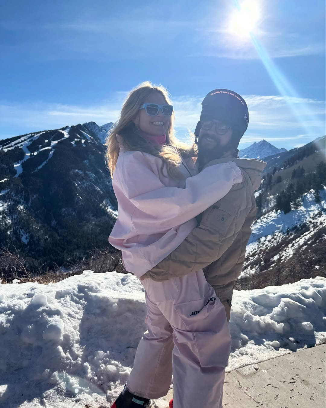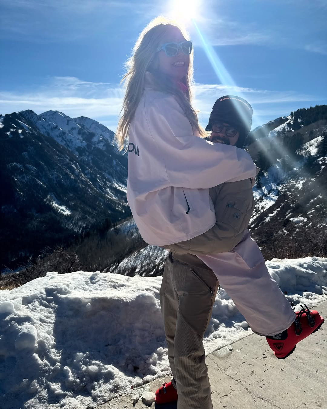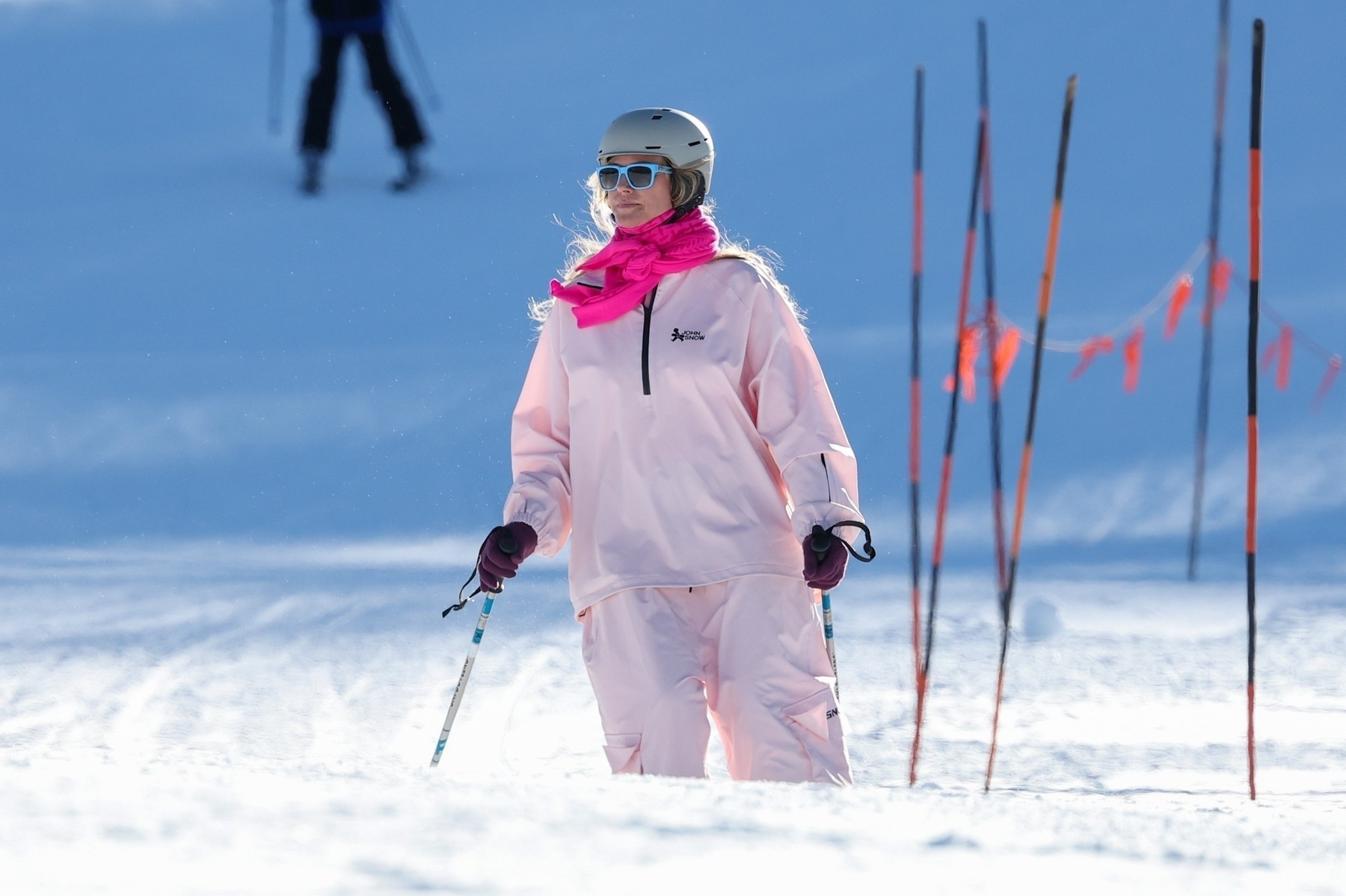 Supermodelul în vârstă de 51 de ani s-a îmbrăcat în mai multe straturi de haine și a coborât pe pârtie într-o ținută de schi din două piese, roz deschis, pe care a accesorizat-o cu ochelari de soare într-o nuanță de albastru deschis.