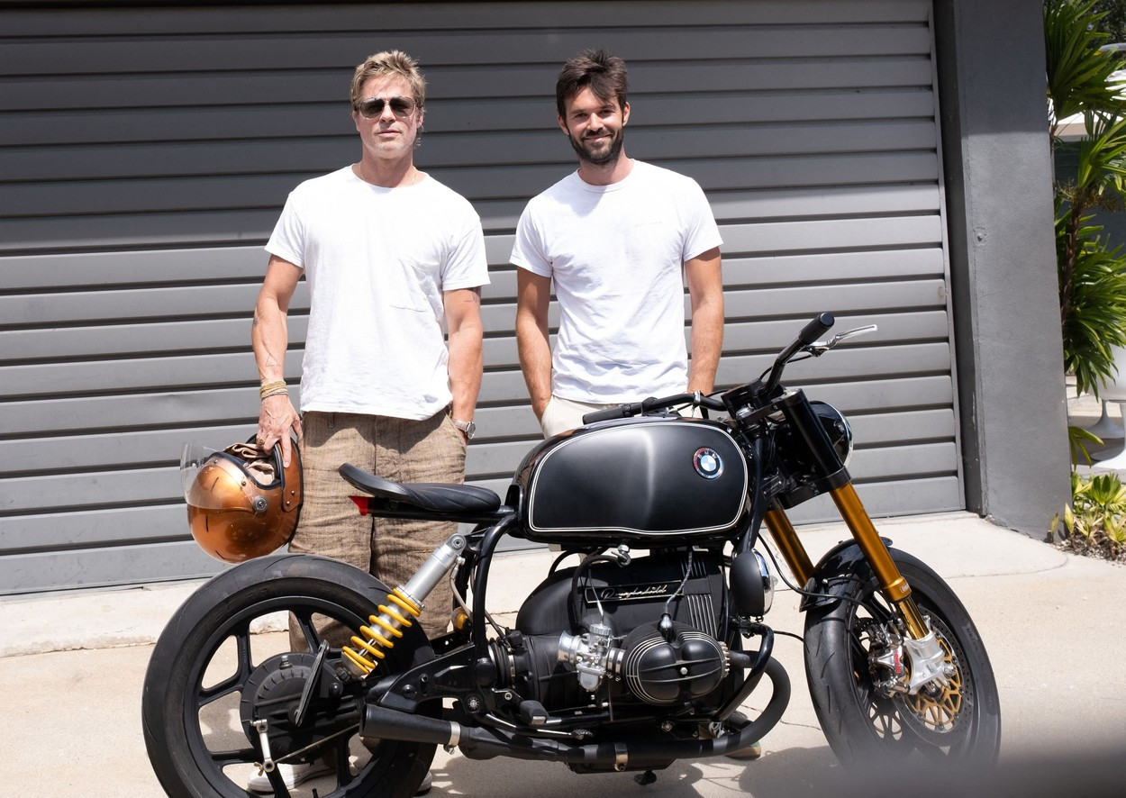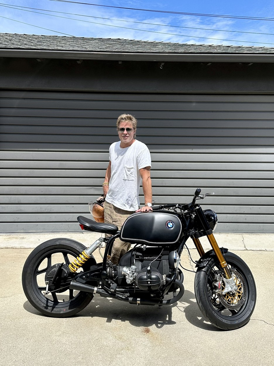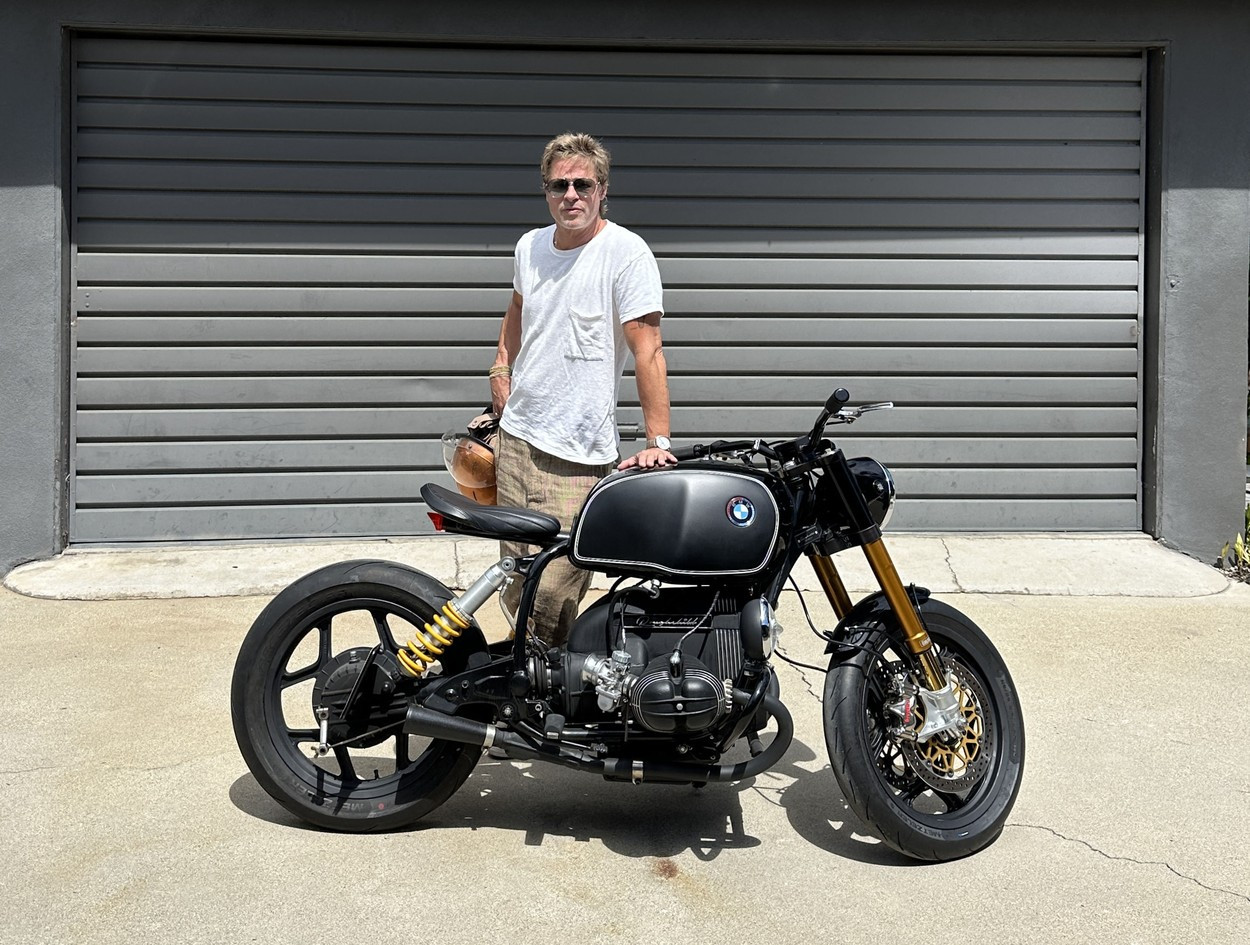 Pitt a pozat și cu casca pe cap, dar nici mănușile de motociclist nu au lipsit.
