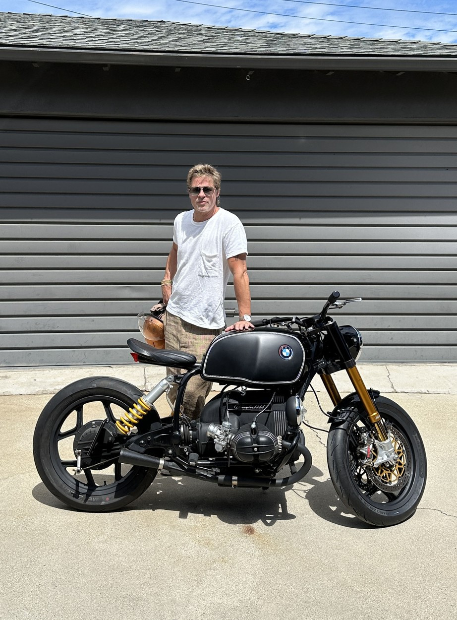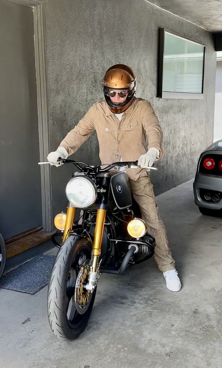 Actorul a ales o ținută care să se integreze perfect cu motocicleta luxoasă lângă care s-a fotografiat, pe care a cumpărat-o recent de la Roughchild Motorcycles din Los Angeles.