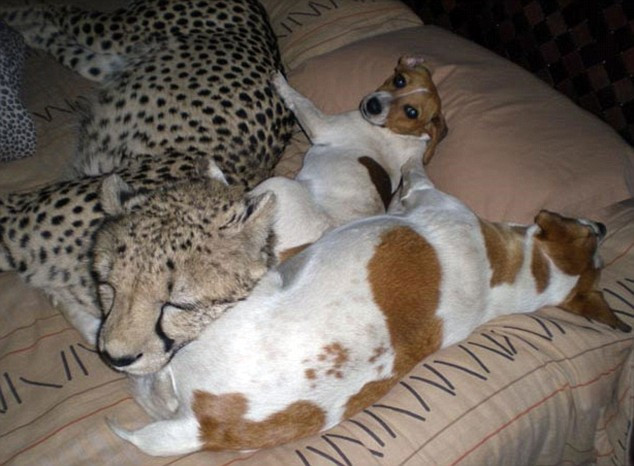 Ideea de a-ti imparti patul cu un animal blanos, a capatat un nou inteles pentru Riana Van Nieuwenhuizen. Femeia adaposteste in casa patru gheparzi, cinci lei si doi tigri.