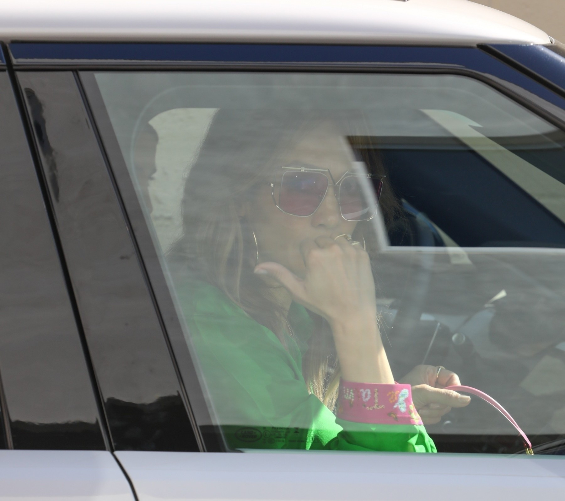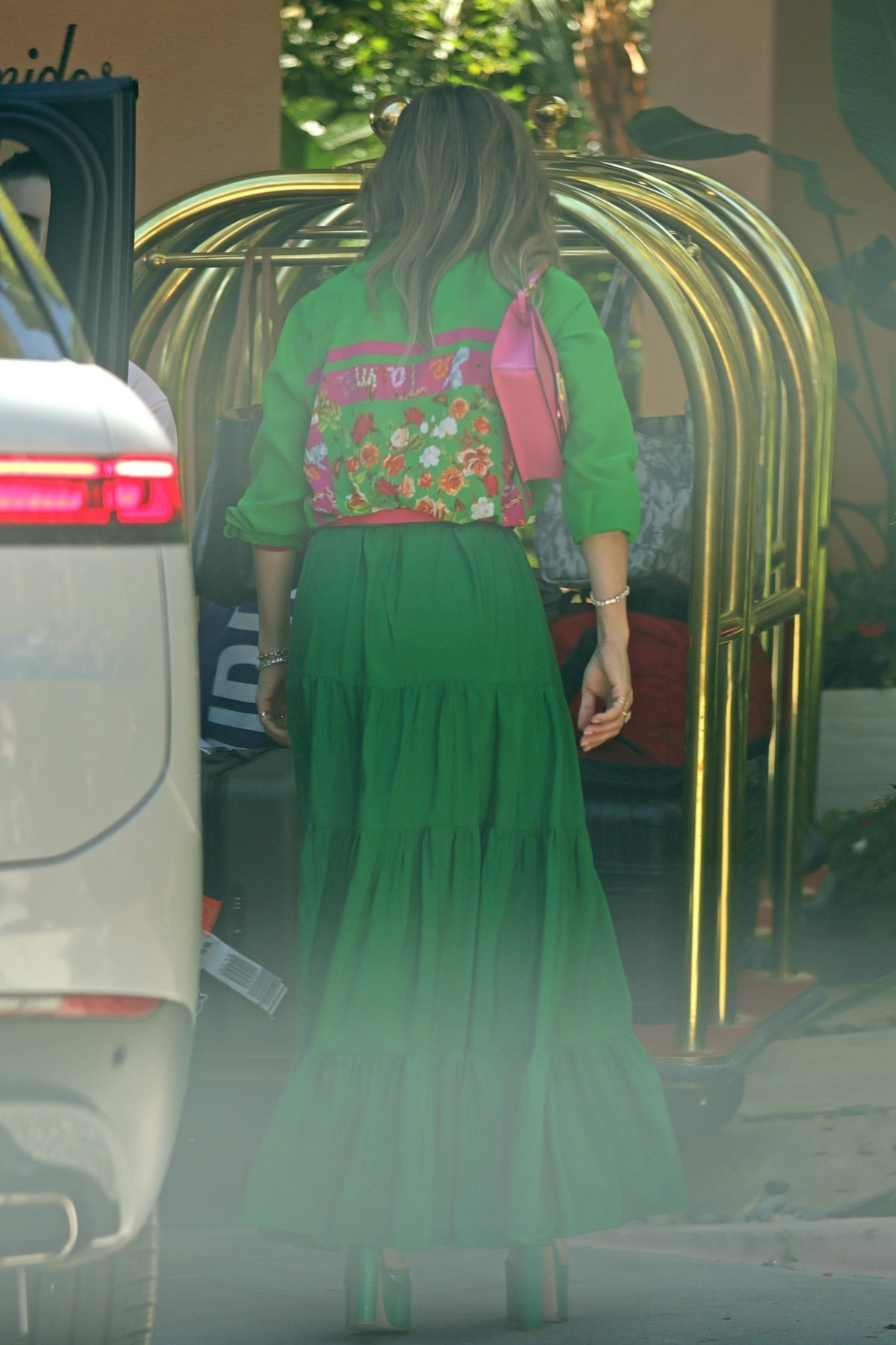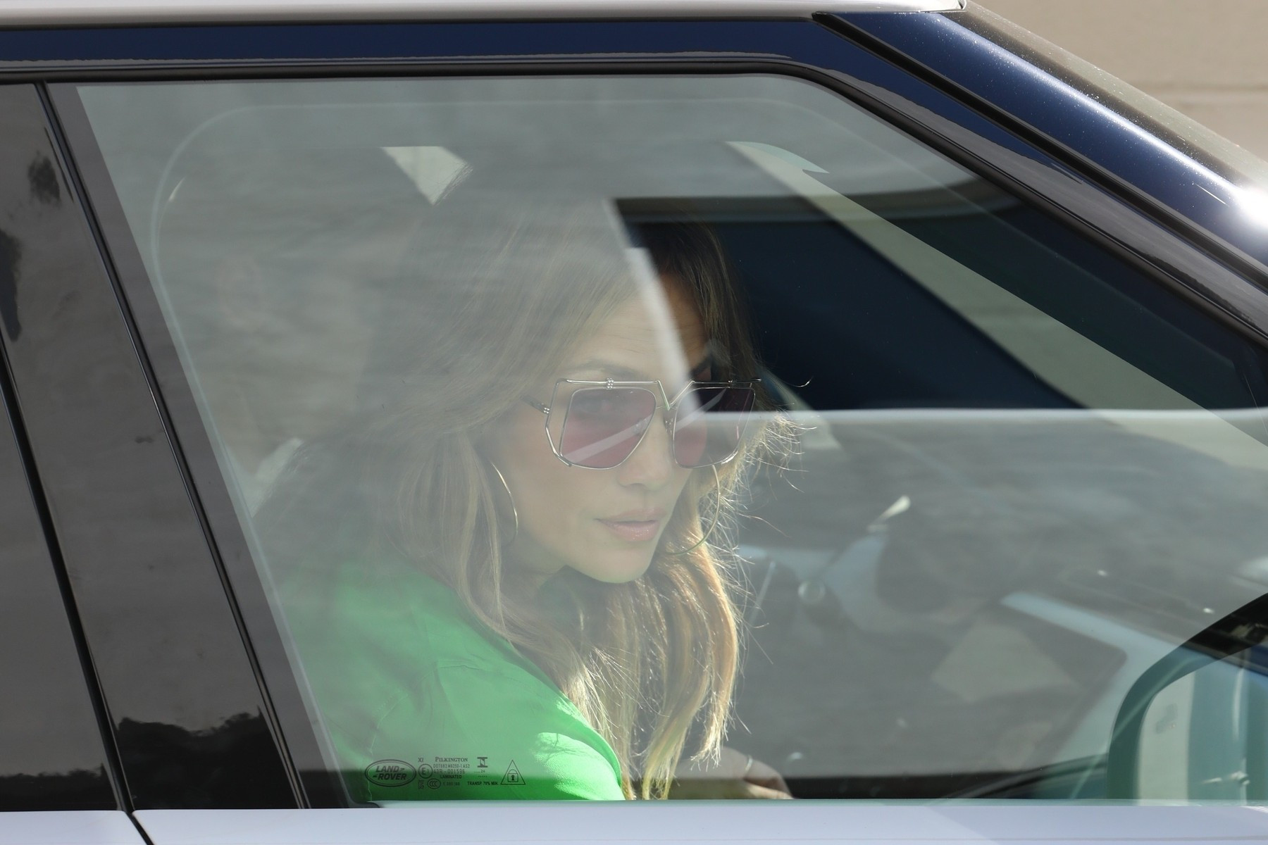Jennifer Lopez, despre care se spune că lucrează la o „nouă înfățișare” - a arătat vibrantă într-un top verde aprins și o fustă asortată. Cântăreața și-a completat look-ul elegant cu o pereche de pantofi cu toc, cu platformă verzi, și o poșetă roz.