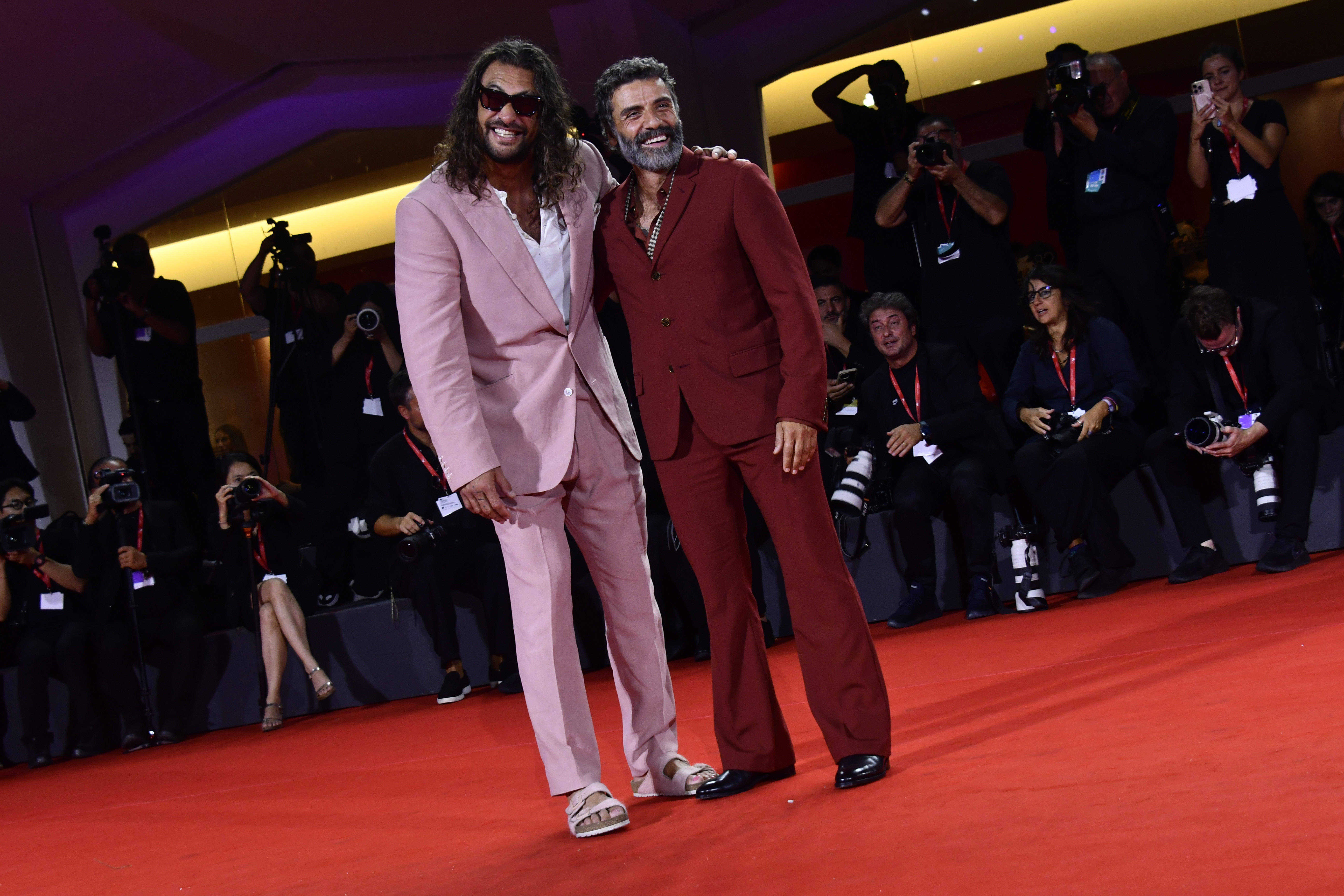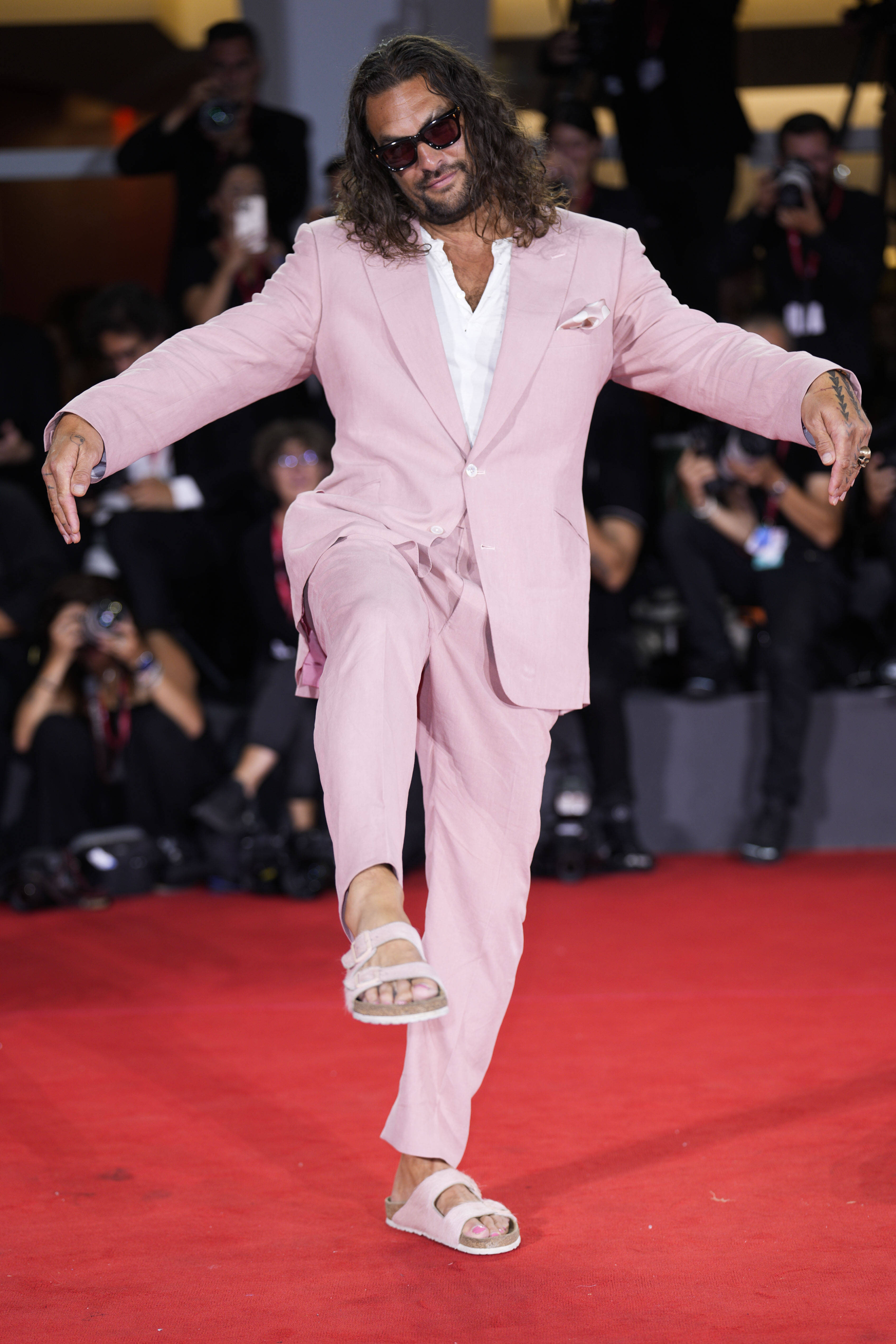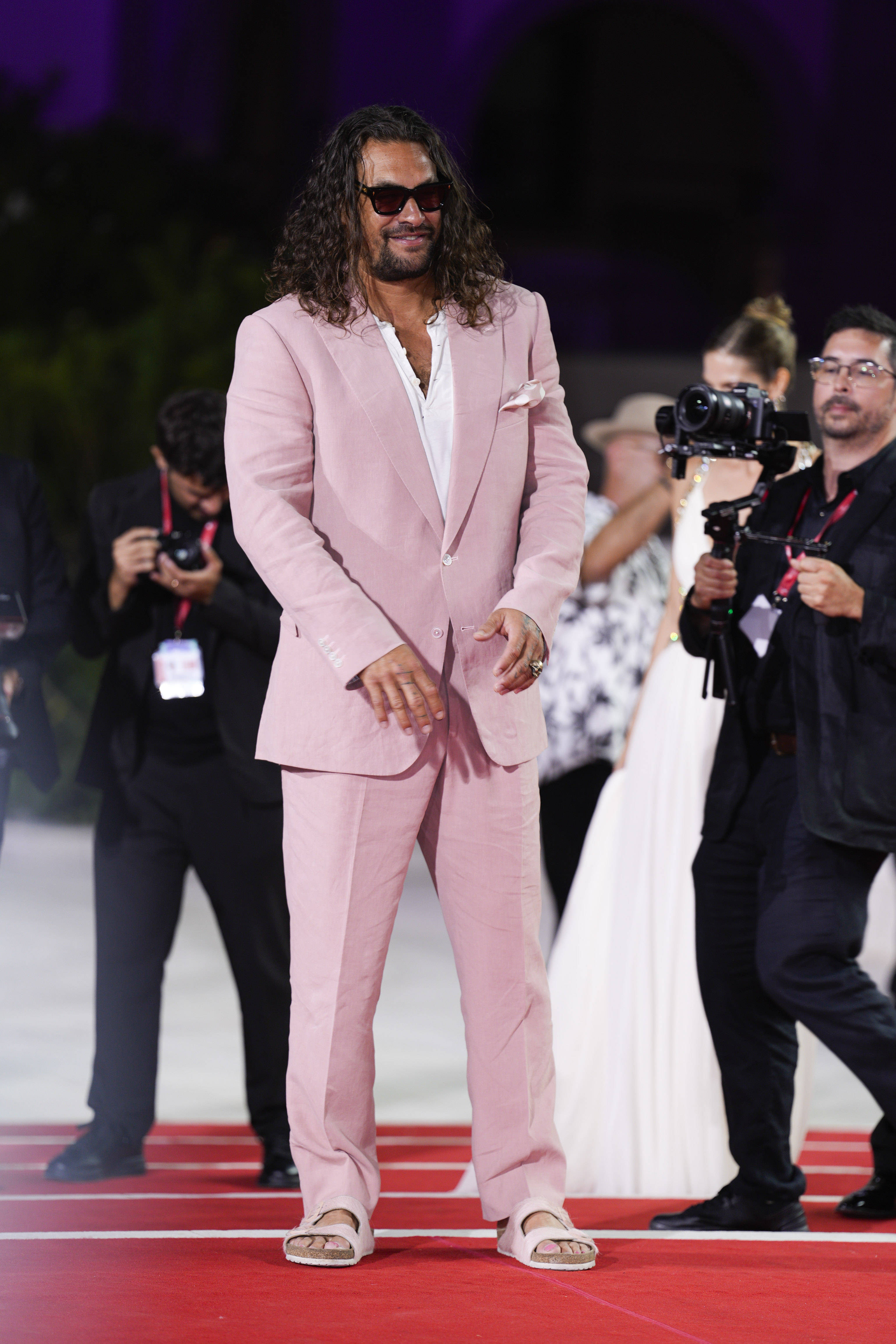 Jason Momoa, în costum și papuci roz pe covorul roșu de la Veneția. Actorul și-a asortat și unghiile. FOTO