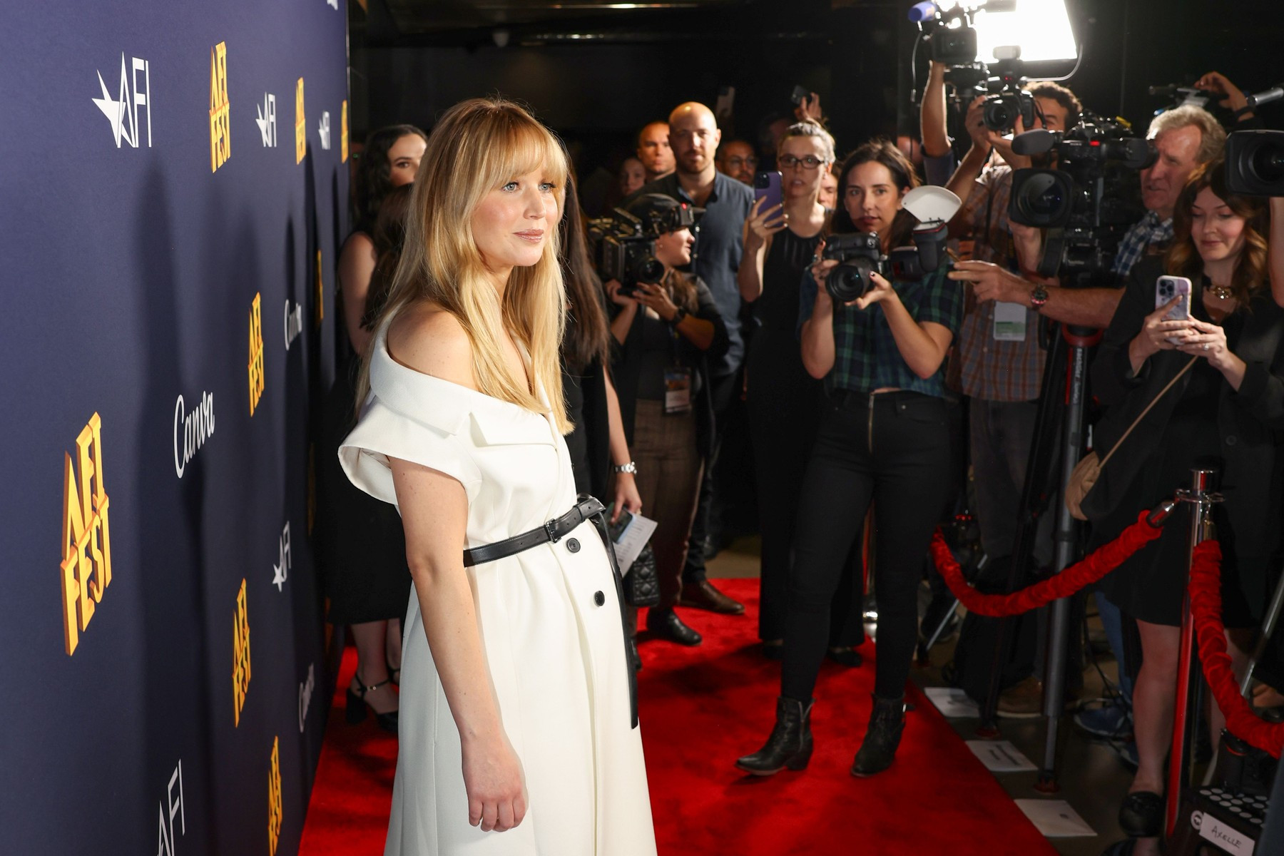 Jennifer Lawrence, prima apariție pe covorul roșu de când a confirmat că este însărcinată. Ce ținută a purtat. GALERIE FOTO