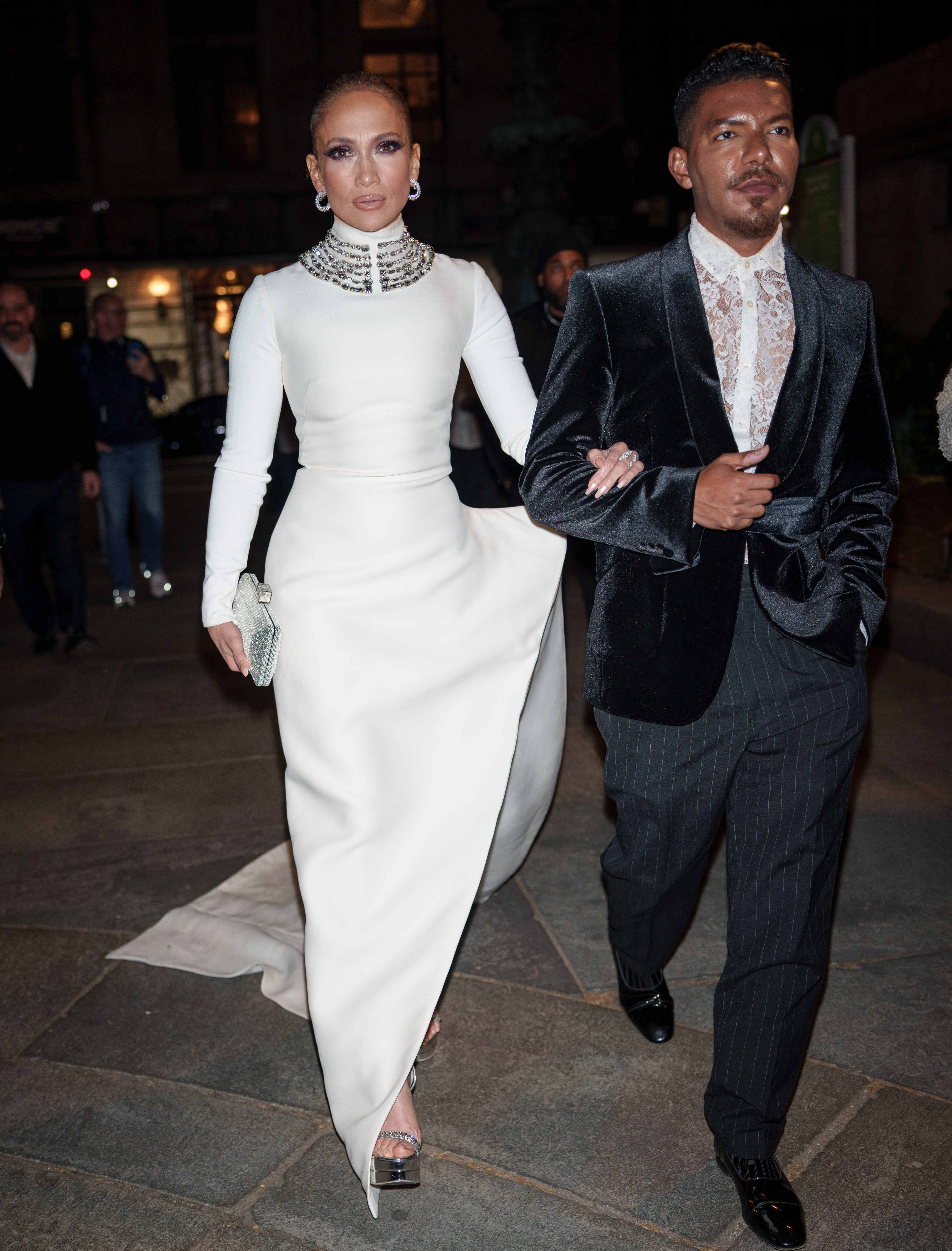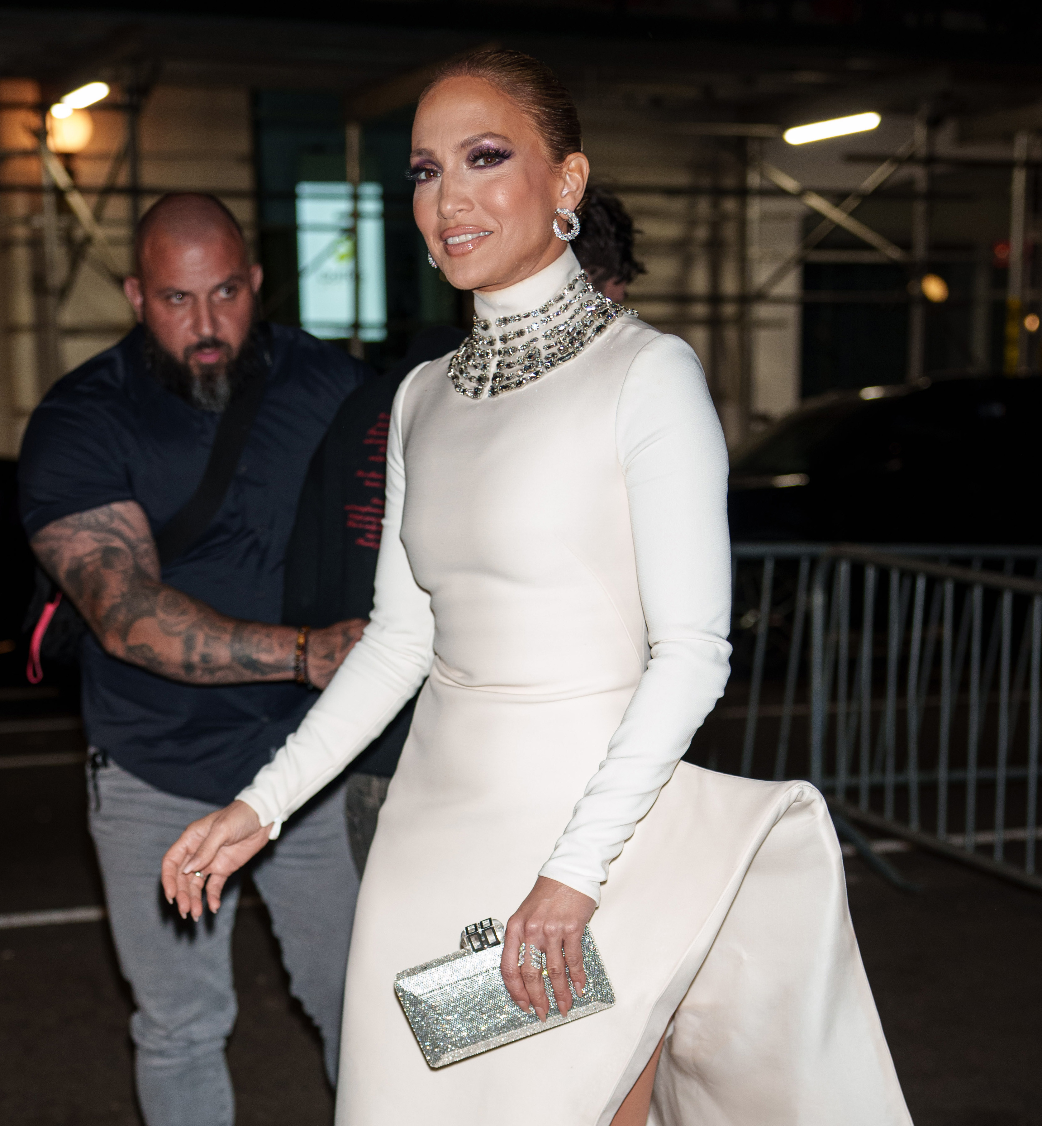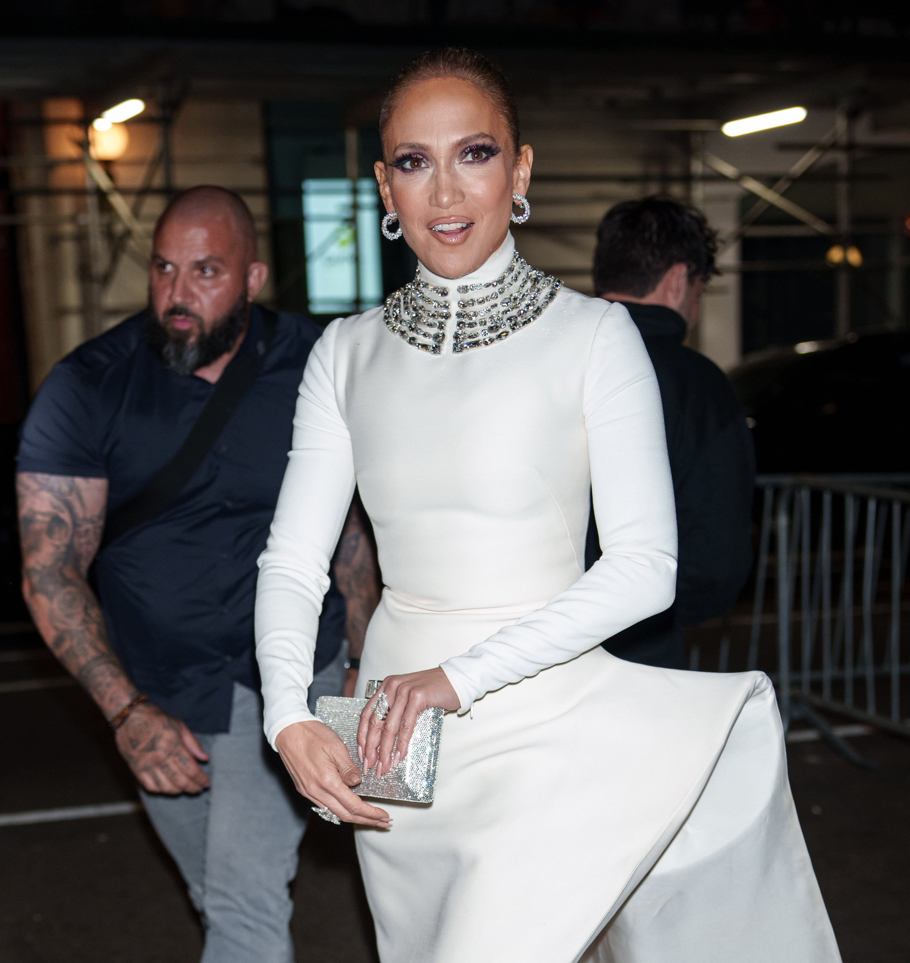 Pentru petrecerea de după eveniment, organizată la Bryant Park Grill, Jennifer Lopez și-a schimbat ținuta, optând pentru o rochie albă, elegantă, cu guler înalt și croială minimalistă. Ținuta a fost accesorizată cu bijuterii statement, iar coafura a fost și ea diferită – părul lăsat pe spate.