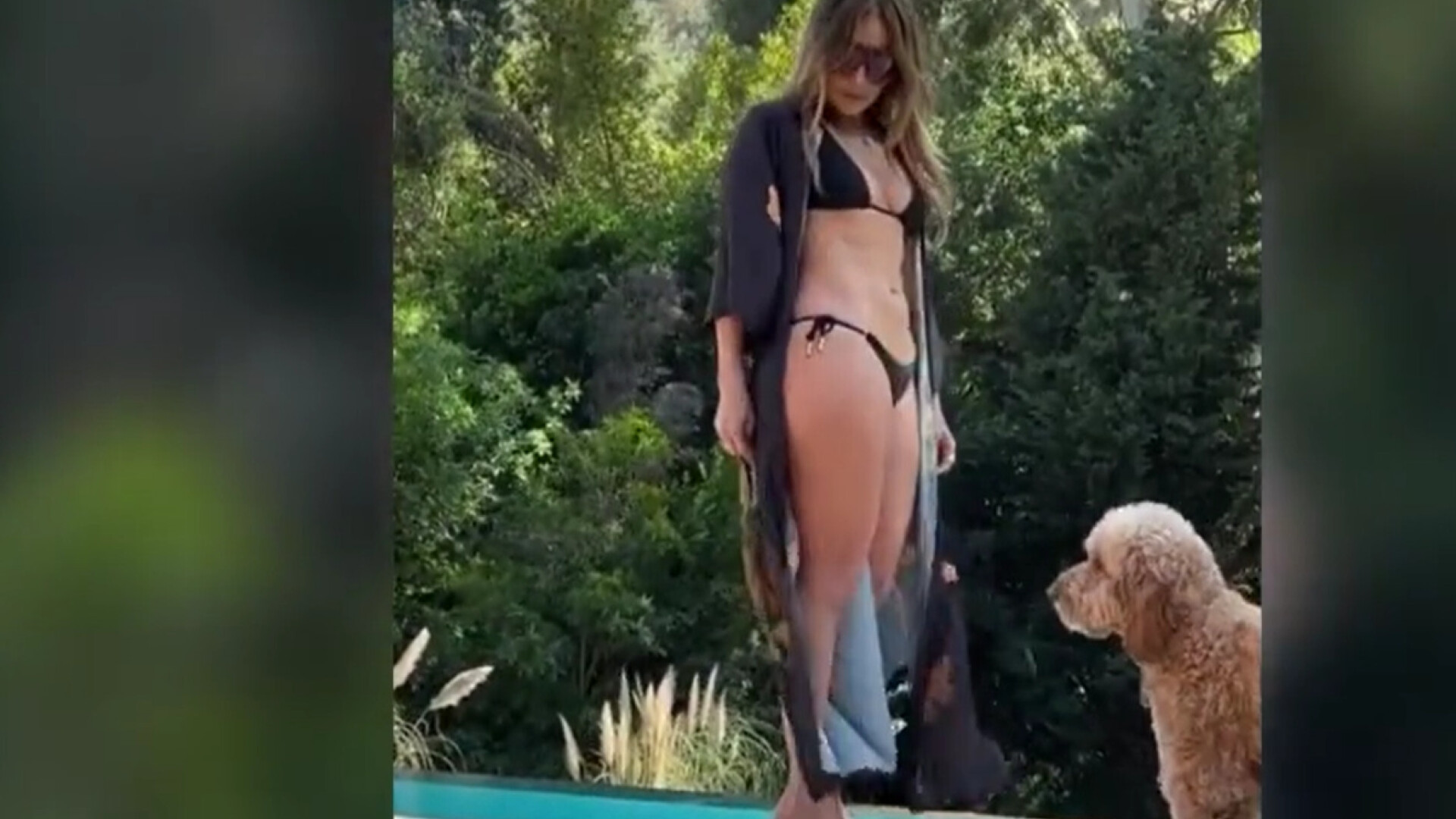 „Mod vară: activat”, a spus Lopez în descrierea galeriei foto. Câinele ei Tyson, din rasa Goldendoodle, a putut fi văzut trecând pe lângă ea la un moment dat, în timp ce făcea o piruetă.