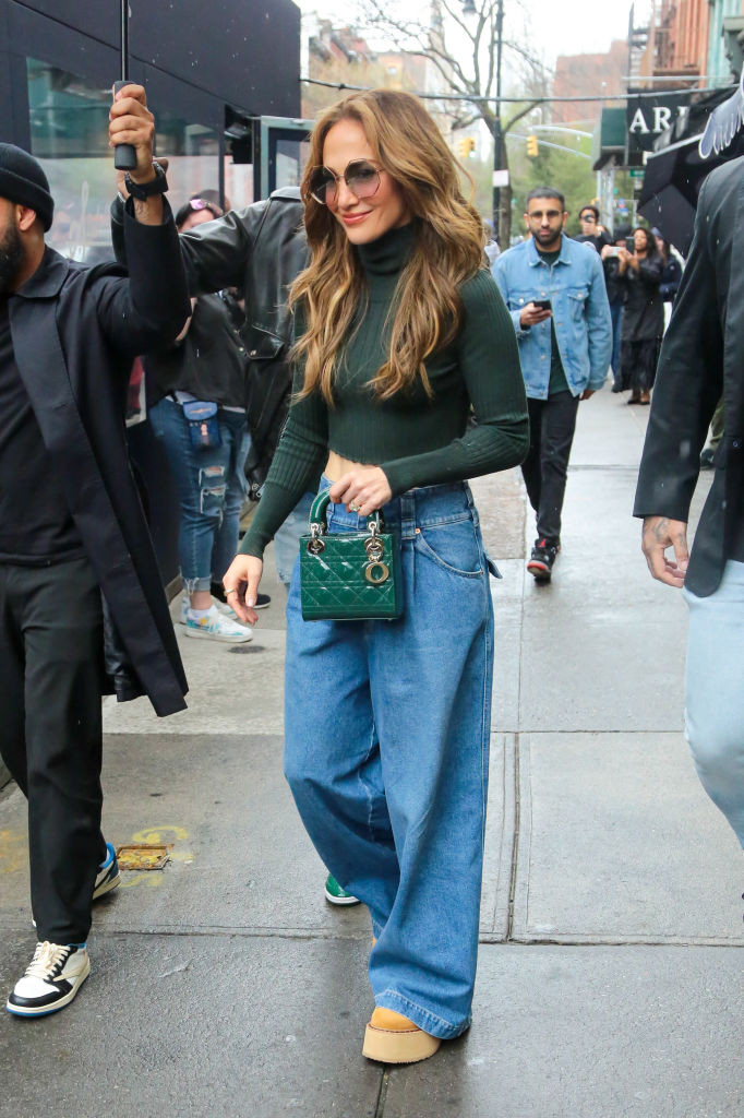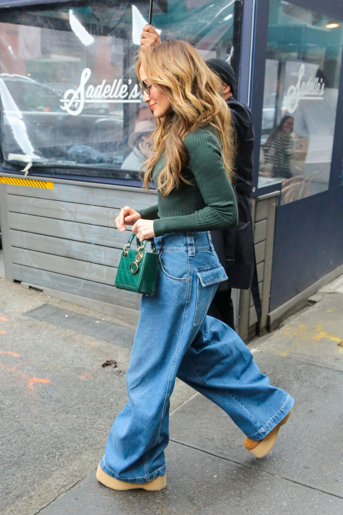 Artista în vârstă de 54 de ani a ales o ținută casual, care i-a pus în evidență silueta. Jennifer a purtat un pullover verde, cu vedere la abdomen, o pereche de blugi largi, cu talie joasă și încălțăminte maro cu platformă. Ea și-a accesorizat look-ul cu o geantă verde de la un brand celebru și o pereche de ochelari de soare.