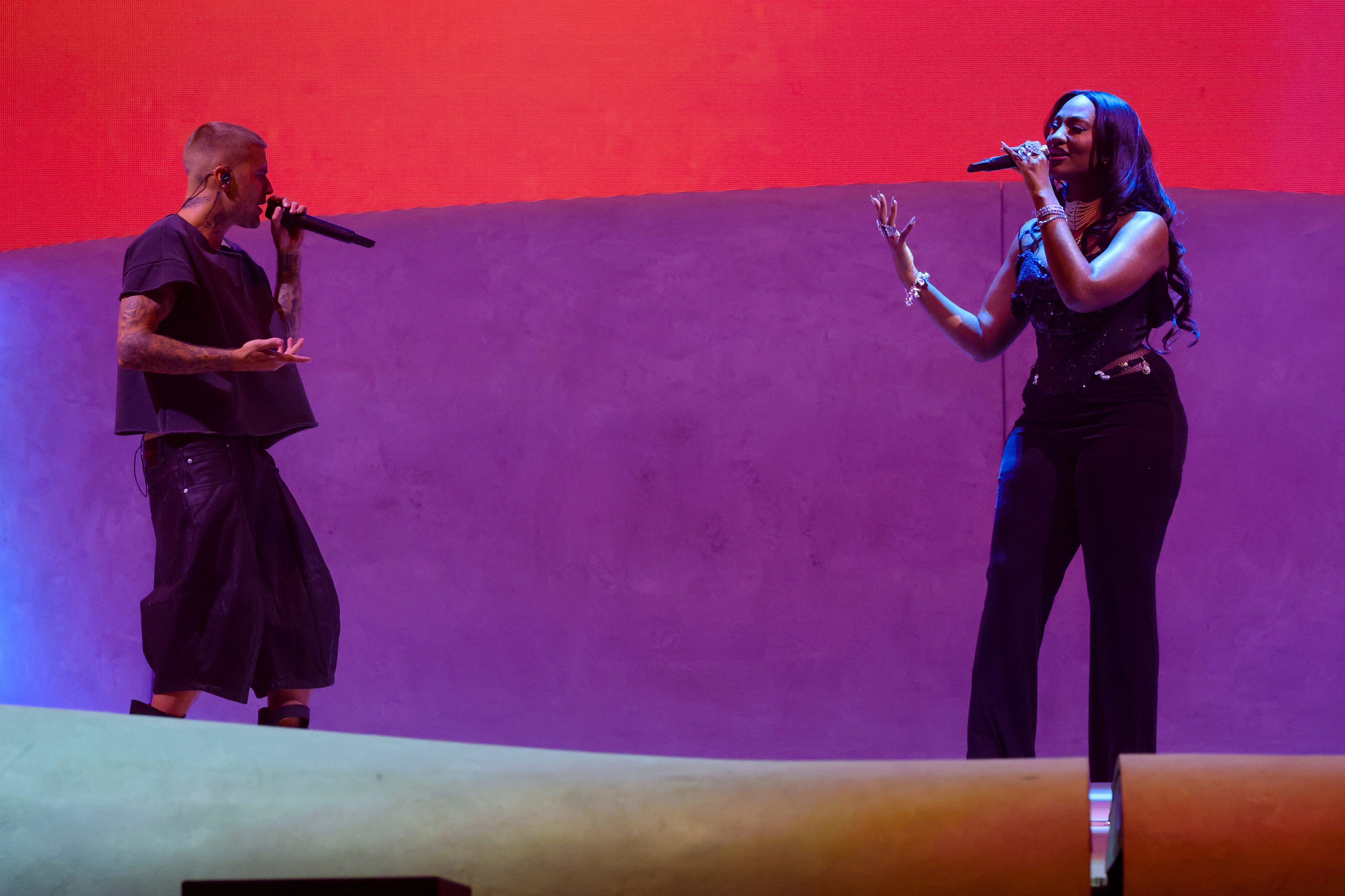 Îmbrăcat într-un hanorac și pantaloni scurți, pe o scenă minimalistă, Bieber a fost acompaniat de invitați precum The Kid Laroi, Wizkid, Tems și Dijon.