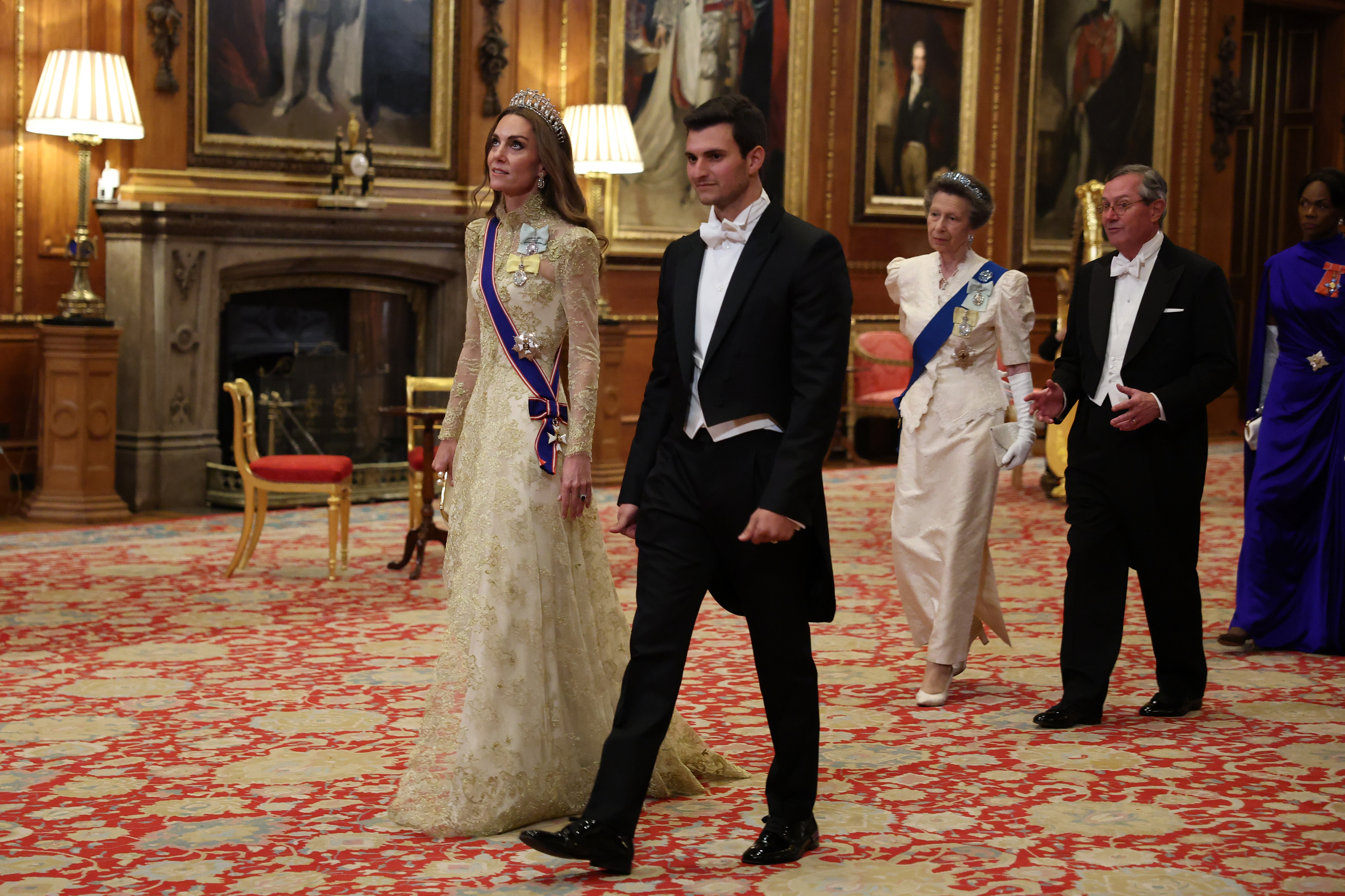 La banchet, Kate a fost așezată lângă Donald Trump, care a participat la eveniment alături de soția sa, prima-doamnă Melania Trump. Președintele și prima-doamnă au intrat în sala banchetului alături de regele Charles al III-lea și regina Camilla. Mai devreme în aceeași zi, William și Kate i-au întâmpinat pe președinte și pe soția sa la sosirea la Castelul Windsor.