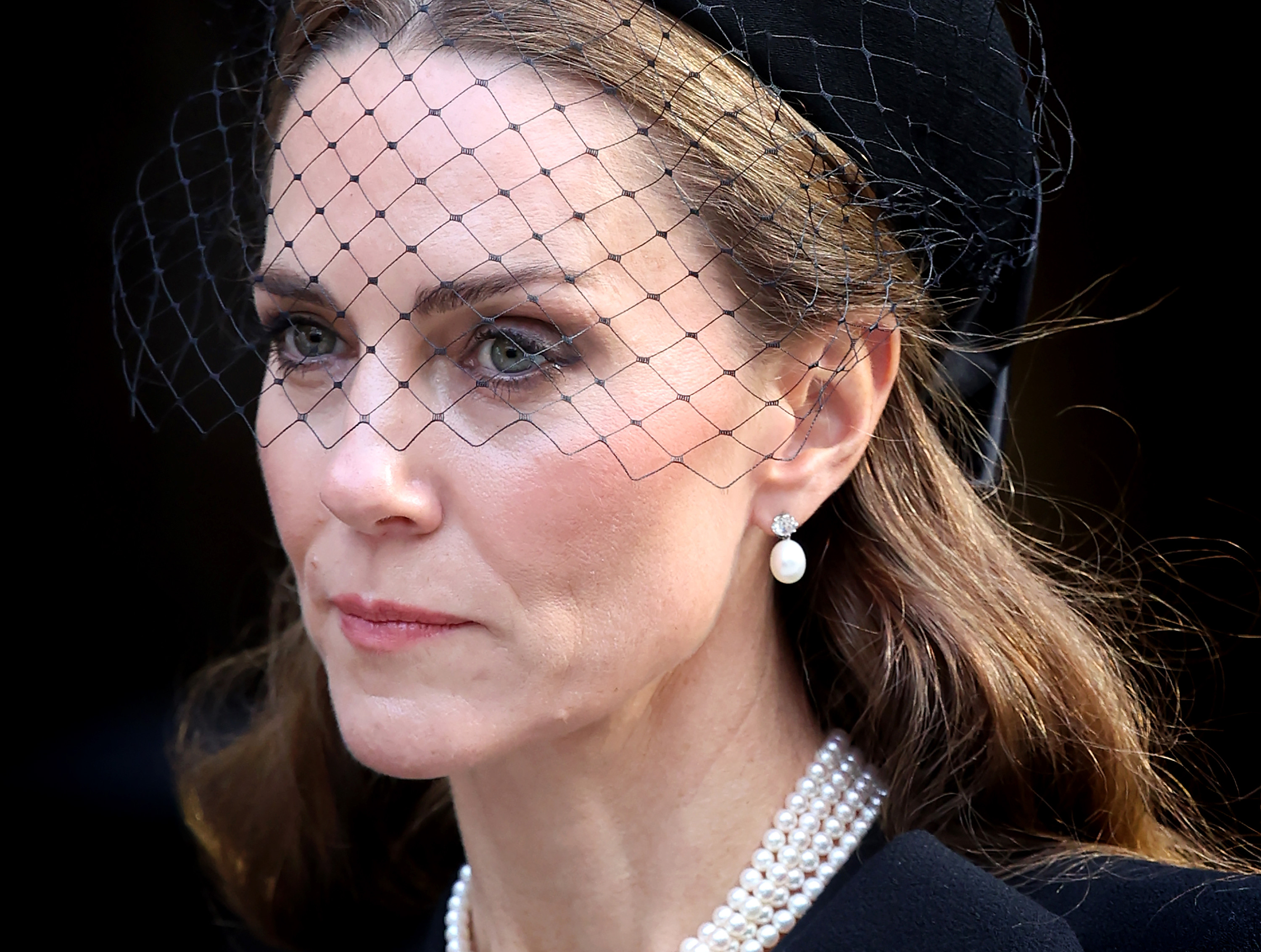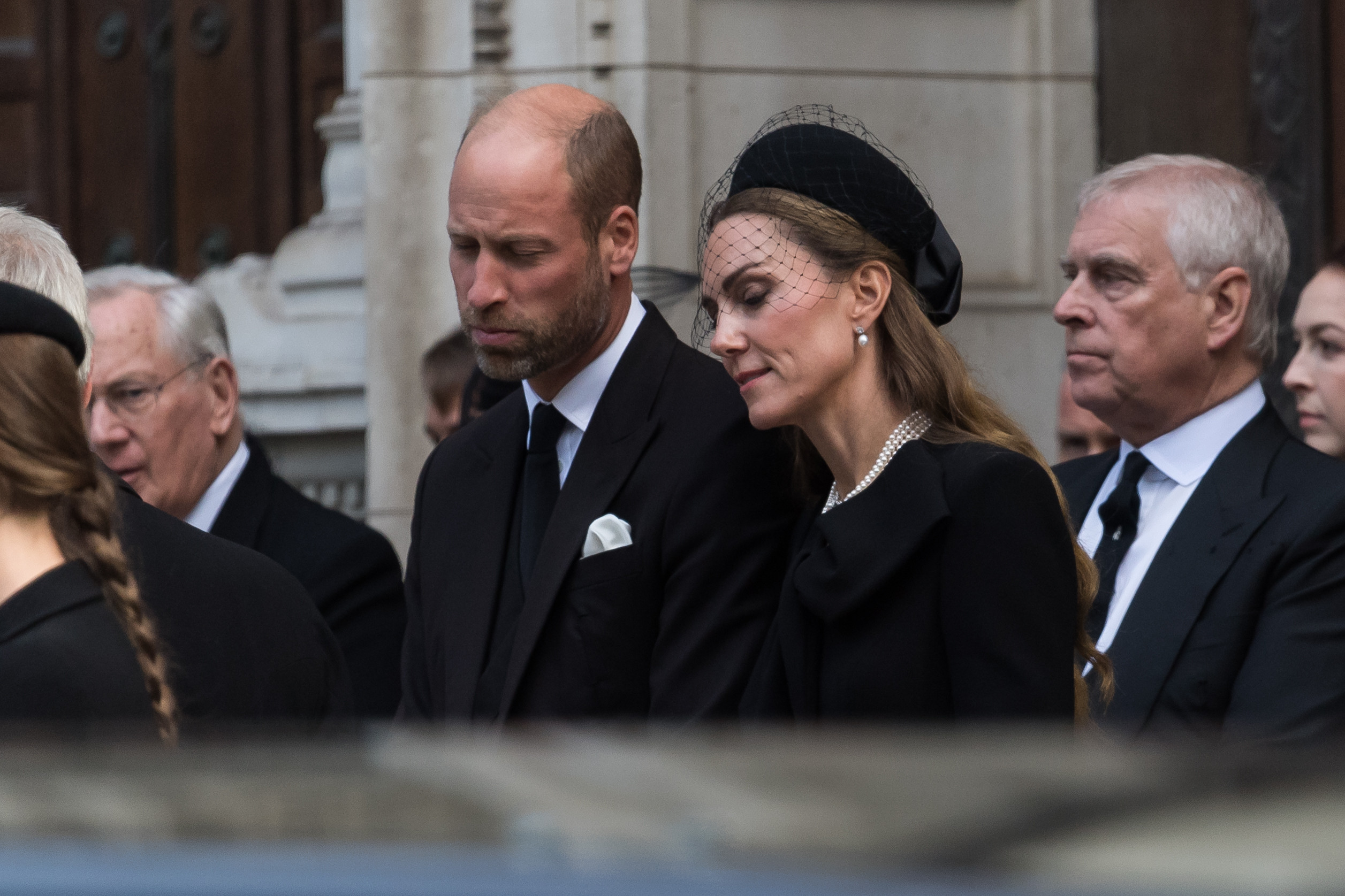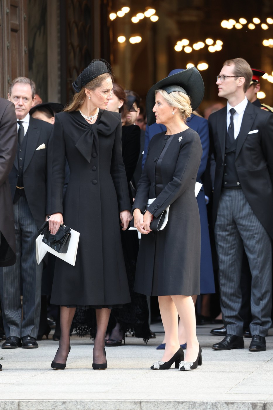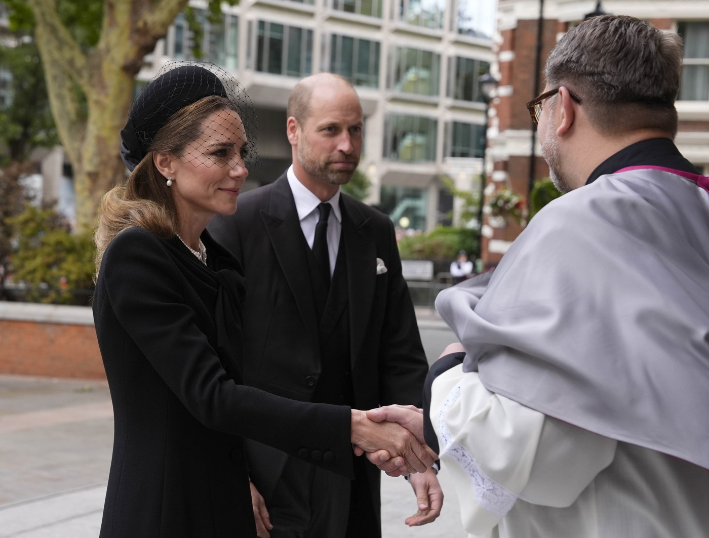 Kate Middleton s-a remarcat prin eleganța alegerii sale vestimentare la ceremonia funerară. Prințesa de Wales a purtat o rochie neagră clasică, completată de un colier cu patru șiraguri de perle, accesorizat cu o încuietoare centrală din diamant – o bijuterie cu istorie, ce a aparținut reginei Elisabeta a II-a. Piesa deosebită a fost purtată de Kate și la alte momente solemne din trecut, precum funeraliile reginei Elisabeta din 2022 și ale prințului Philip din 2021.