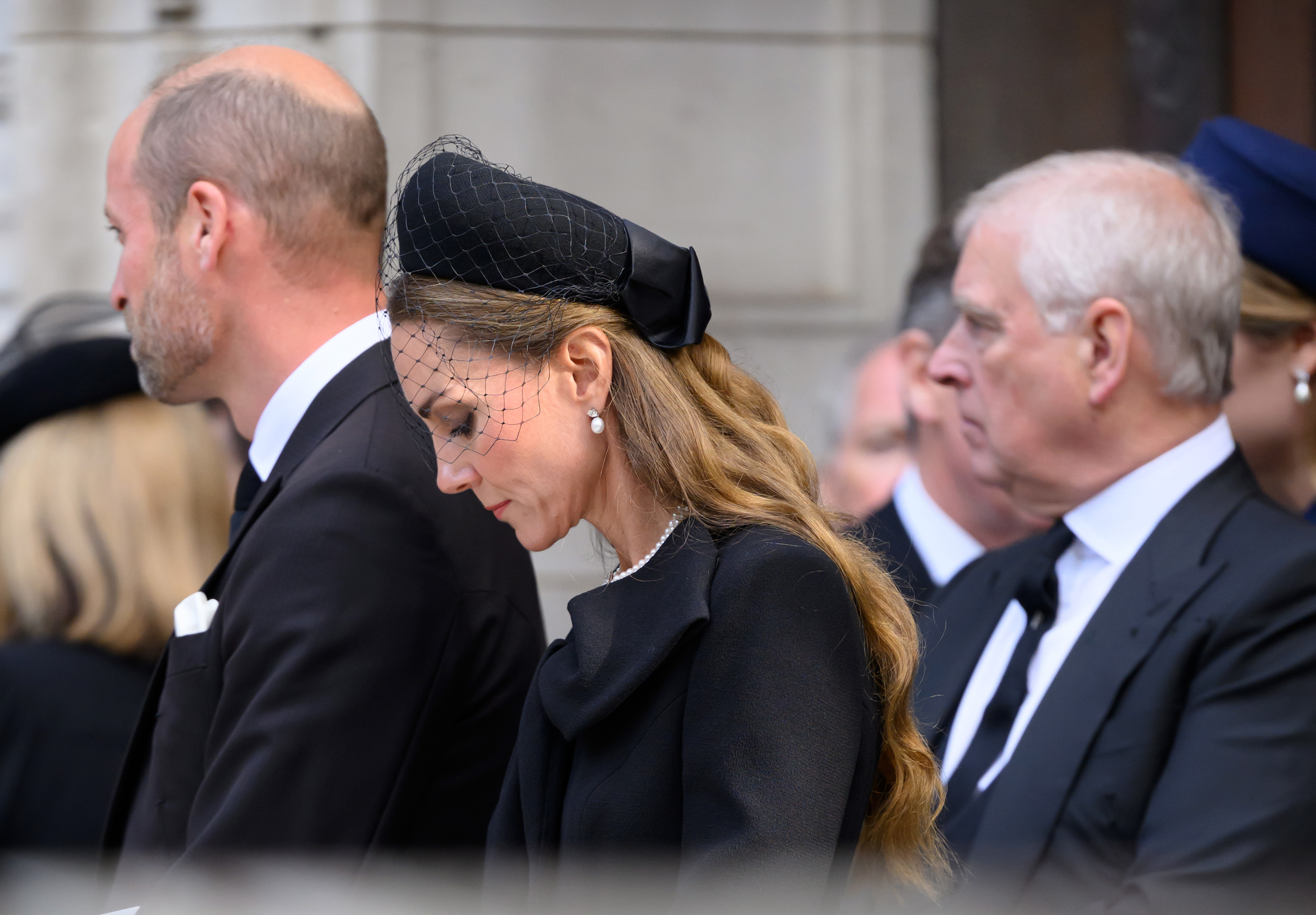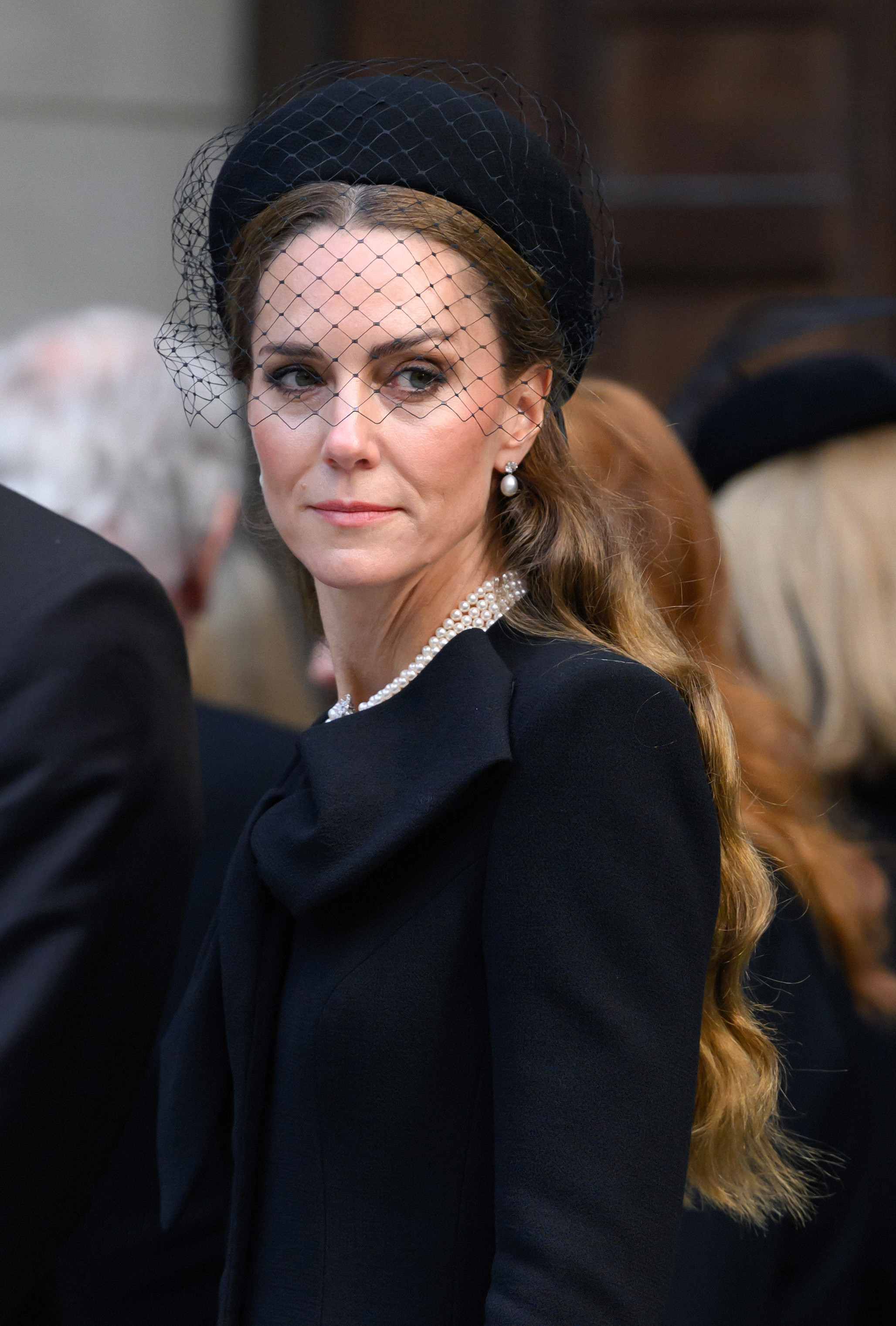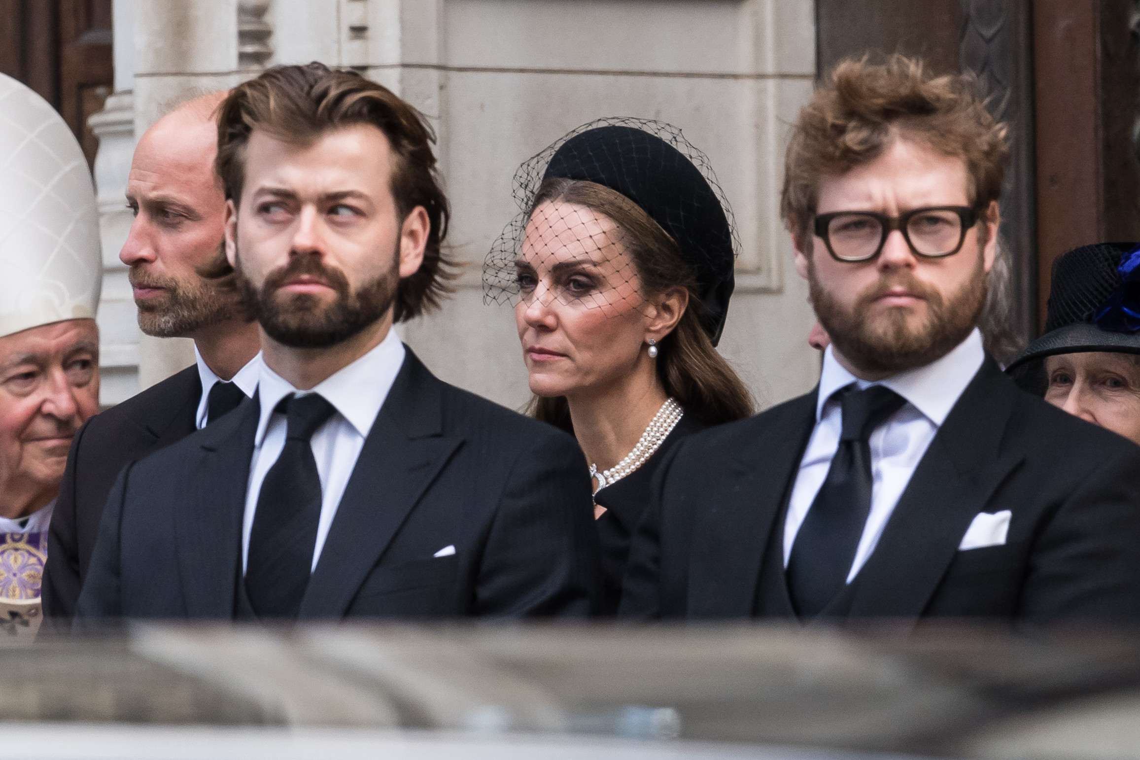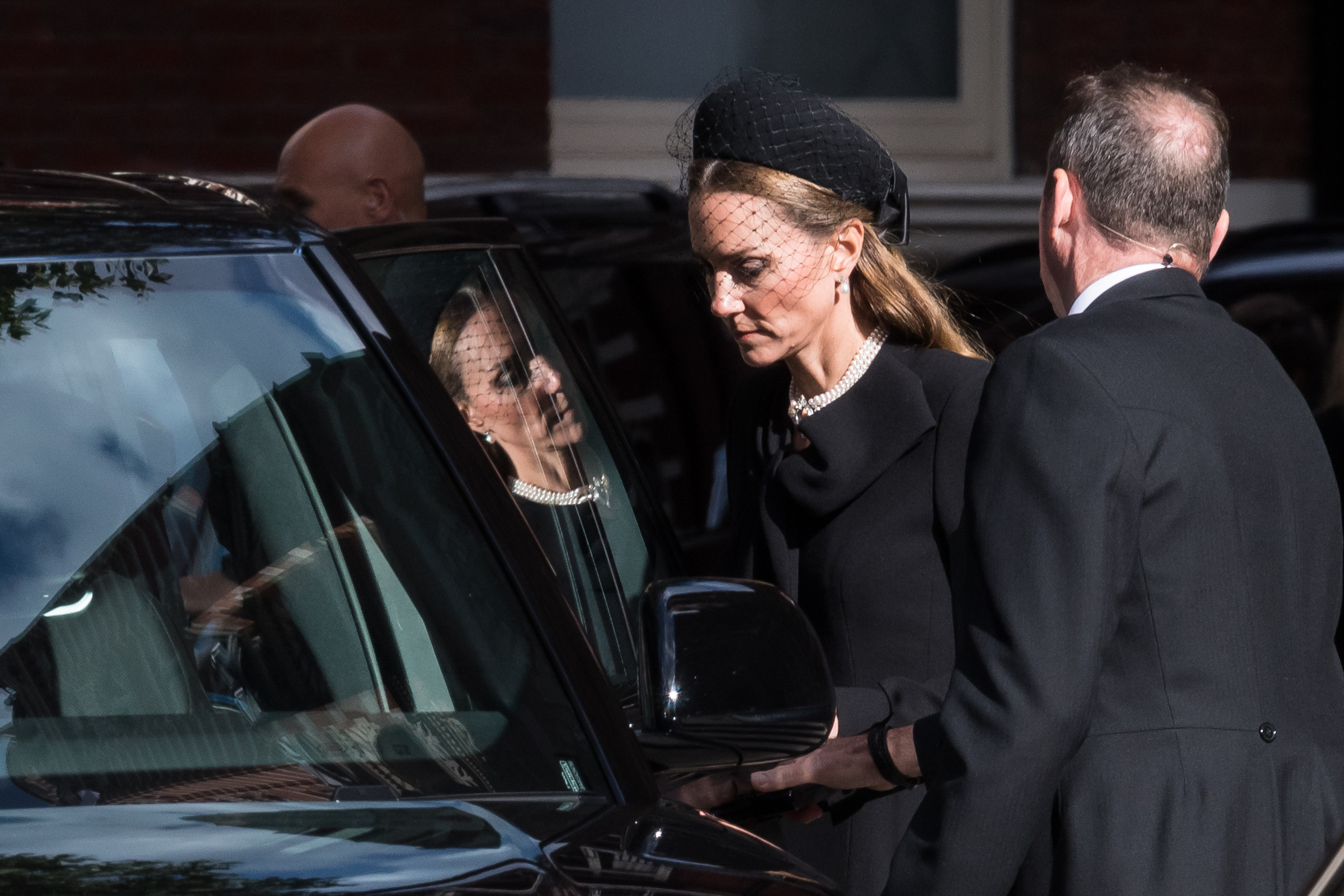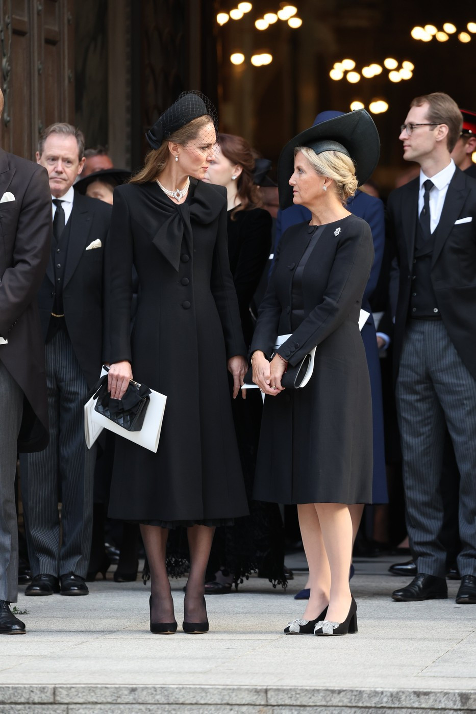 Kate Middleton s-a remarcat prin eleganța alegerii sale vestimentare la ceremonia funerară. Prințesa de Wales a purtat o rochie neagră clasică, completată de un colier cu patru șiraguri de perle, accesorizat cu o încuietoare centrală din diamant – o bijuterie cu istorie, ce a aparținut reginei Elisabeta a II-a. Piesa deosebită a fost purtată de Kate și la alte momente solemne din trecut, precum funeraliile reginei Elisabeta din 2022 și ale prințului Philip din 2021.
