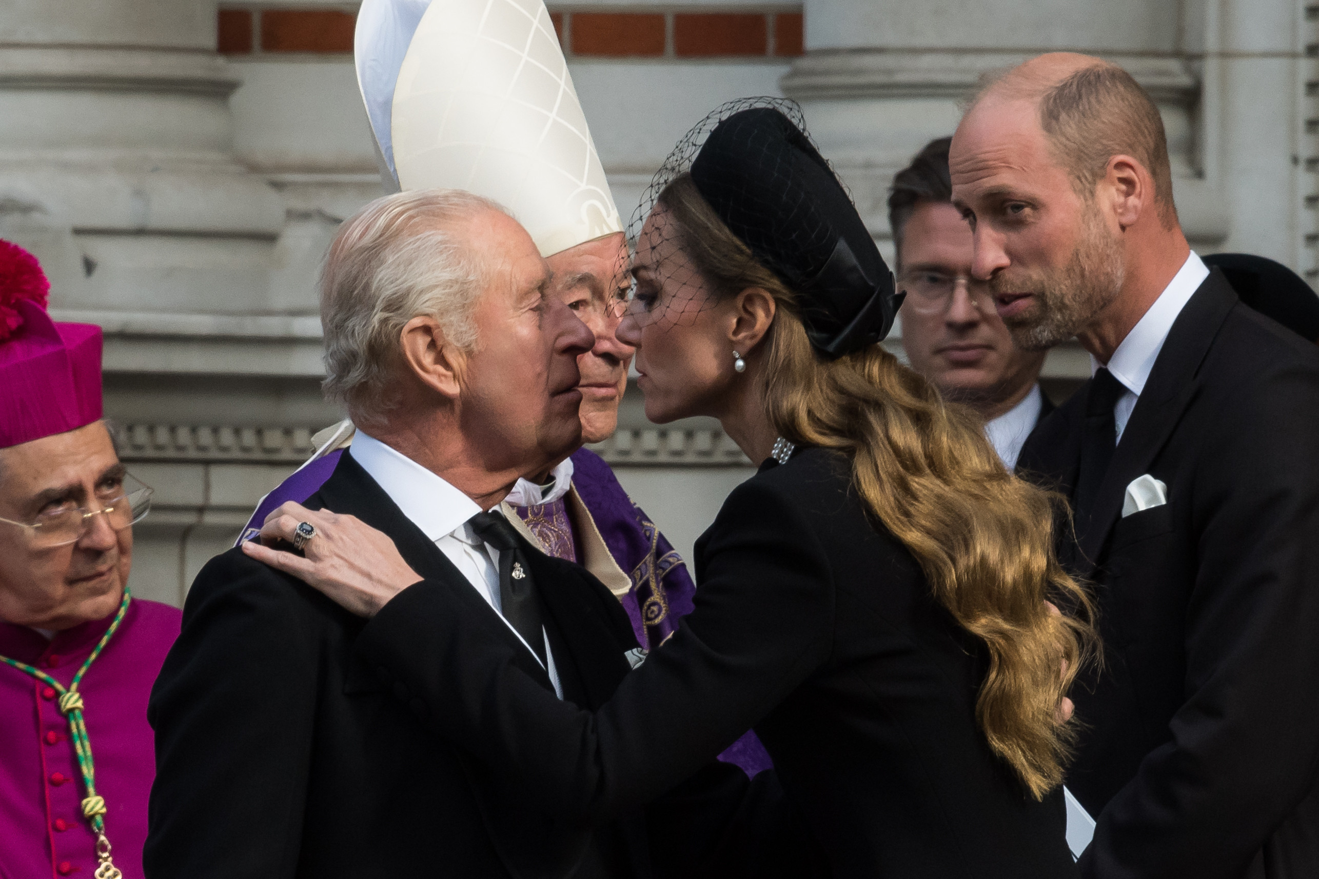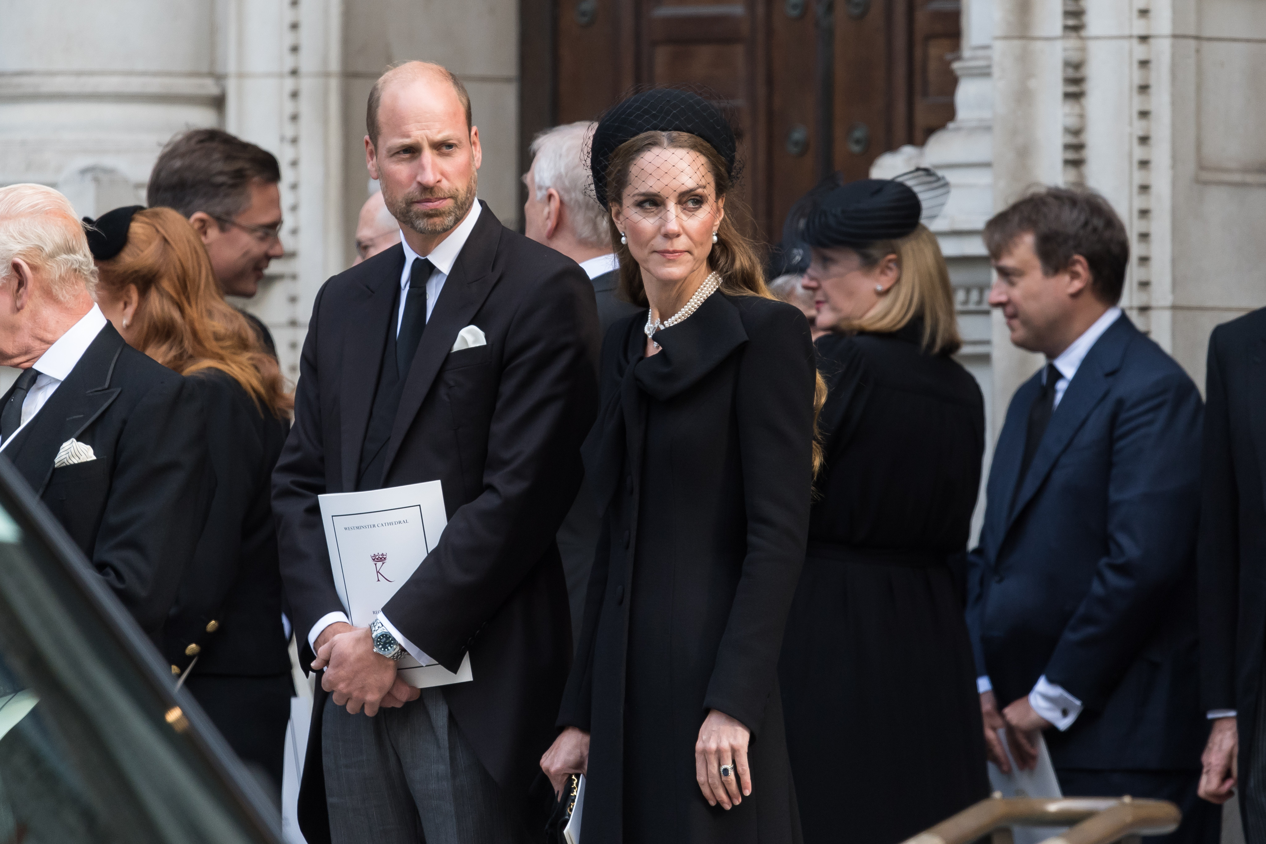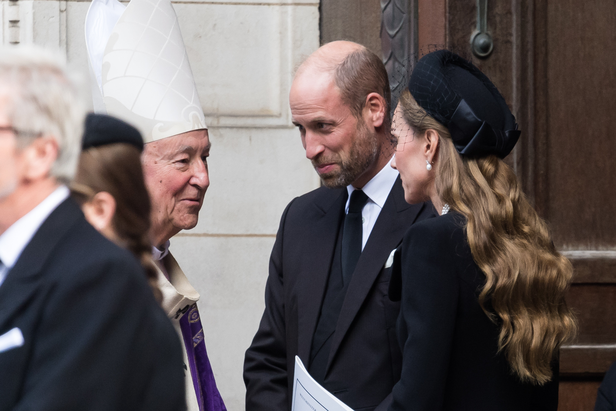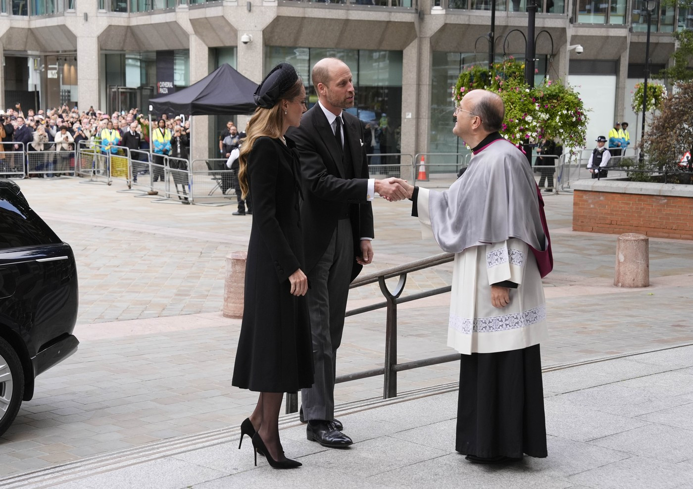 Kate Middleton s-a remarcat prin eleganța alegerii sale vestimentare la ceremonia funerară. Prințesa de Wales a purtat o rochie neagră clasică, completată de un colier cu patru șiraguri de perle, accesorizat cu o încuietoare centrală din diamant – o bijuterie cu istorie, ce a aparținut reginei Elisabeta a II-a. Piesa deosebită a fost purtată de Kate și la alte momente solemne din trecut, precum funeraliile reginei Elisabeta din 2022 și ale prințului Philip din 2021.