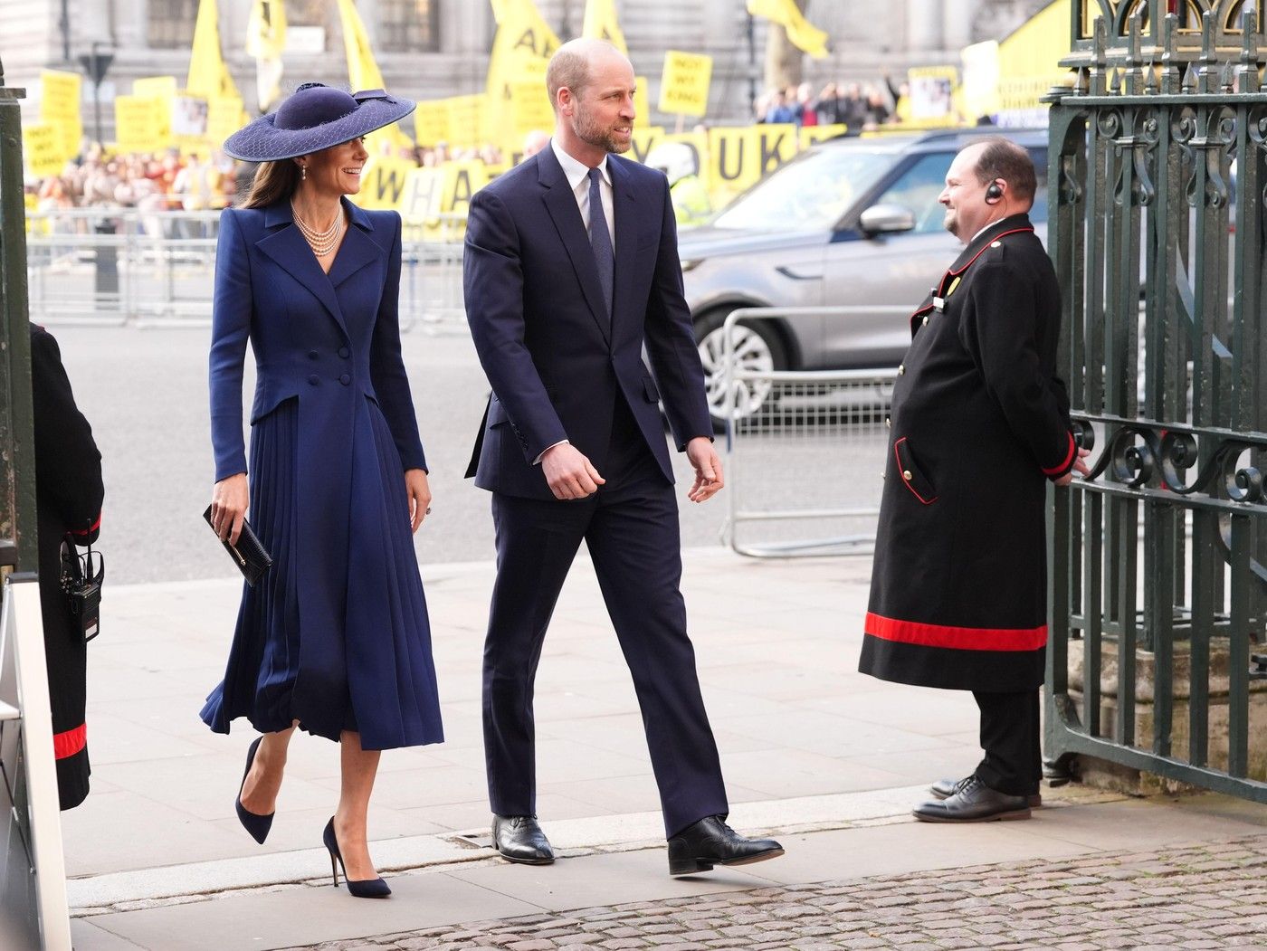Pe 9 martie, Prințul și Prințesa de Wales au participat la slujba anuală de Ziua Commonwealth-ului la Westminster Abbey din Londra, locul în care cei doi s-au căsătorit în aprilie 2011. Ei au sosit îmbrăcați în ținute albastre asortate, Kate purtând o haină Catherine Walker și o pălărie în același ton, potrivit People.