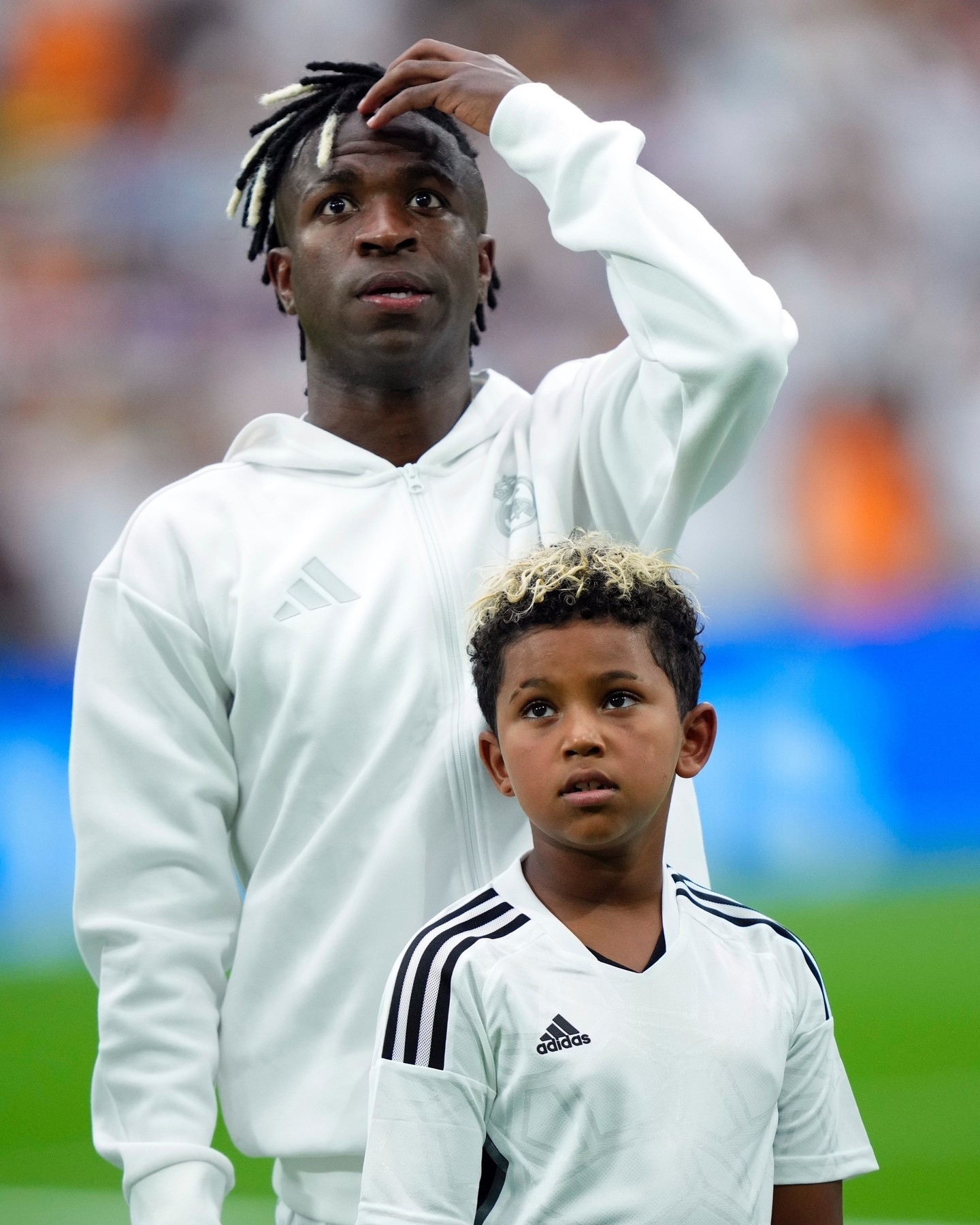 Saint West, un mare fan al atacantului, a fost încântat să petreacă timp alături de idolul său, iar Vinicius a împărtășit momentele lor speciale pe rețelele sociale, scrie Hola.com.
