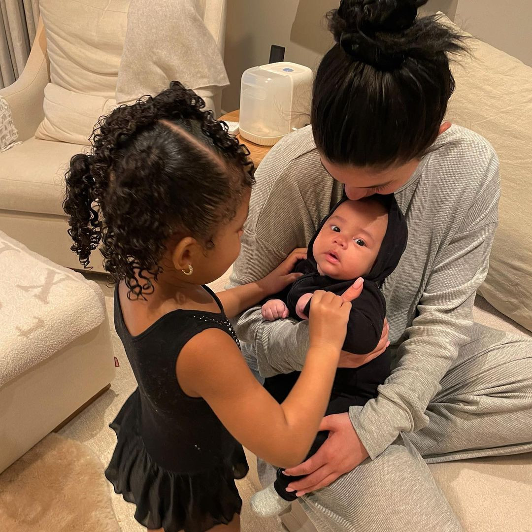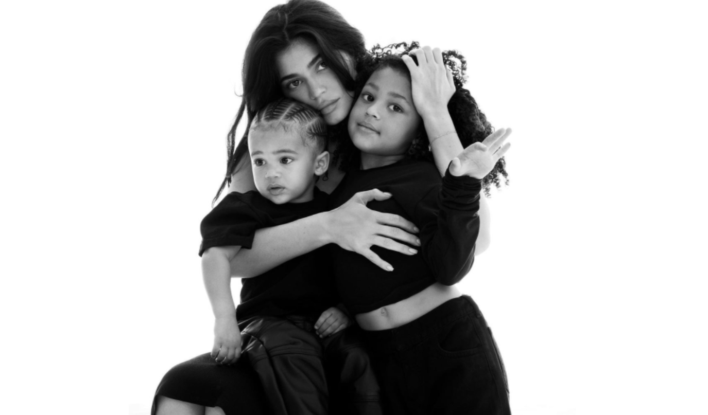 Vedeta în vârstă de 26 de ani a publicat o fotografie alb-negru în care își îmbrățișează cei doi copii - Stormi, în vârstă de 5 ani, și Aire, care în februarie împlinește doi ani.