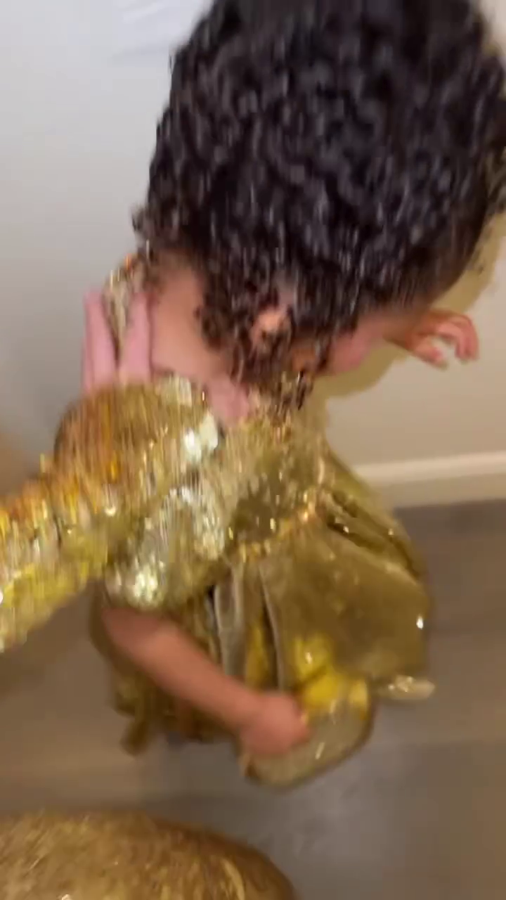 Cele două au arătat precum niște prințese, în rochiile lor aurii asortate.