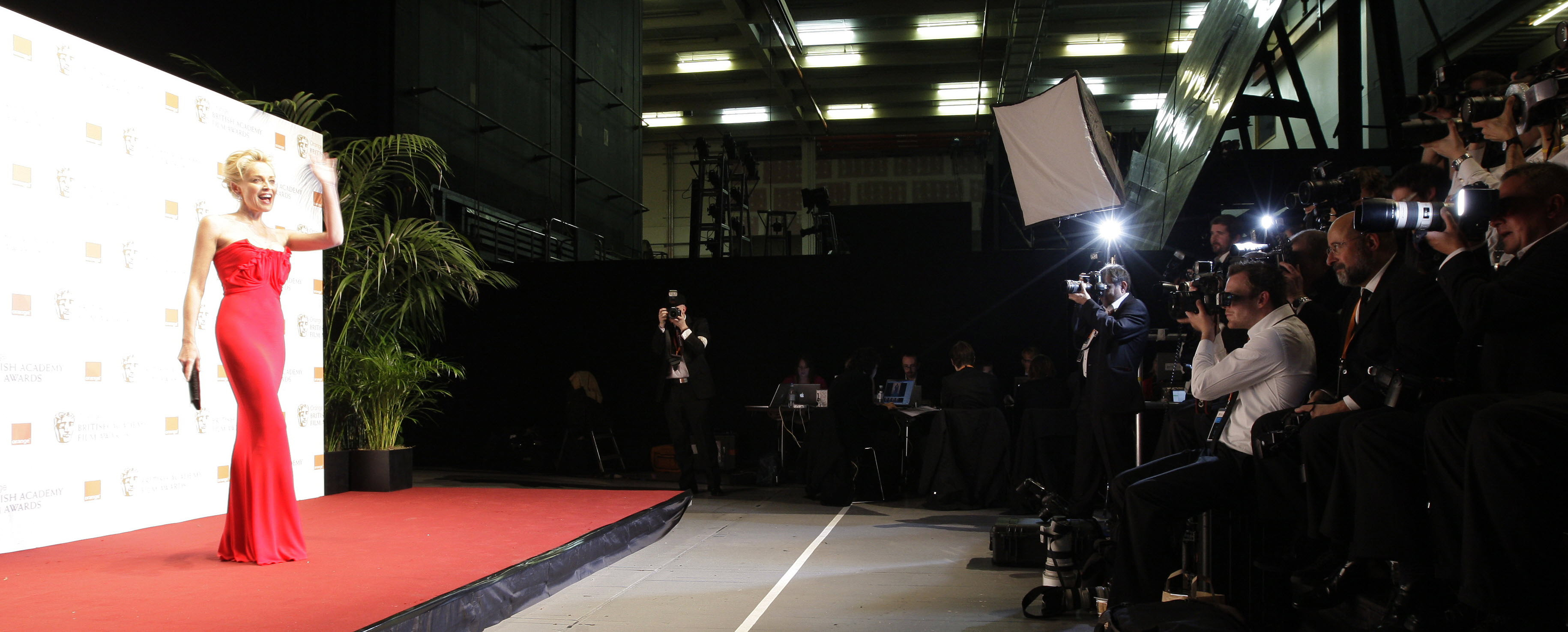 Pata de culoare s-a numit Sharon Stone, cu o rochie de un rosu aprins.